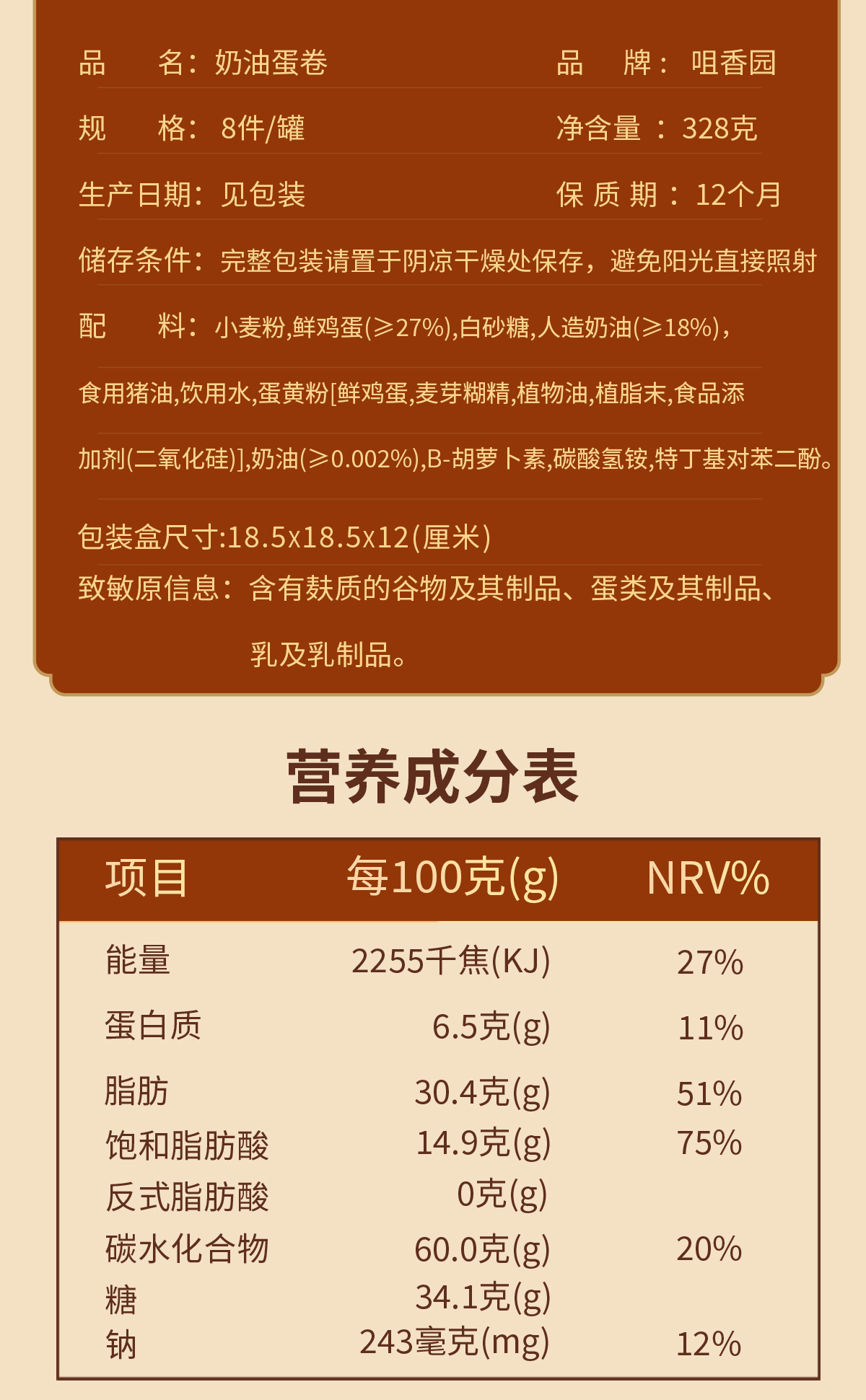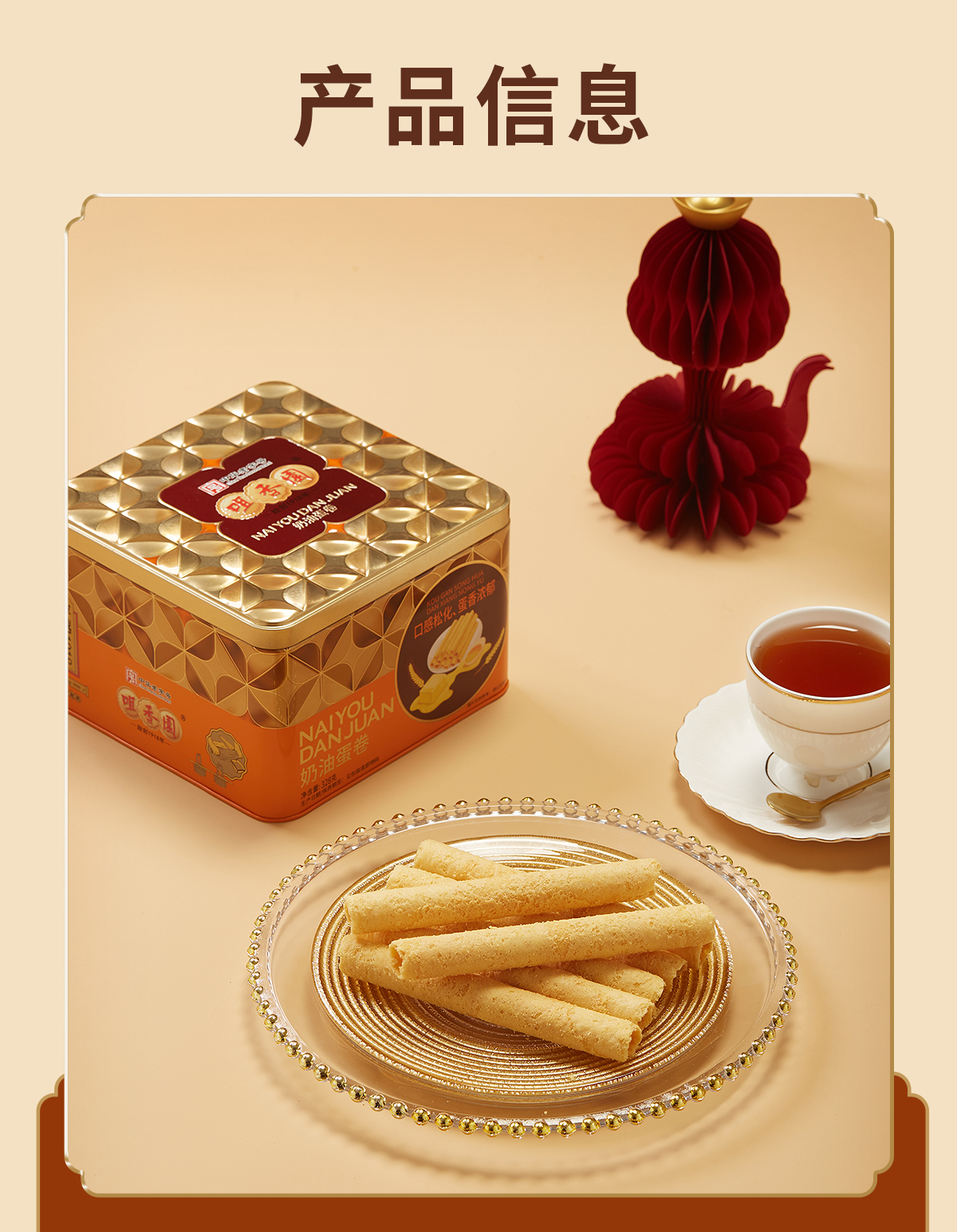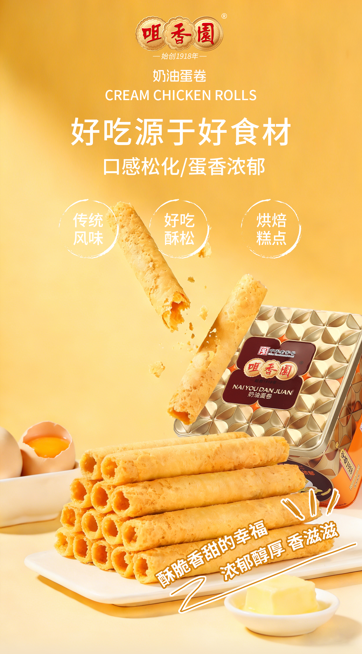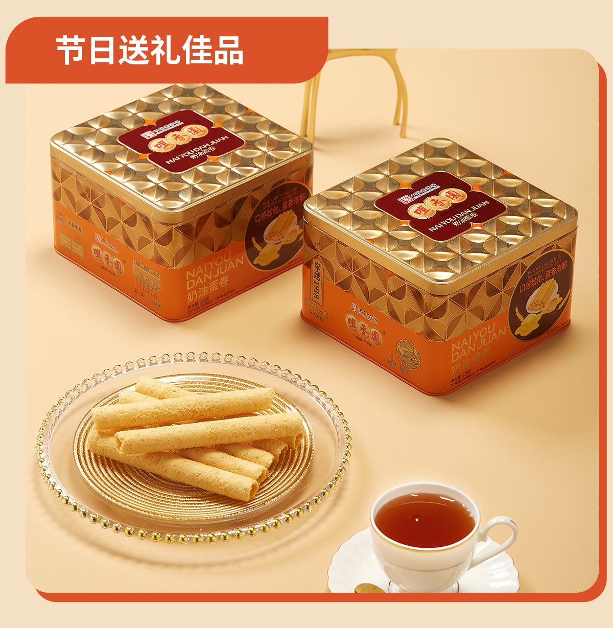 咀香园原味奶油鸡蛋卷328g老式经典铁罐新年年货优选团购好礼
