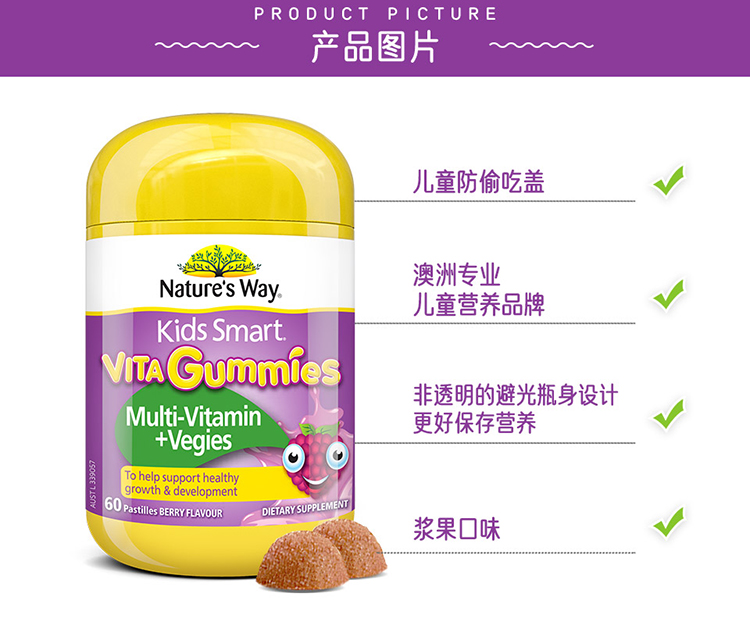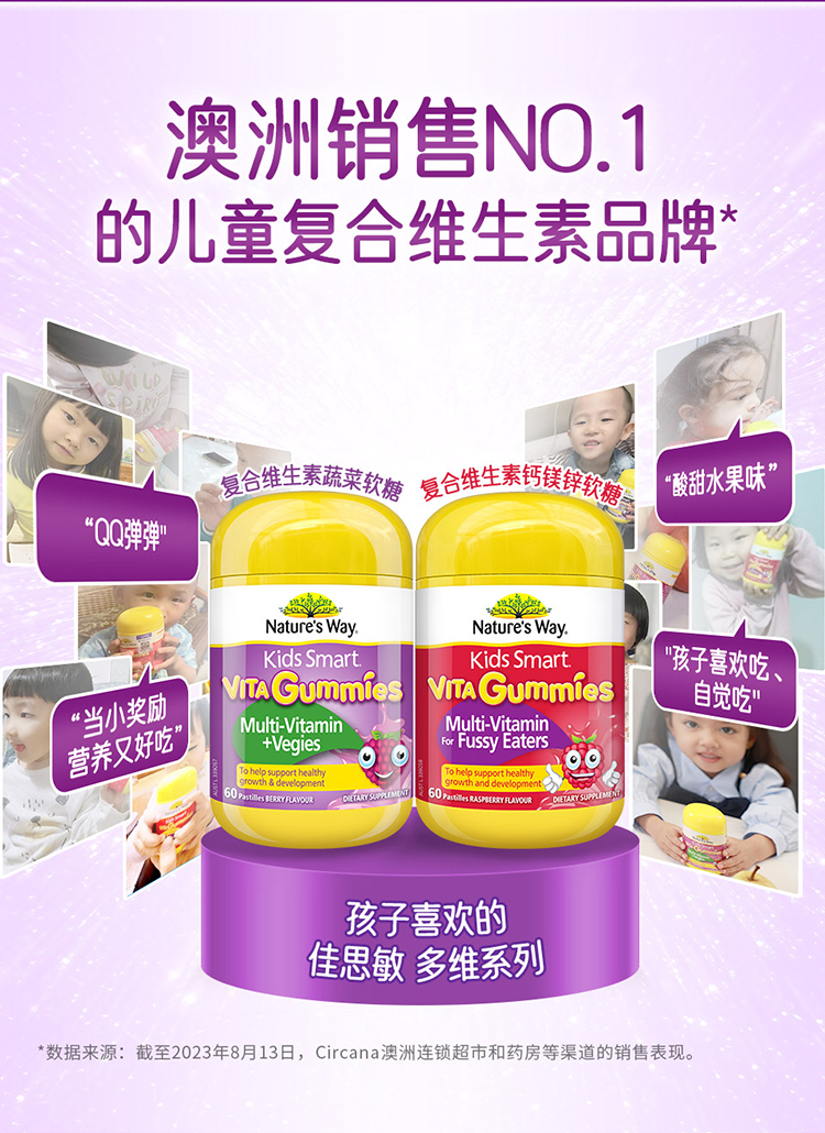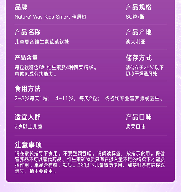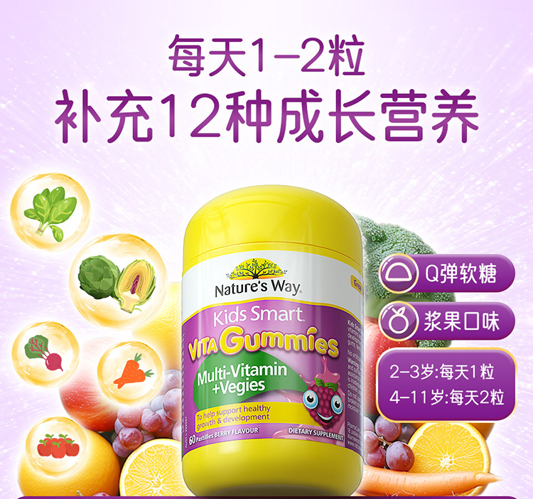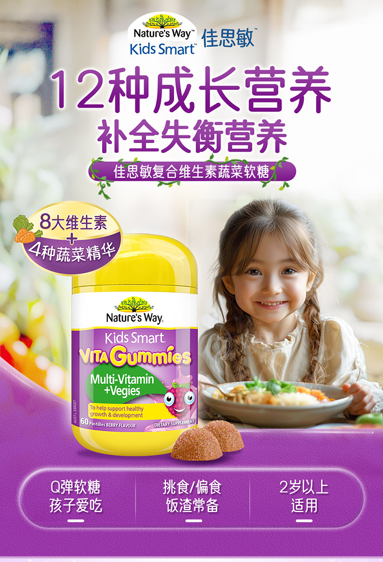 Nature's Way 佳思敏儿童复合维生素果蔬菜营养软糖 60粒(27年2月)