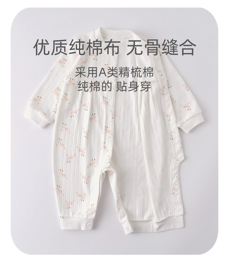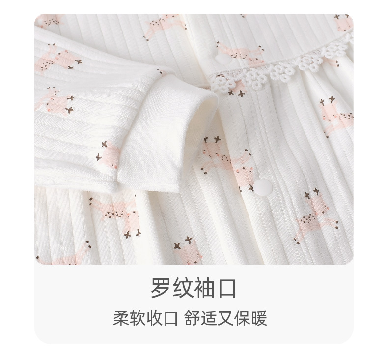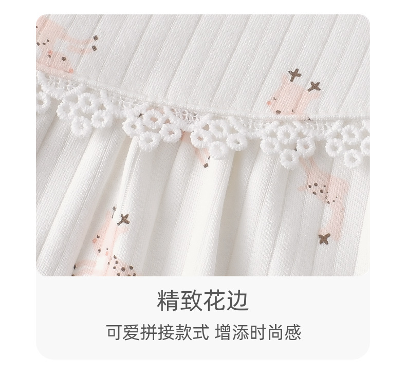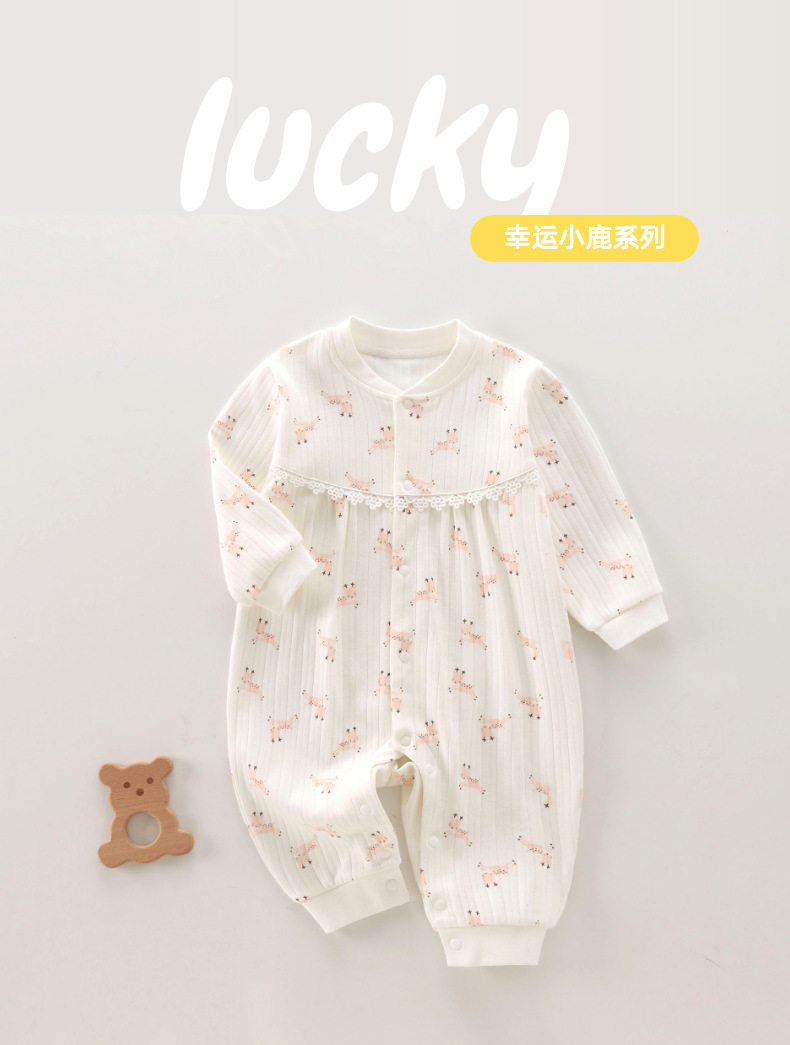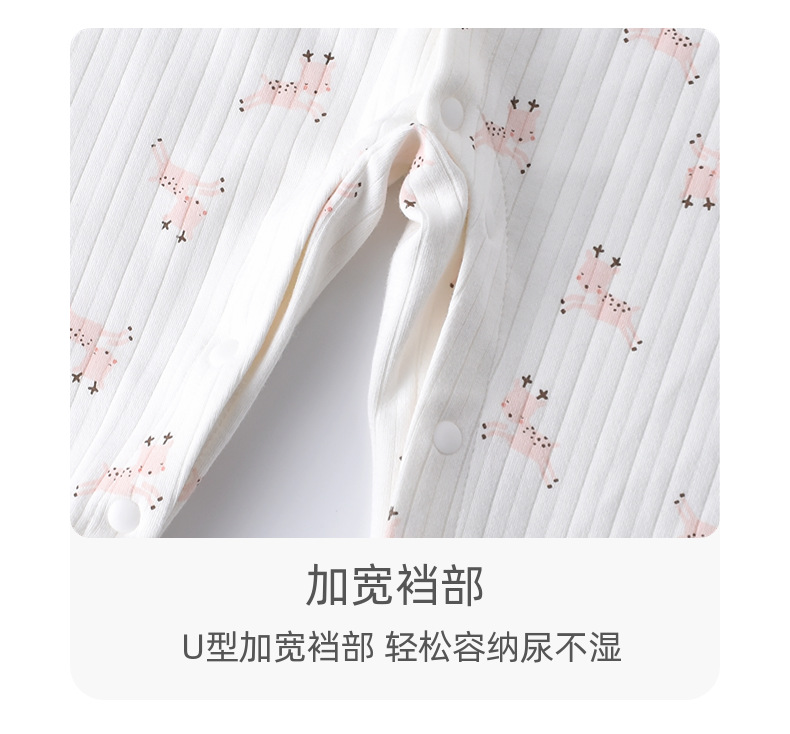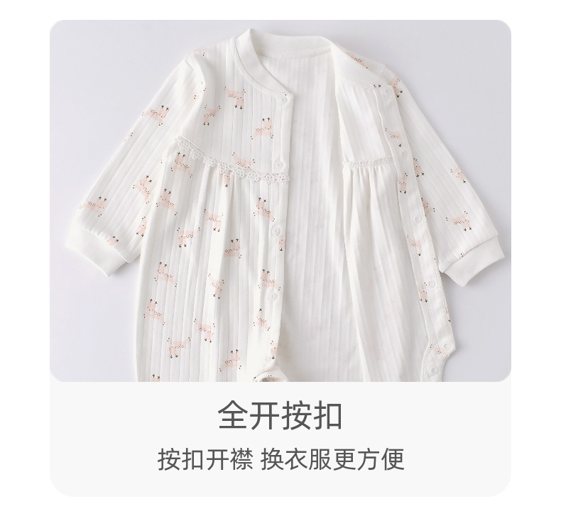 【幸运小鹿哈衣 纯棉的贴身穿】春装女宝宝衣服爬服花边长袖哈衣公主风无骨a类全棉婴儿连体衣