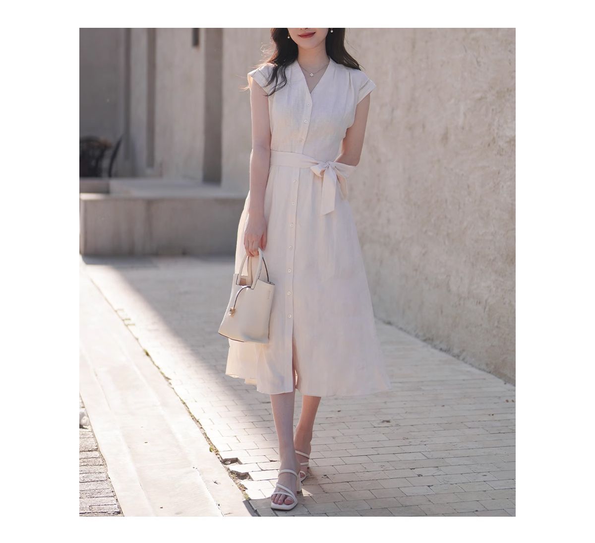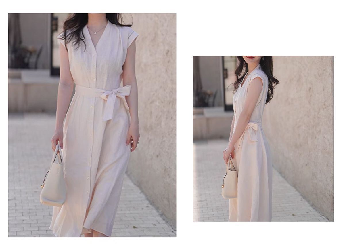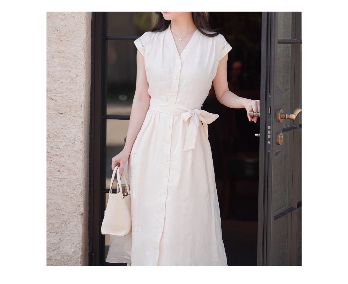 裁缝学苑AS103亚麻连衣裙纸样松弛感法式V领高腰衬衫裙子服装裁剪