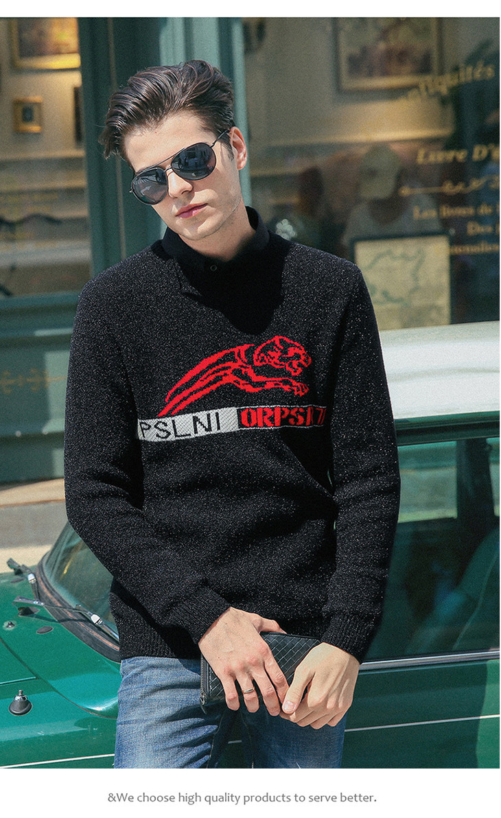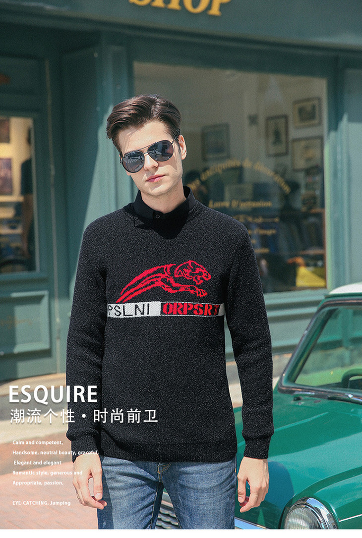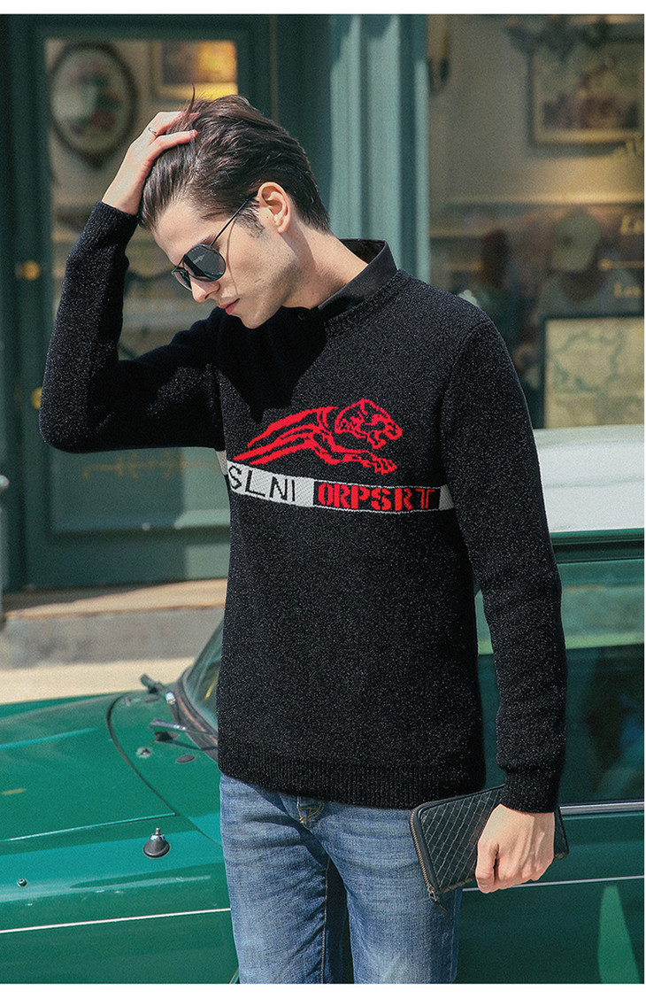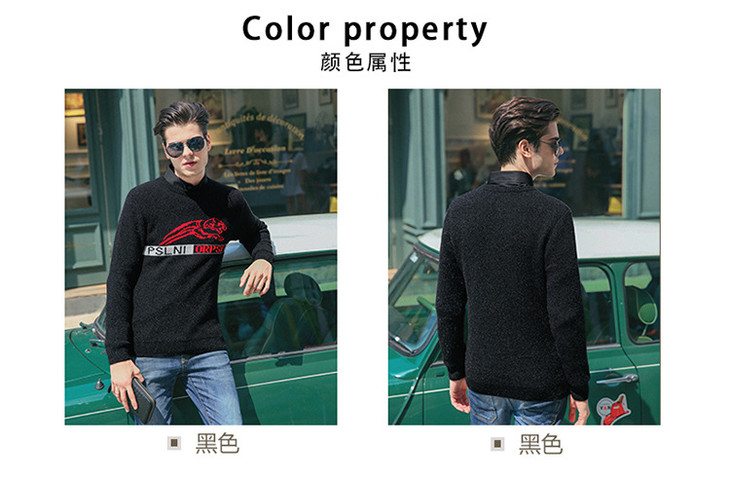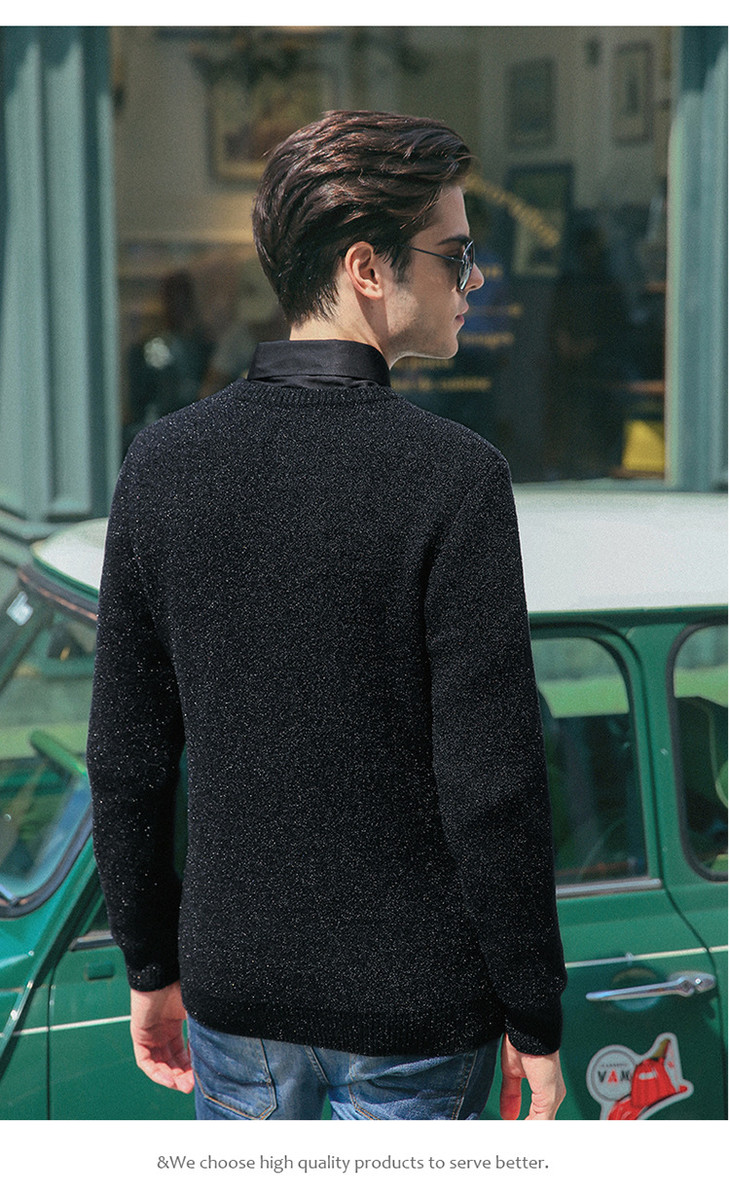 【男士毛衣】秋冬仿貂绒毛衣潮流个性圆领针织衫韩版色织加厚长袖毛衫新款