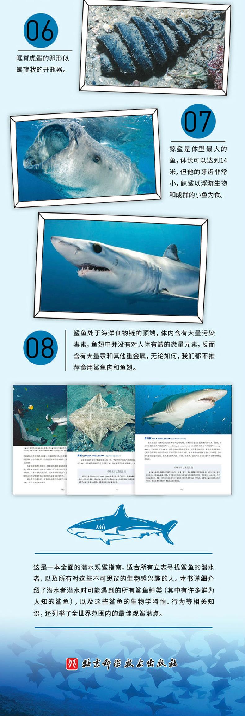 本书是全面的潜水观鲨指南,适合有立志寻找鲨鱼的潜水者,以及有对这些不可思议的生物感兴趣的人。本书详细介绍了潜水者潜水时可能遇到的有鲨鱼种类,其中有许多鲜为人知的鲨鱼,以及这些鲨鱼的生物学特性、行为等相关知识,还列举了全世界范围内的佳观鲨潜点。