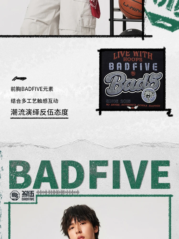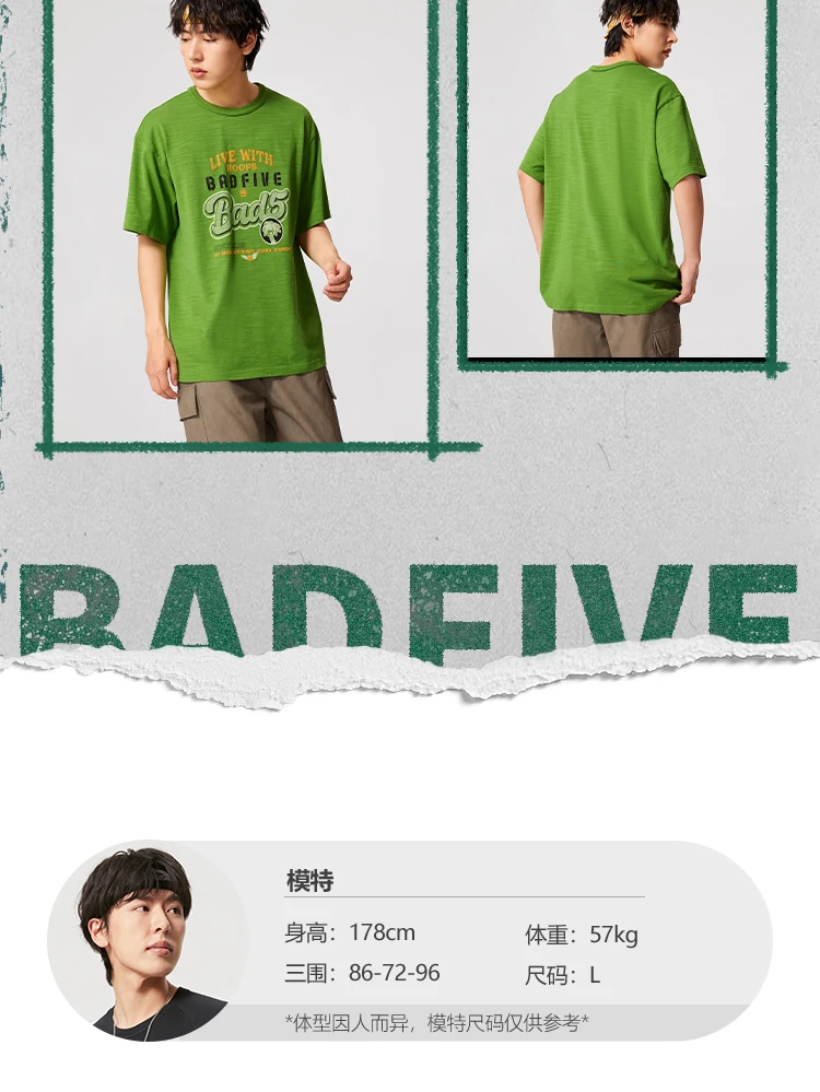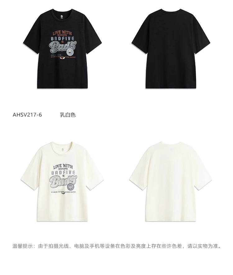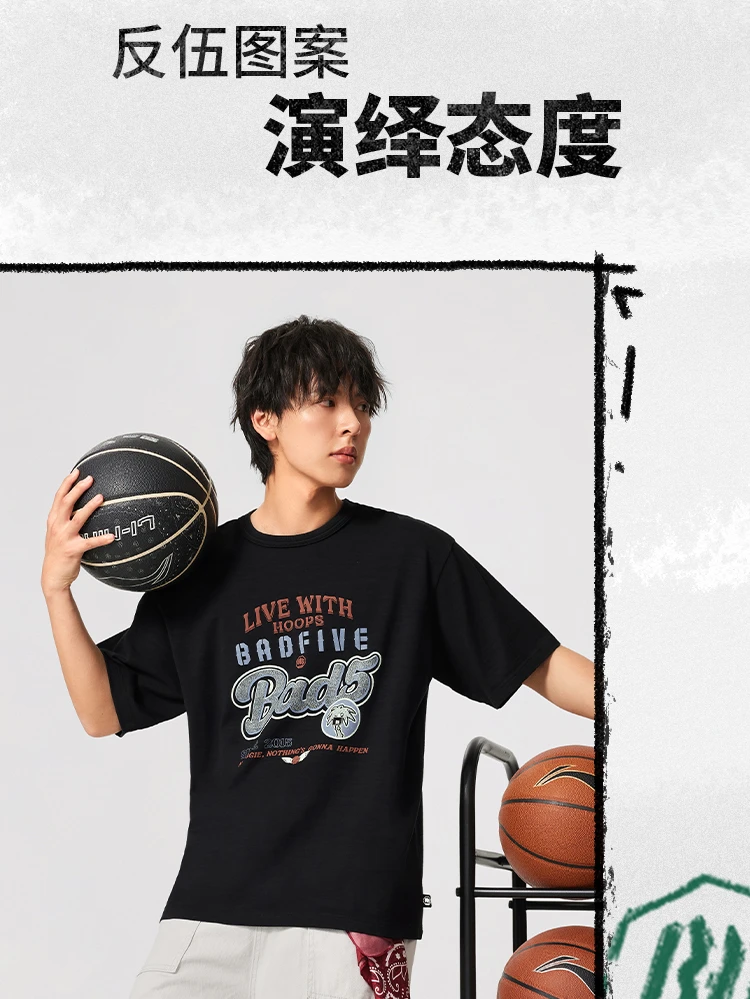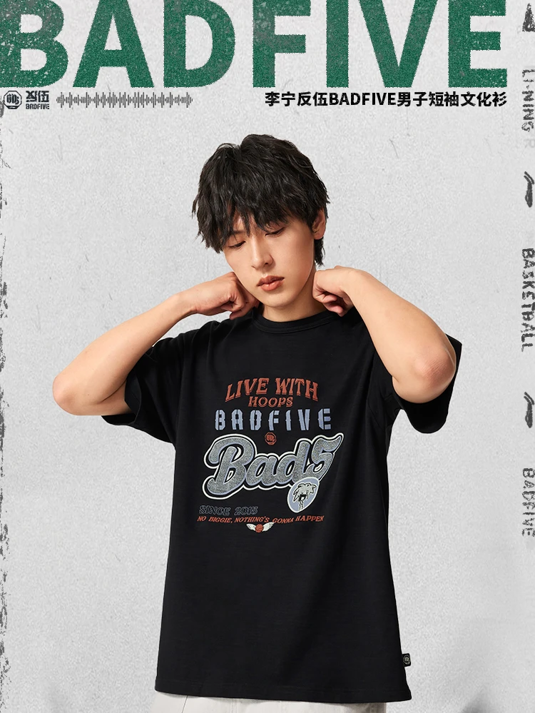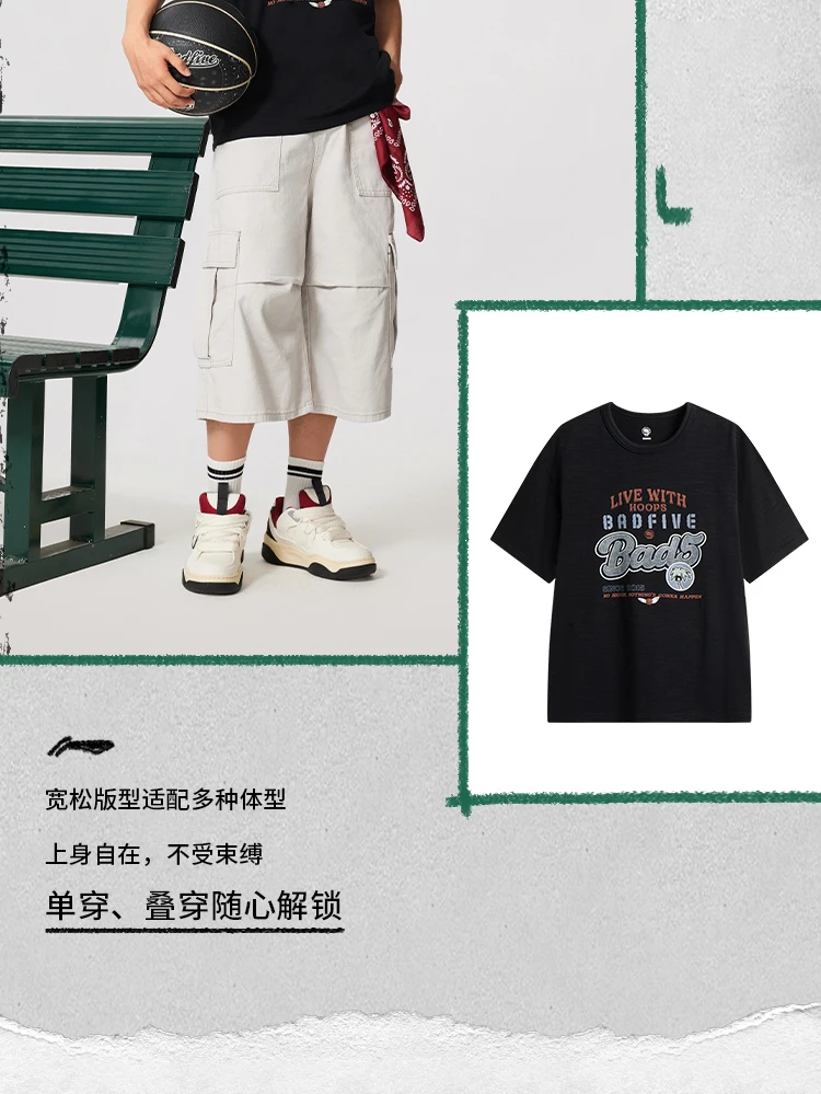 李宁反伍BADFIVE男子宽松短袖文化衫AHSV217