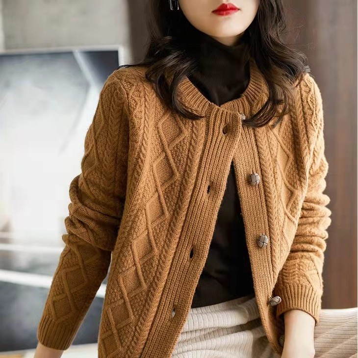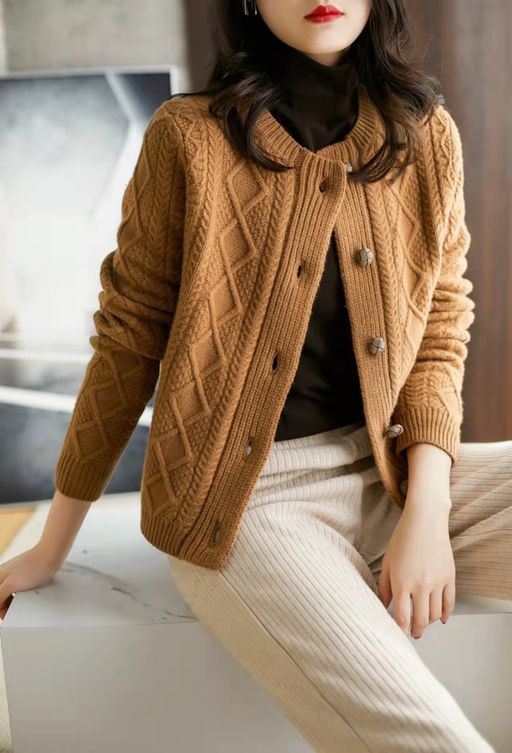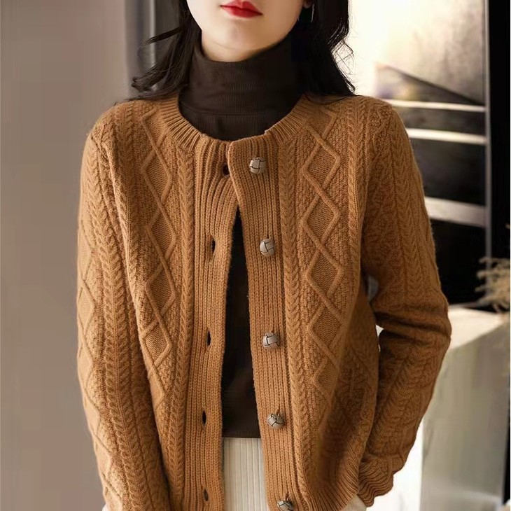 MZ 116802宽松复古日系慵懒风麻花针织衫外套