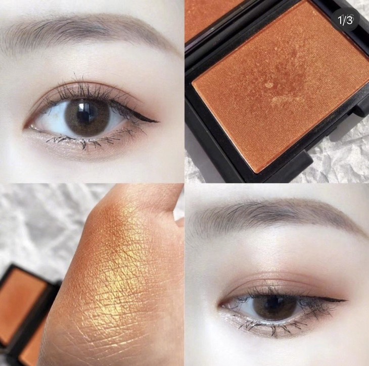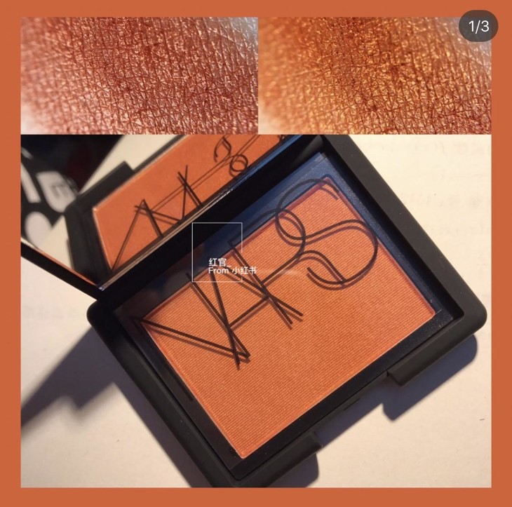 NARS腮红#TAJ MAHAL(泰姬陵)👍一个超美的橘金色 ,橘色系腮红~ 强推!一直喜欢橘色🍊系腮红的妹子,这个限量色不得不入!🌬粉很细也很好上色哦,暖灯光下细细闪闪看起来像水光肌一样显得气色很好。这种blingbling的去酒吧🍸绝对人群中里面耀眼的小星星✨✨不显毛孔,显气色!持久度也很OK!撩人撩心💗约会用这个画一个元气满满的少女妆容没跑了😍