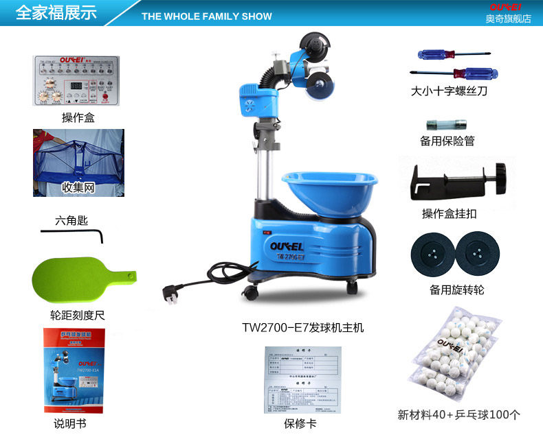 奥奇 E7 豪华智能型编程新款发球机(送100个球+集球网)