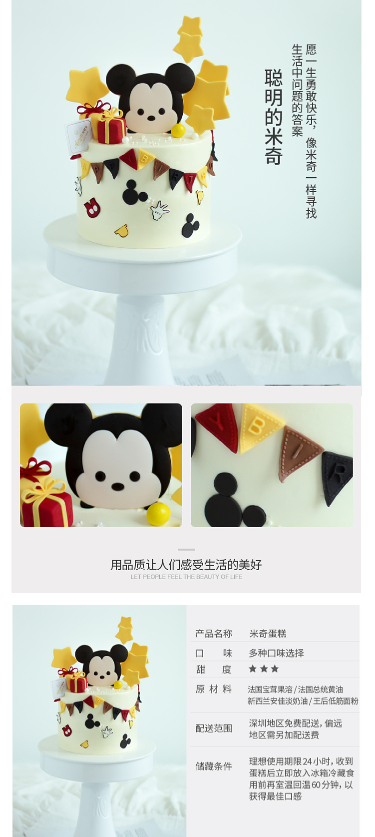 动物奶油男孩女孩宝宝周岁满月百天迪士尼米奇深圳同城配送
