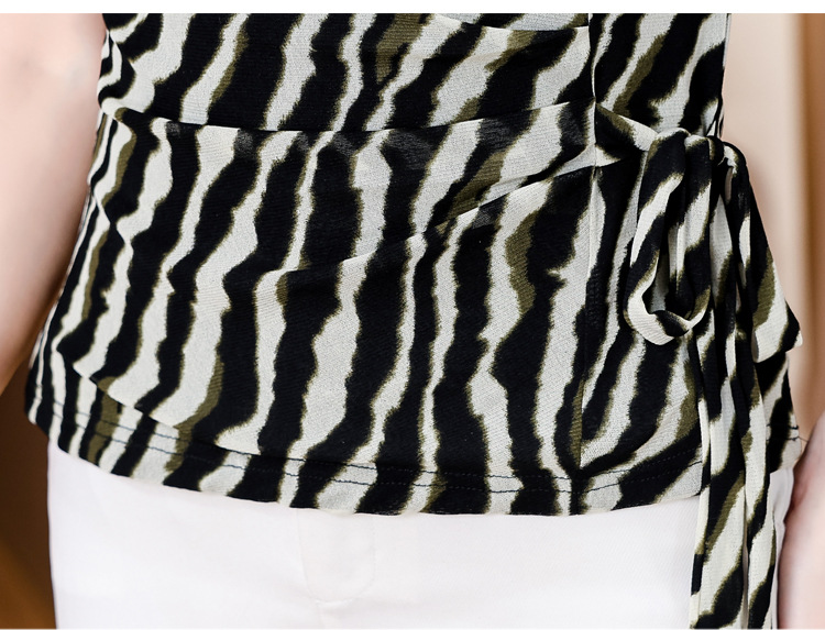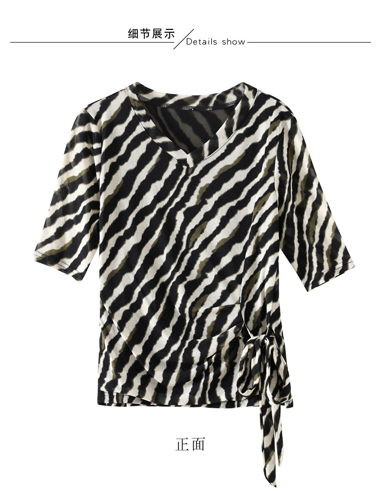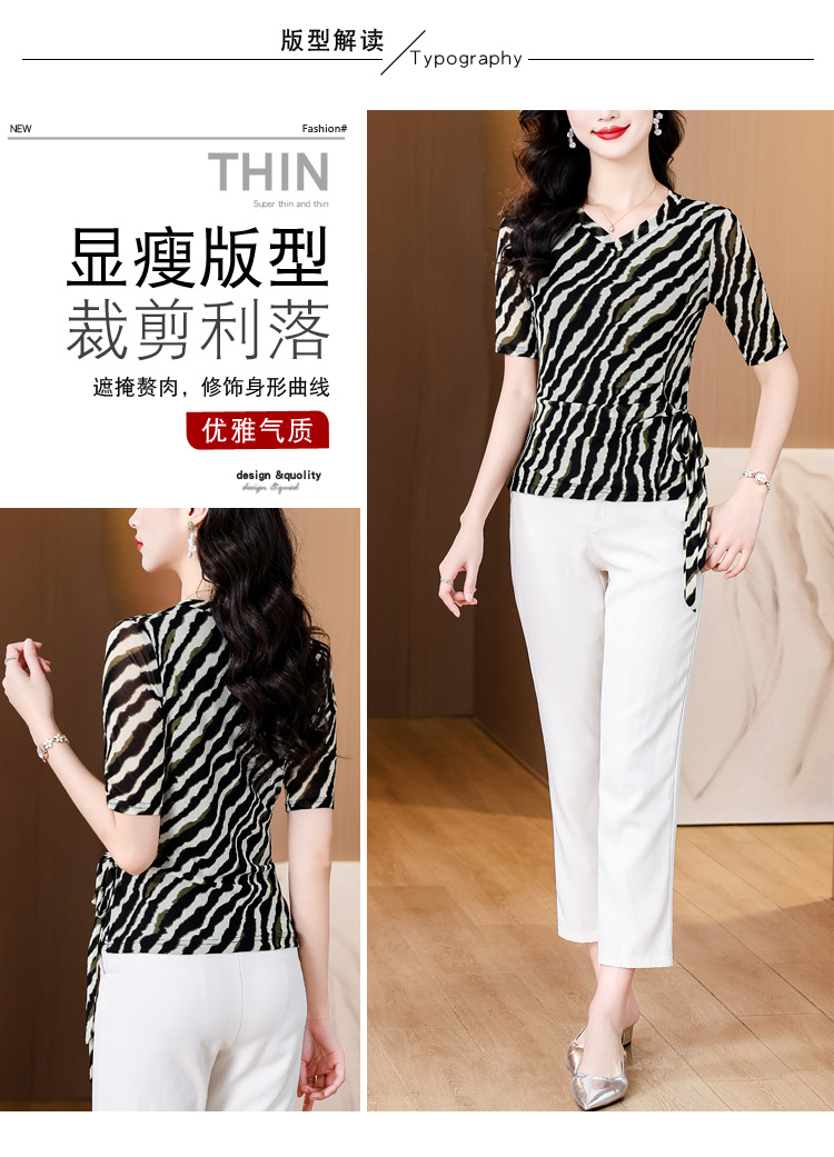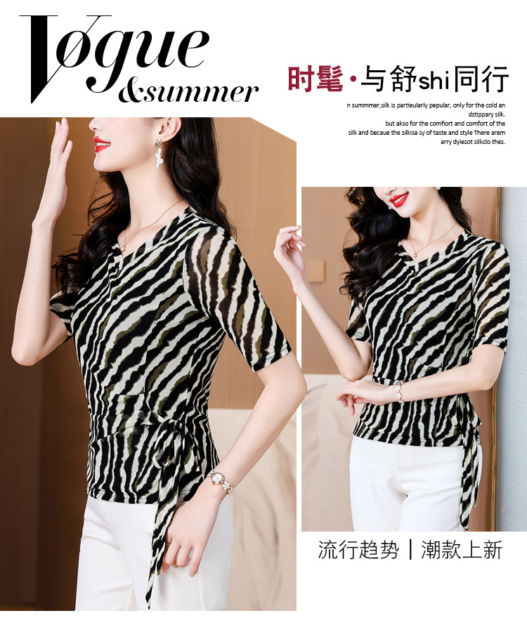 KQLB12N2820 2025夏新款时尚精致V领系带气质显瘦妈妈修身小衫设计感时尚上衣