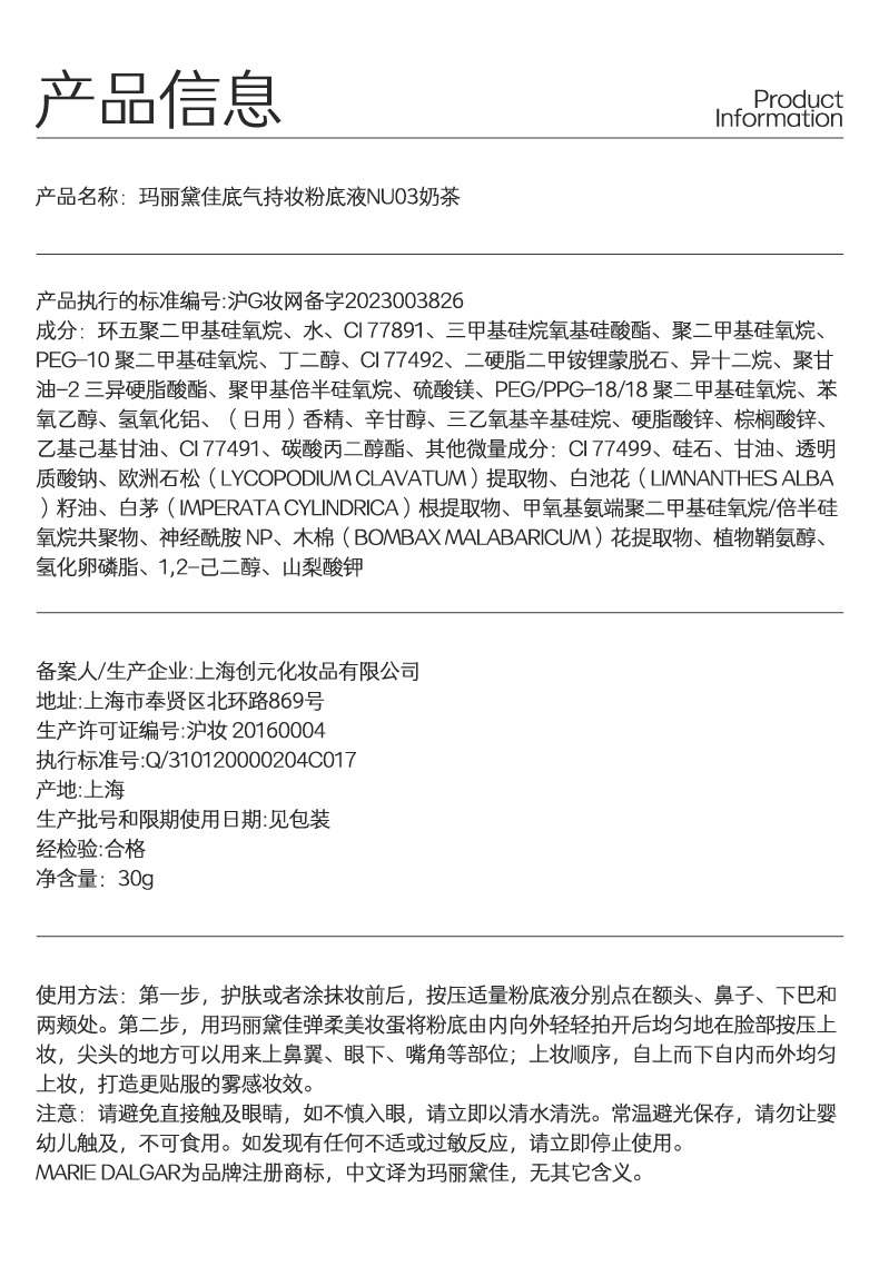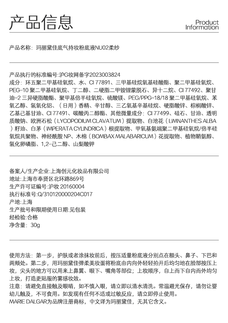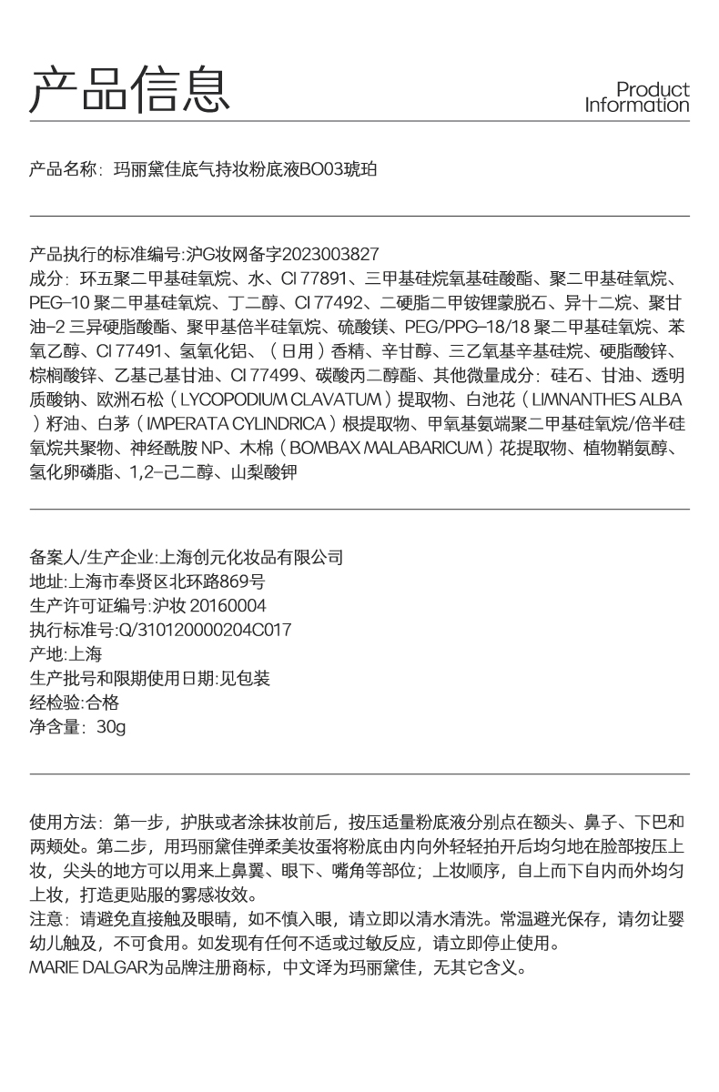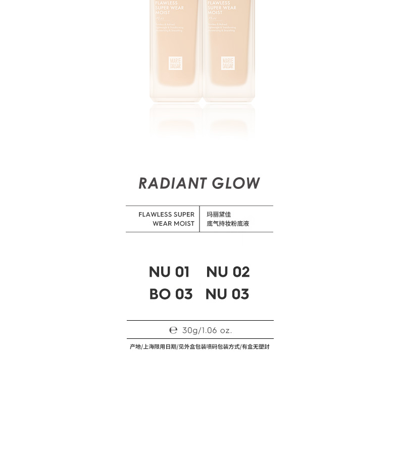 【积分兑换正装】玛丽黛佳 007底气持妆粉底液遮瑕持久不易暗沉4色