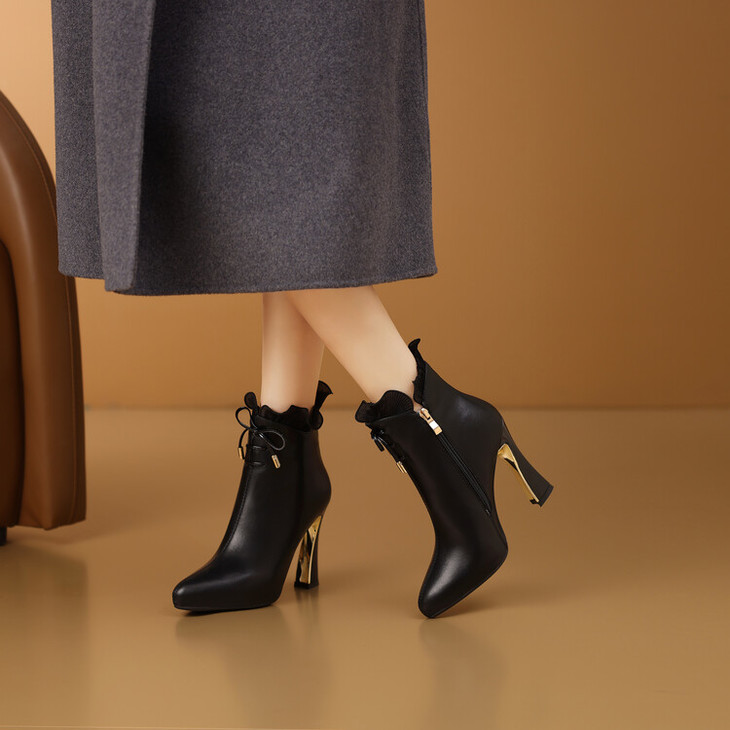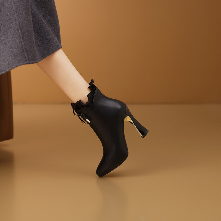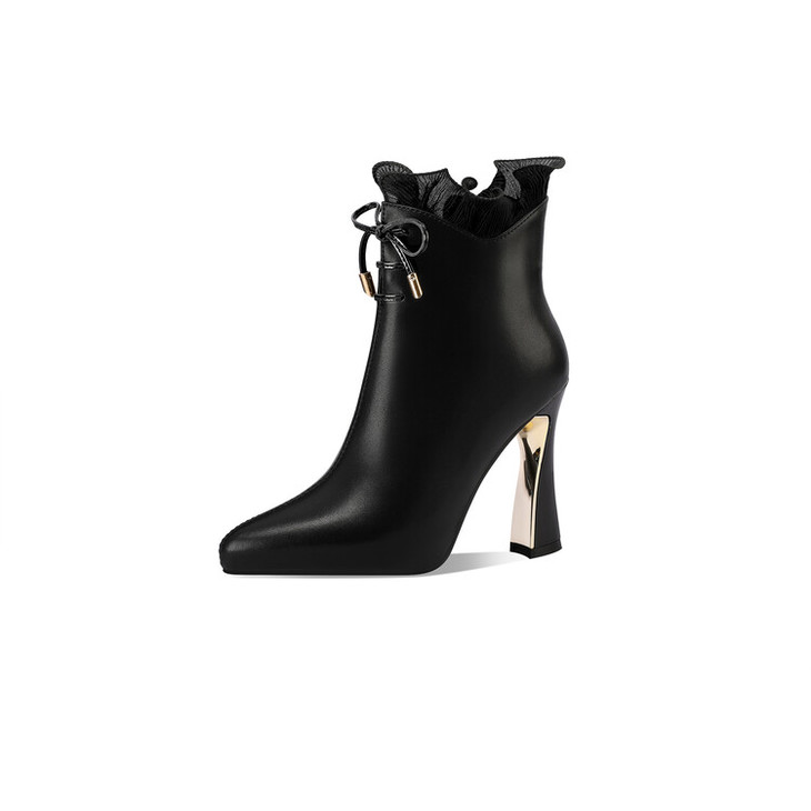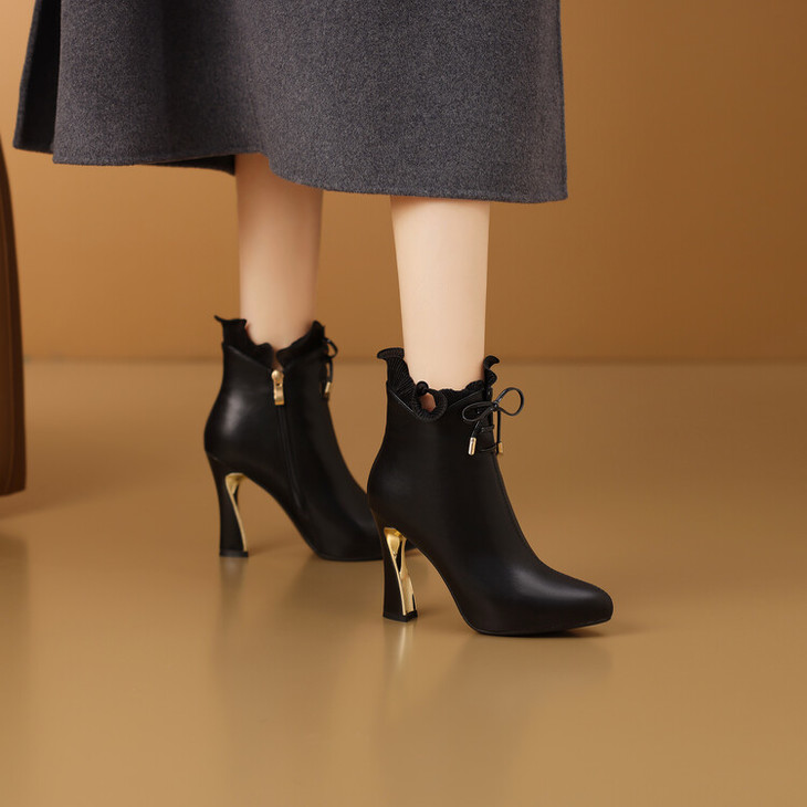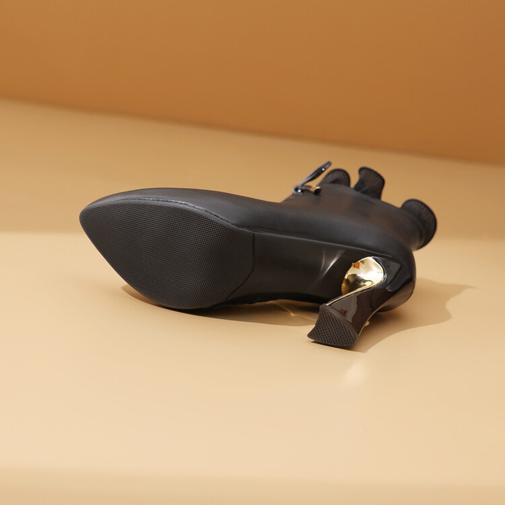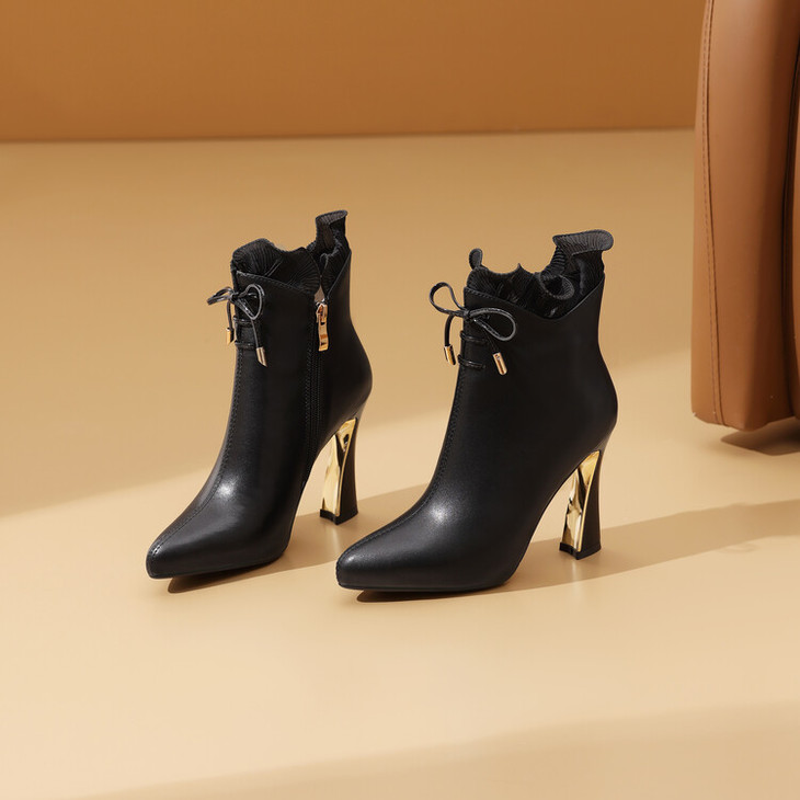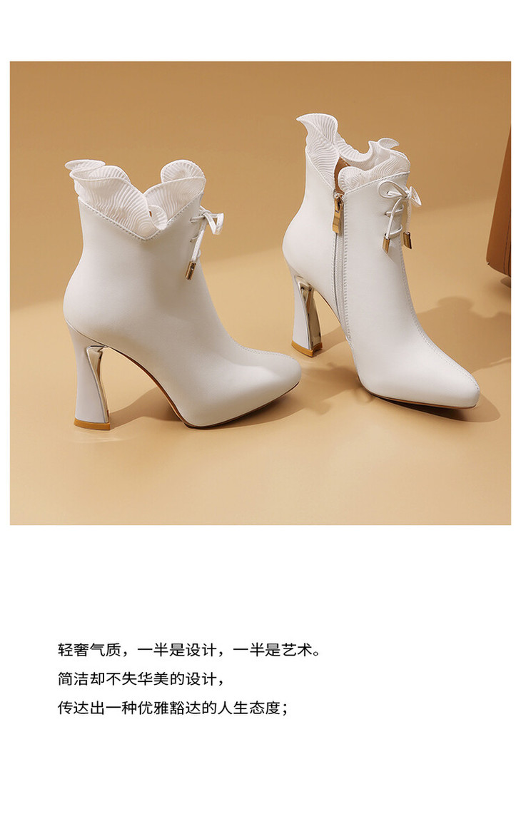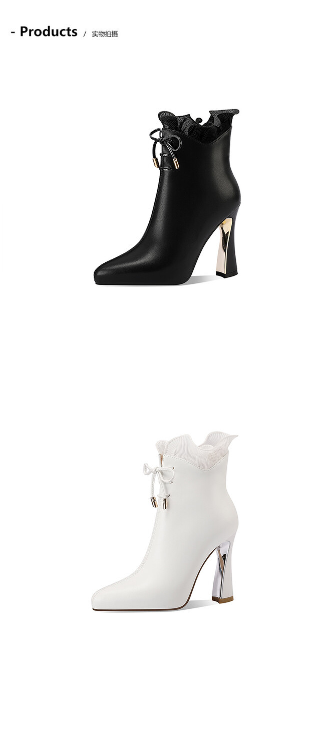 【预售5天】两种跟高~名媛辣妈优雅气质,时装靴尖头粗高跟蝴蝶结短靴DS&9003