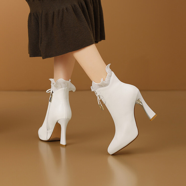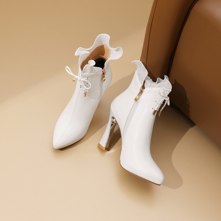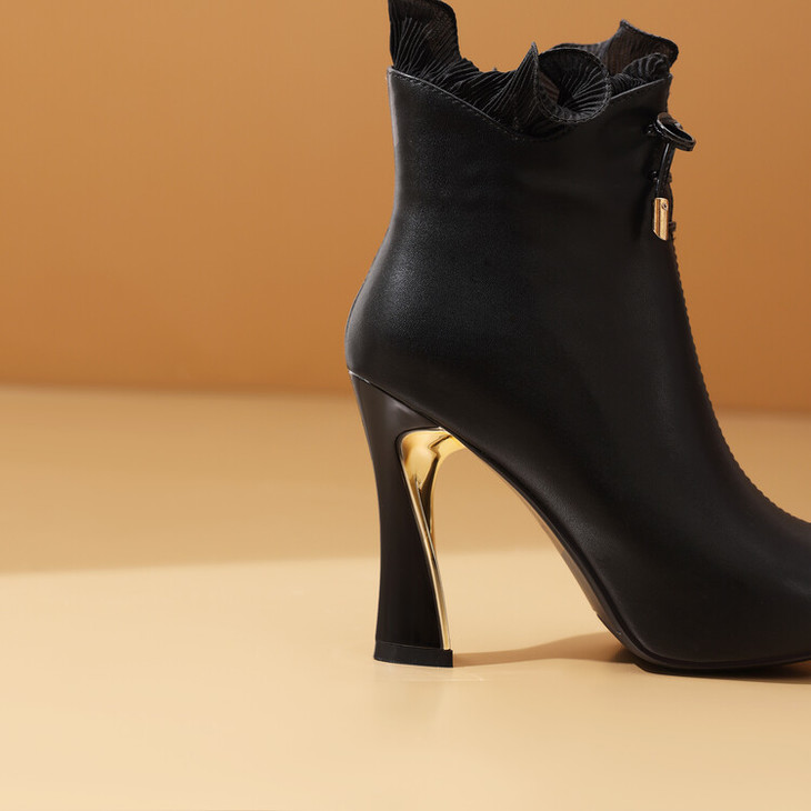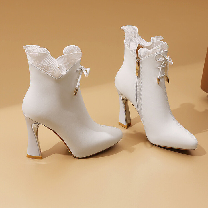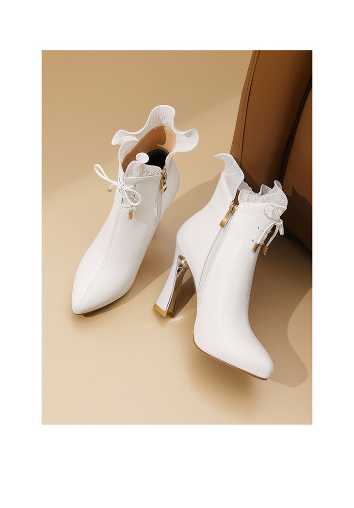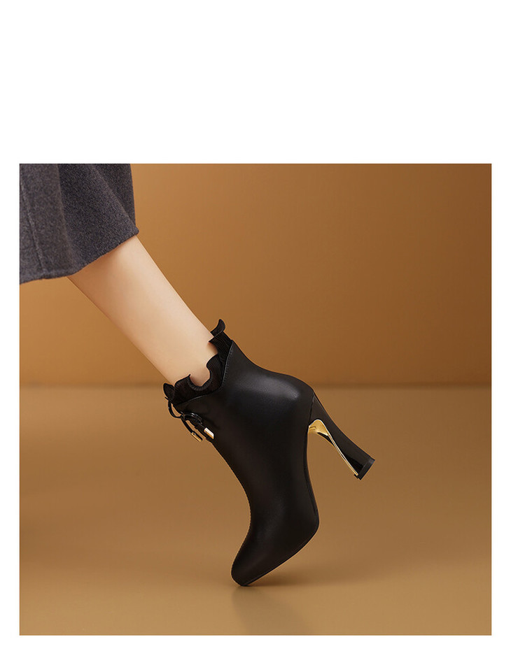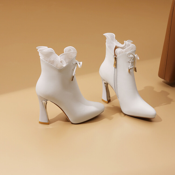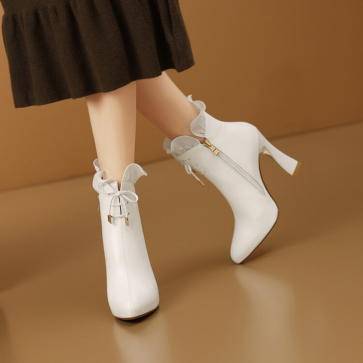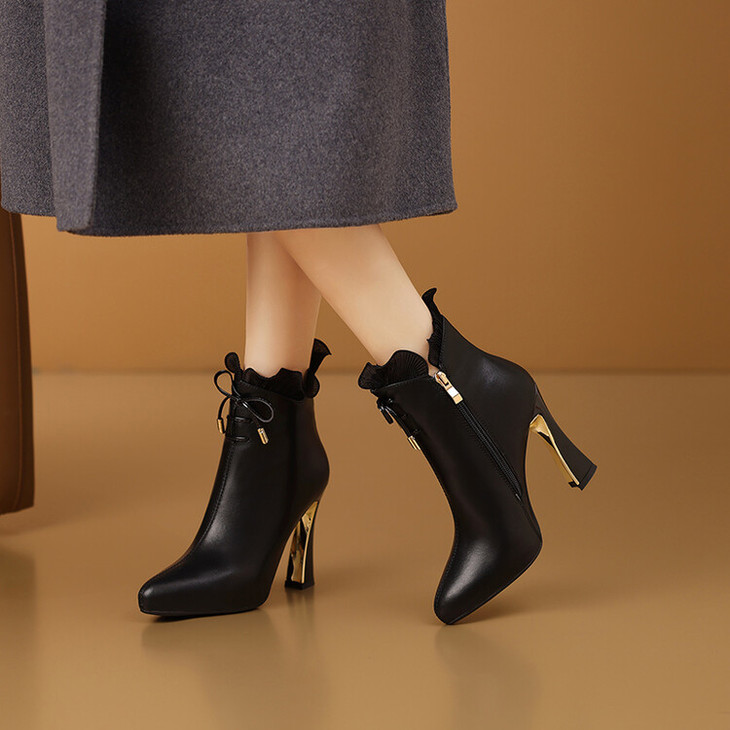 【预售5天】两种跟高~名媛辣妈优雅气质,时装靴尖头粗高跟蝴蝶结短靴DS&9003