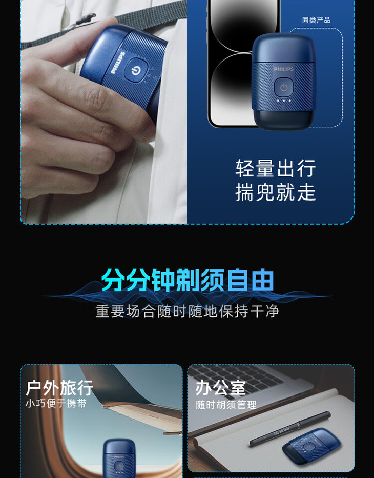 PHILIPS飞利浦鹅卵石便携电动剃须刀