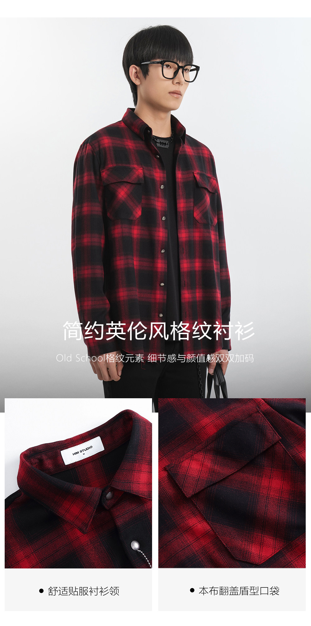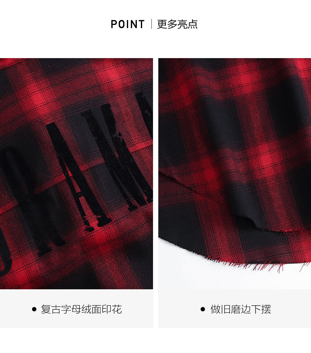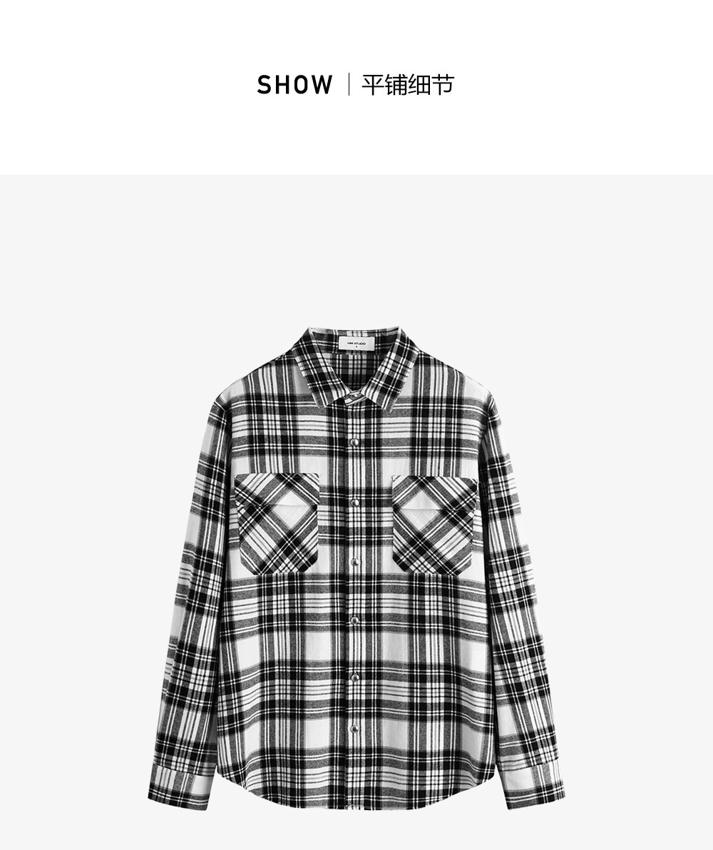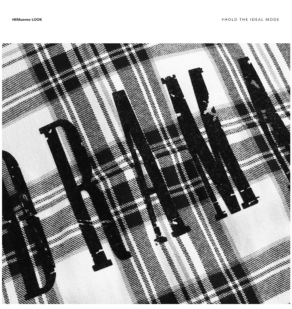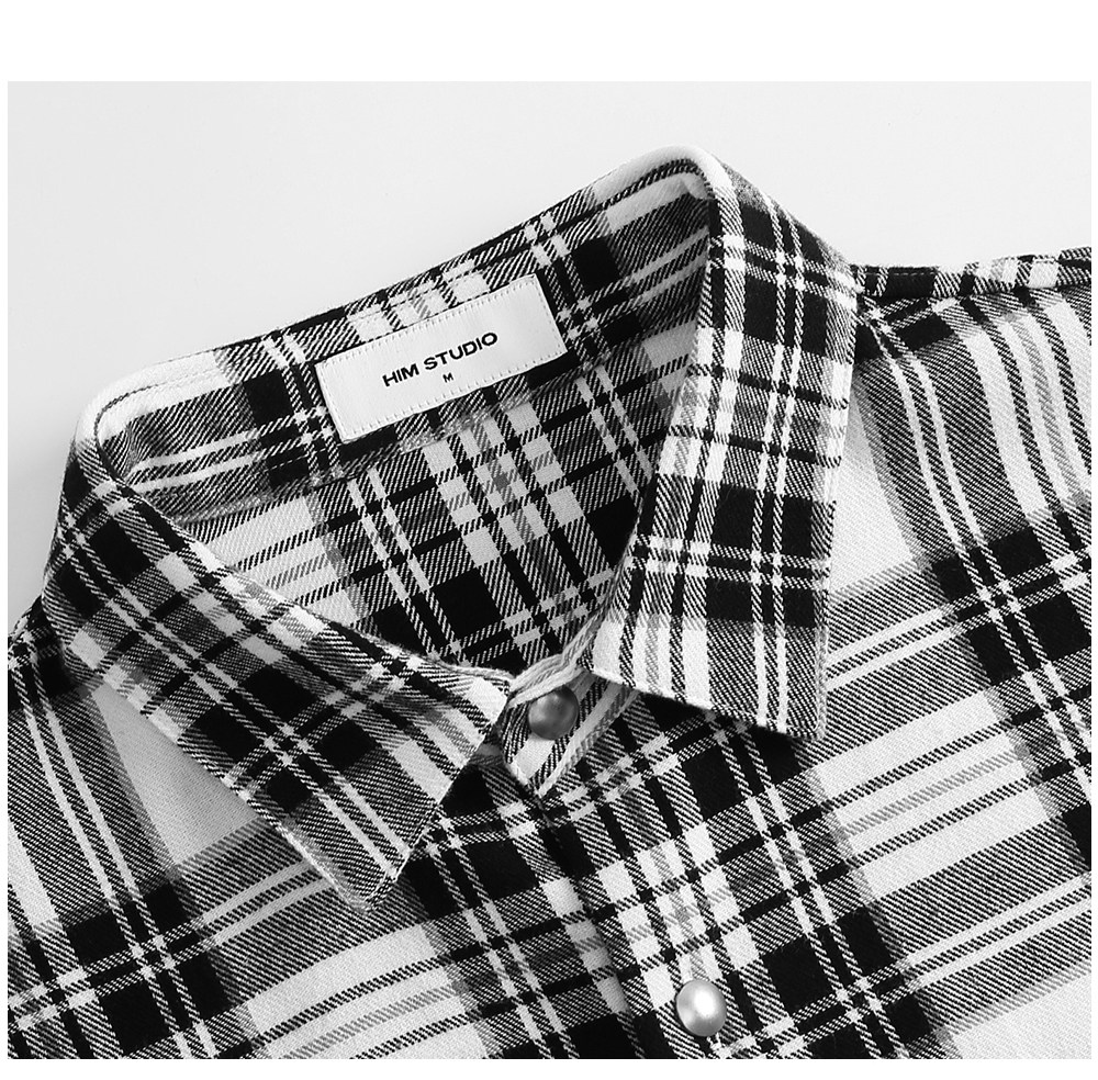 HIM漢崇 休闲复古格子衬衫男后背字母印花合身衬衣外套 2025秋季