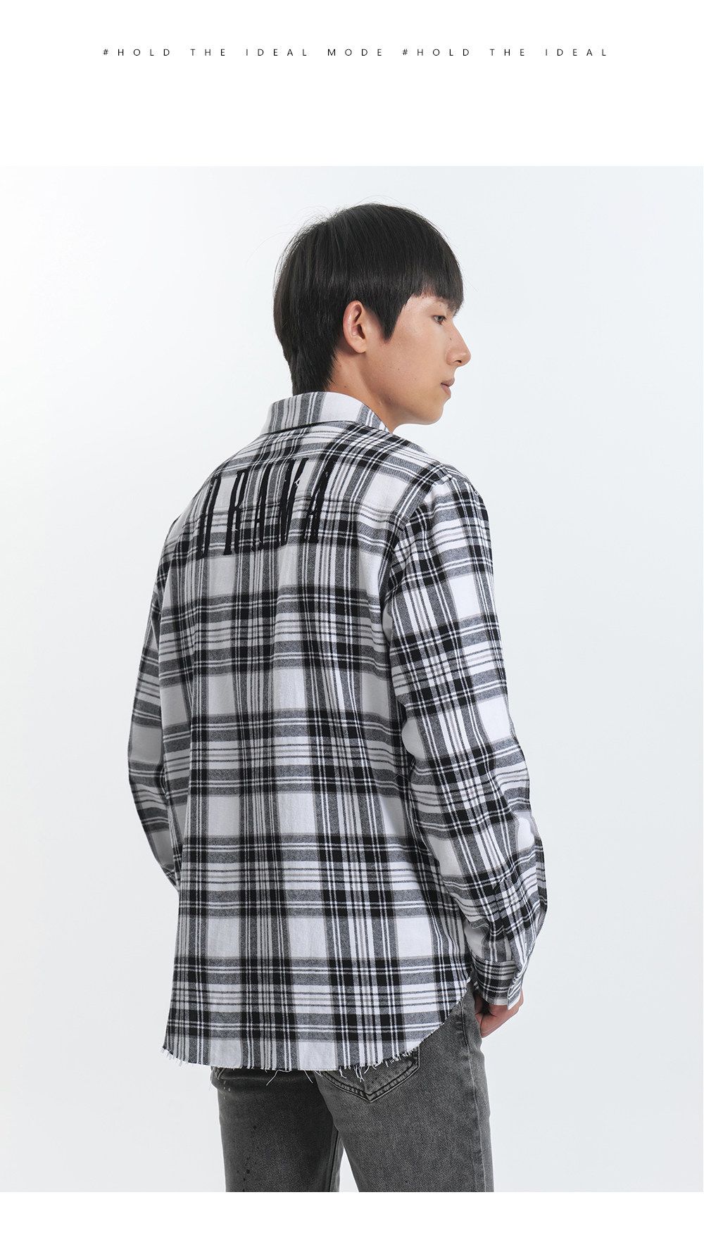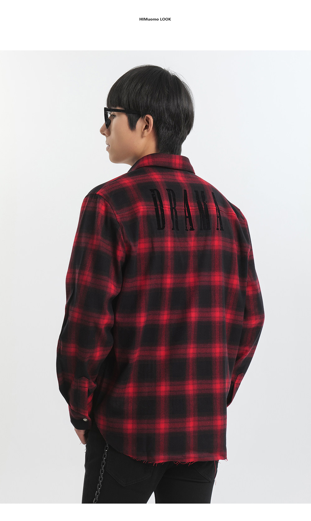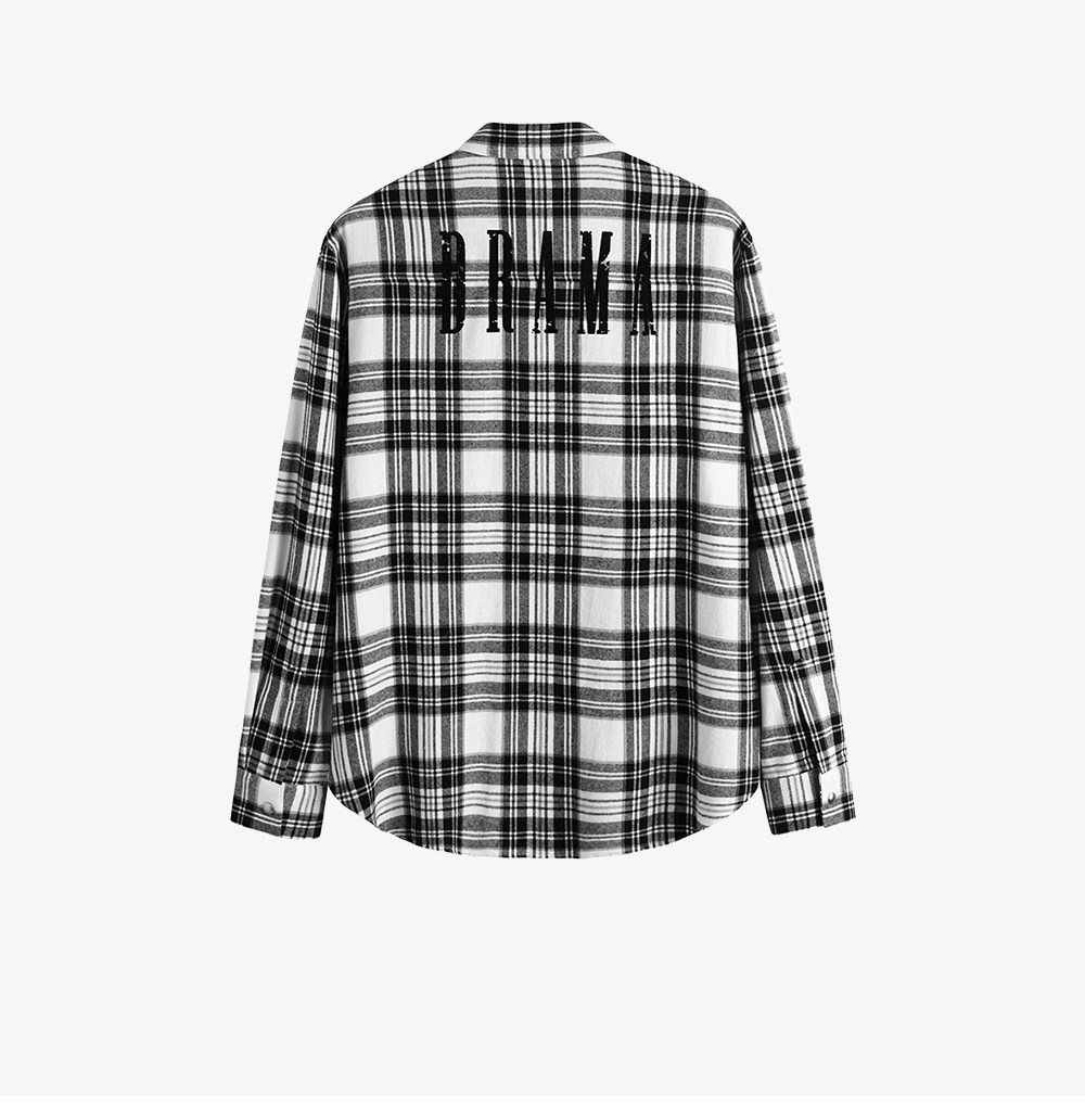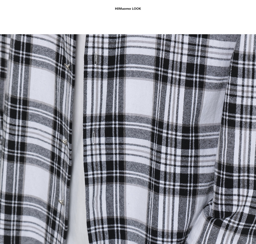 HIM漢崇 休闲复古格子衬衫男后背字母印花合身衬衣外套 2025秋季
