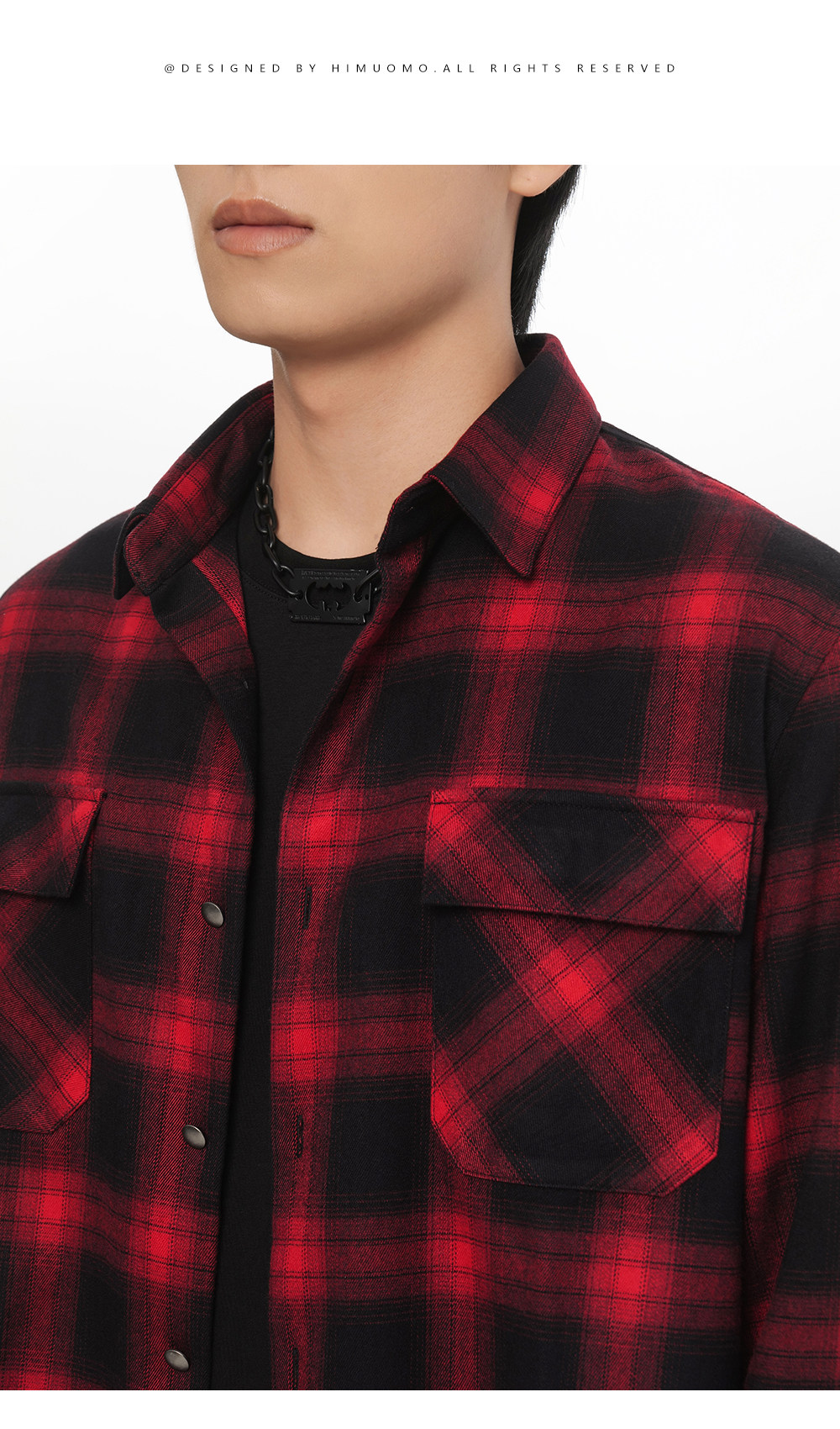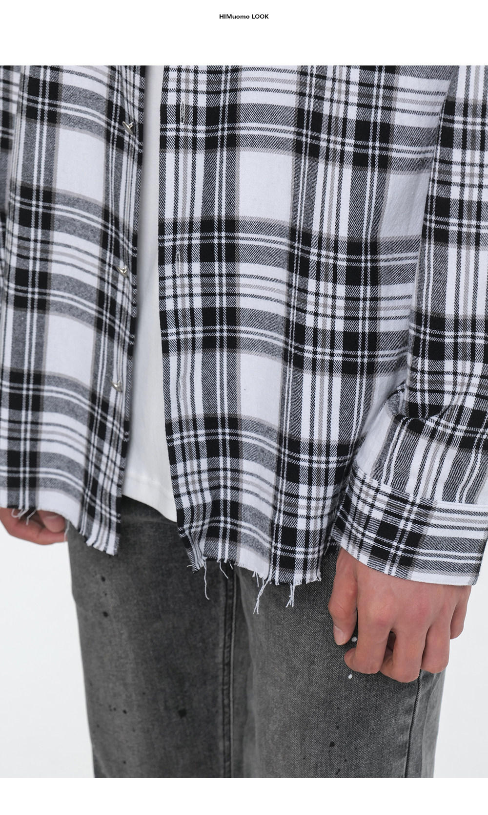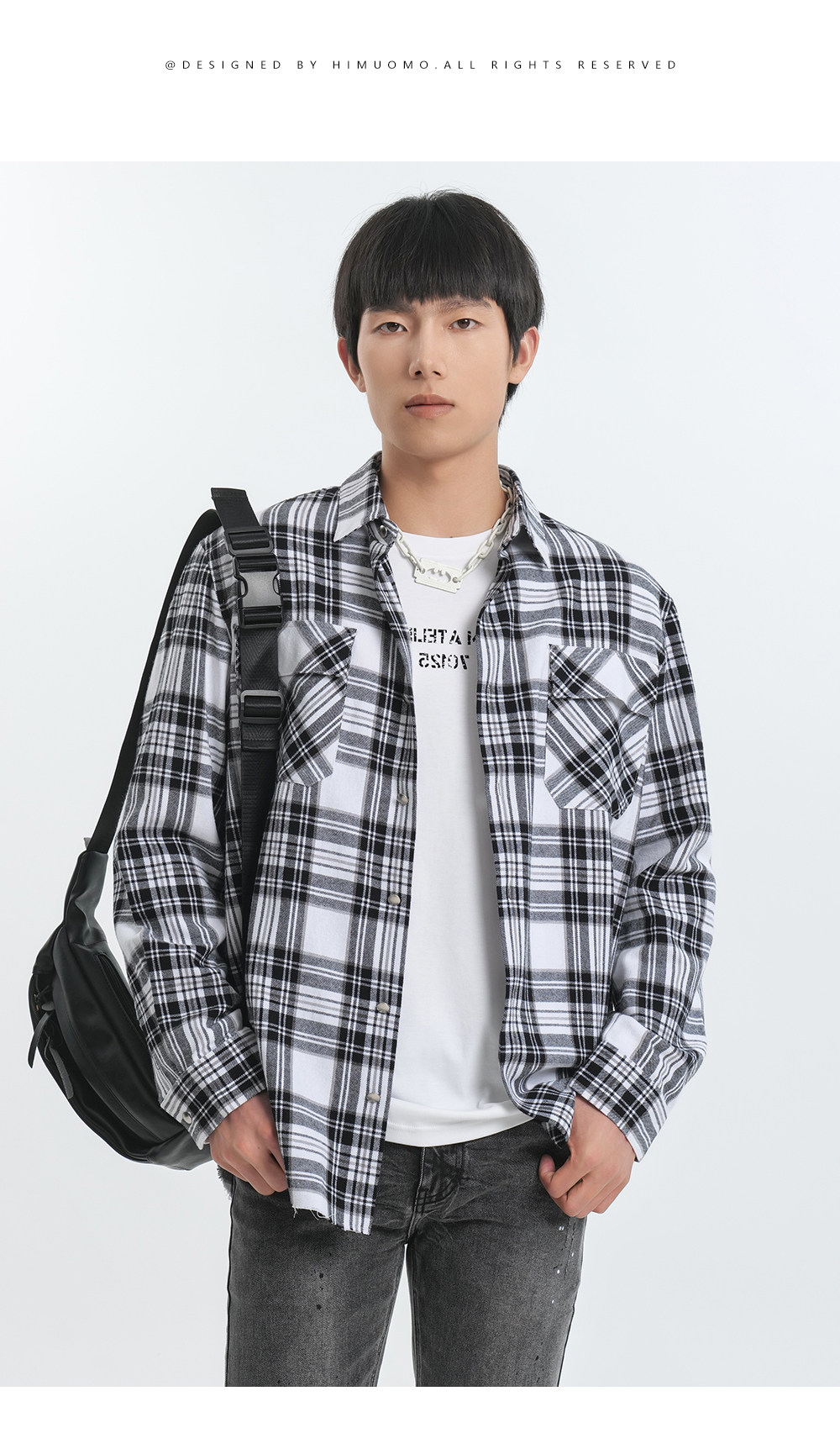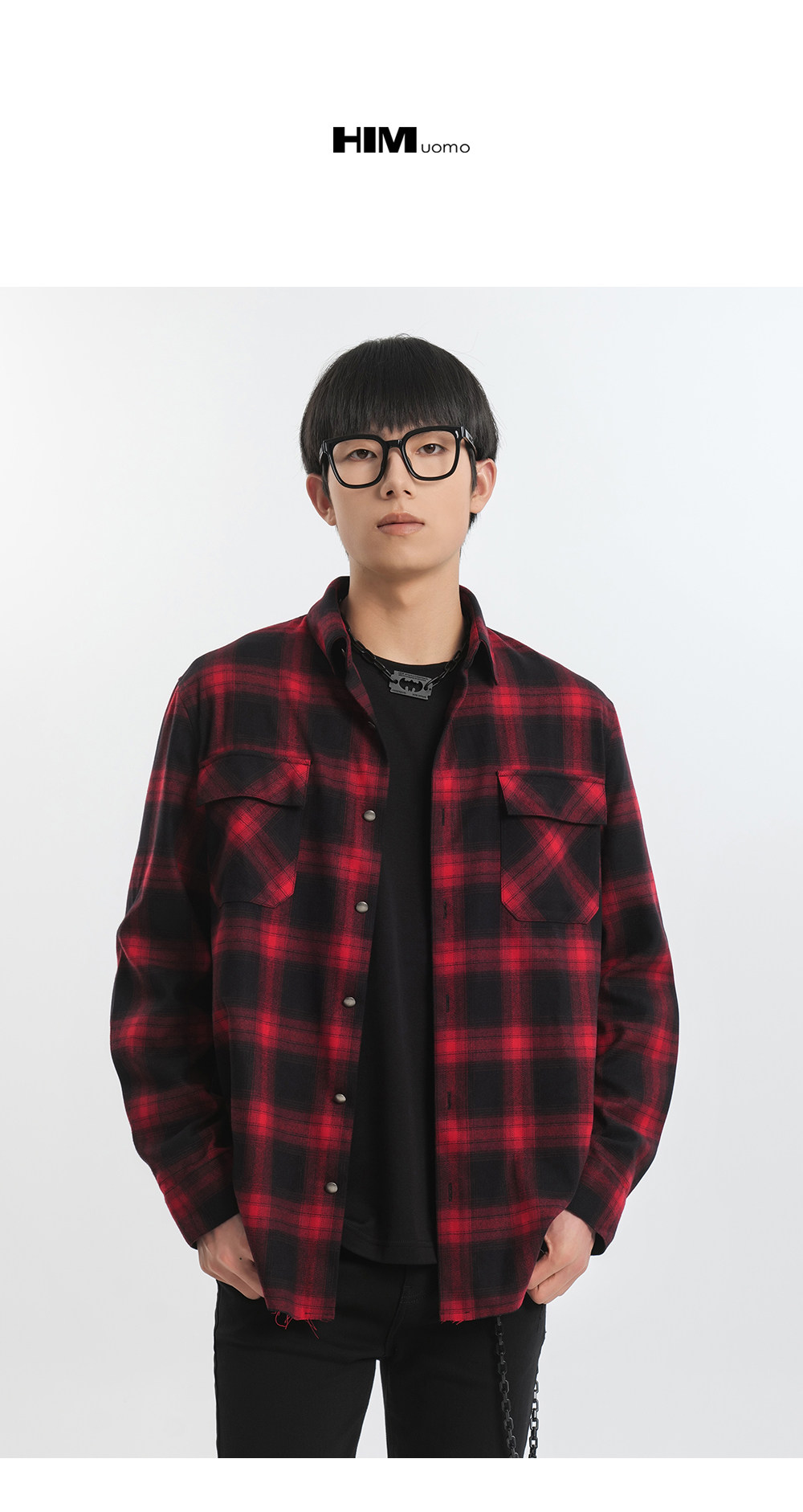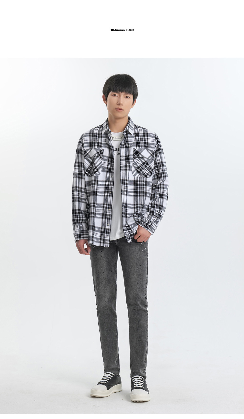 HIM漢崇 休闲复古格子衬衫男后背字母印花合身衬衣外套 2025秋季
