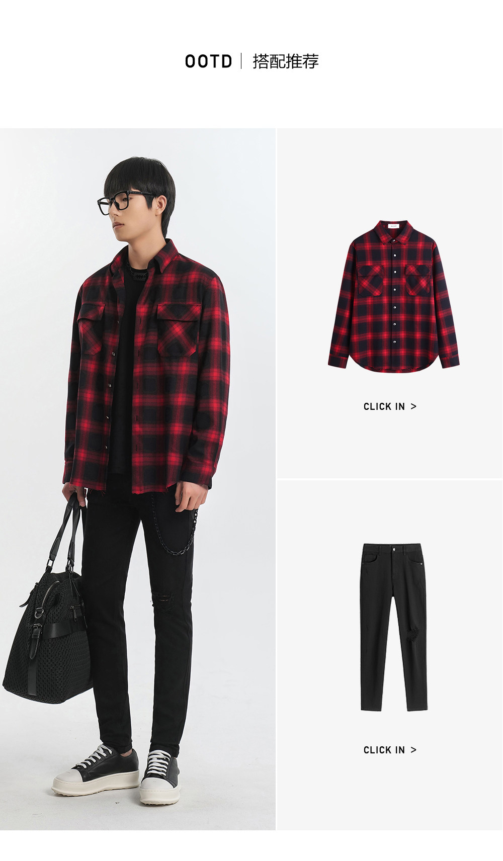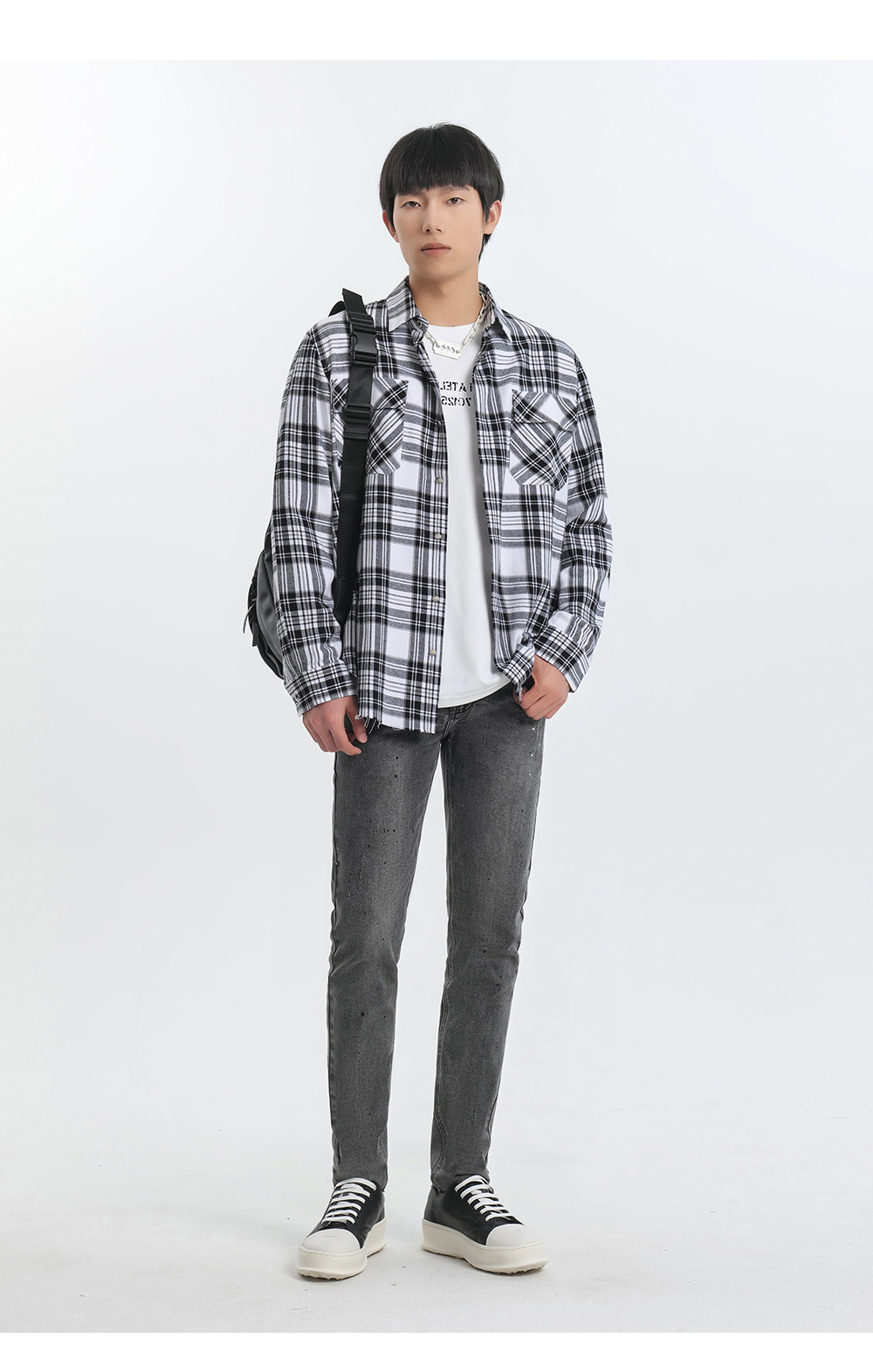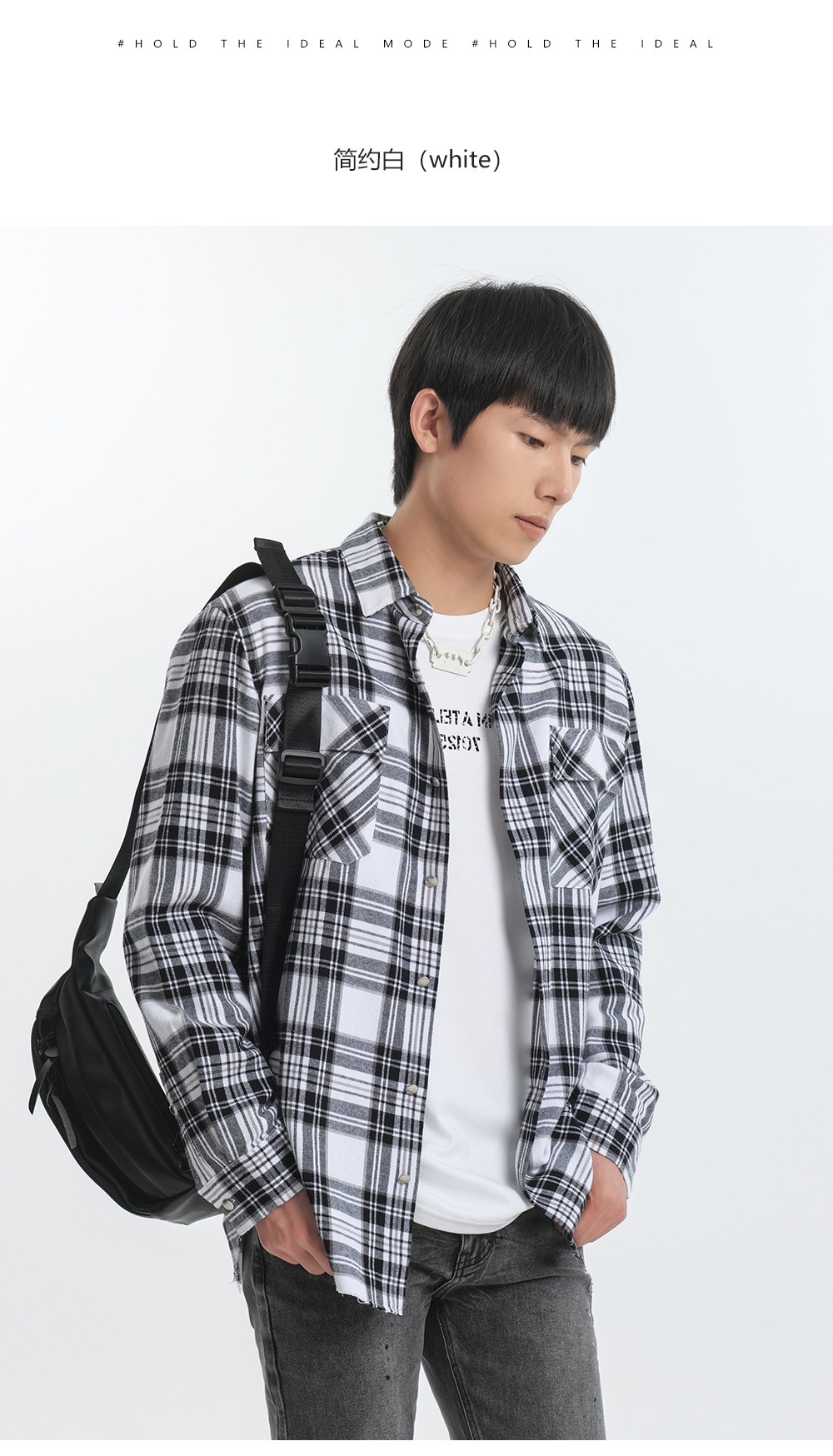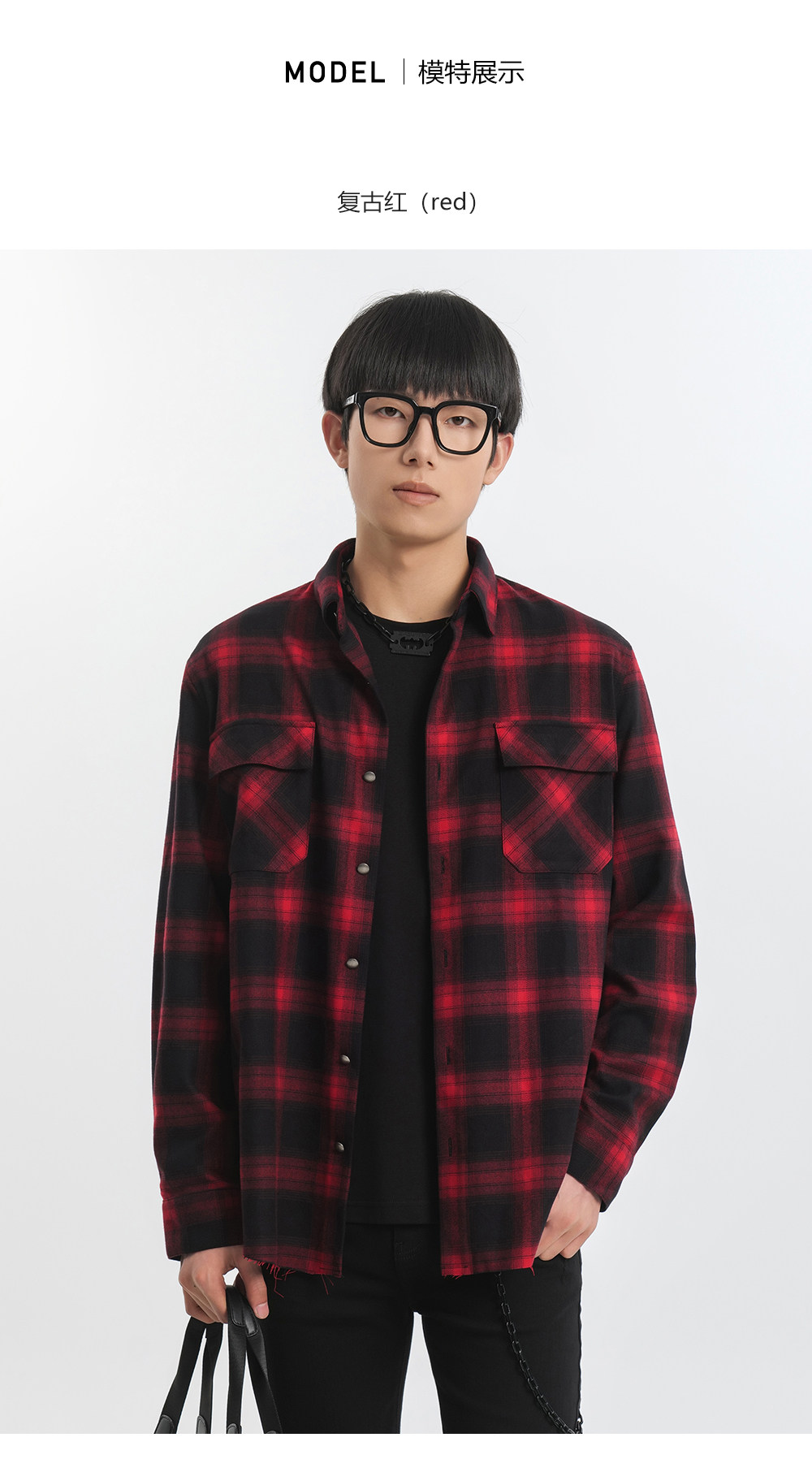 HIM漢崇 休闲复古格子衬衫男后背字母印花合身衬衣外套 2025秋季