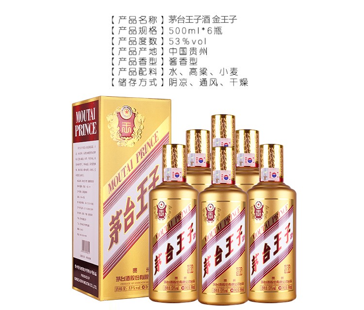 【推荐】2018年茅台王子酒 金王子 53度 500ml*6瓶