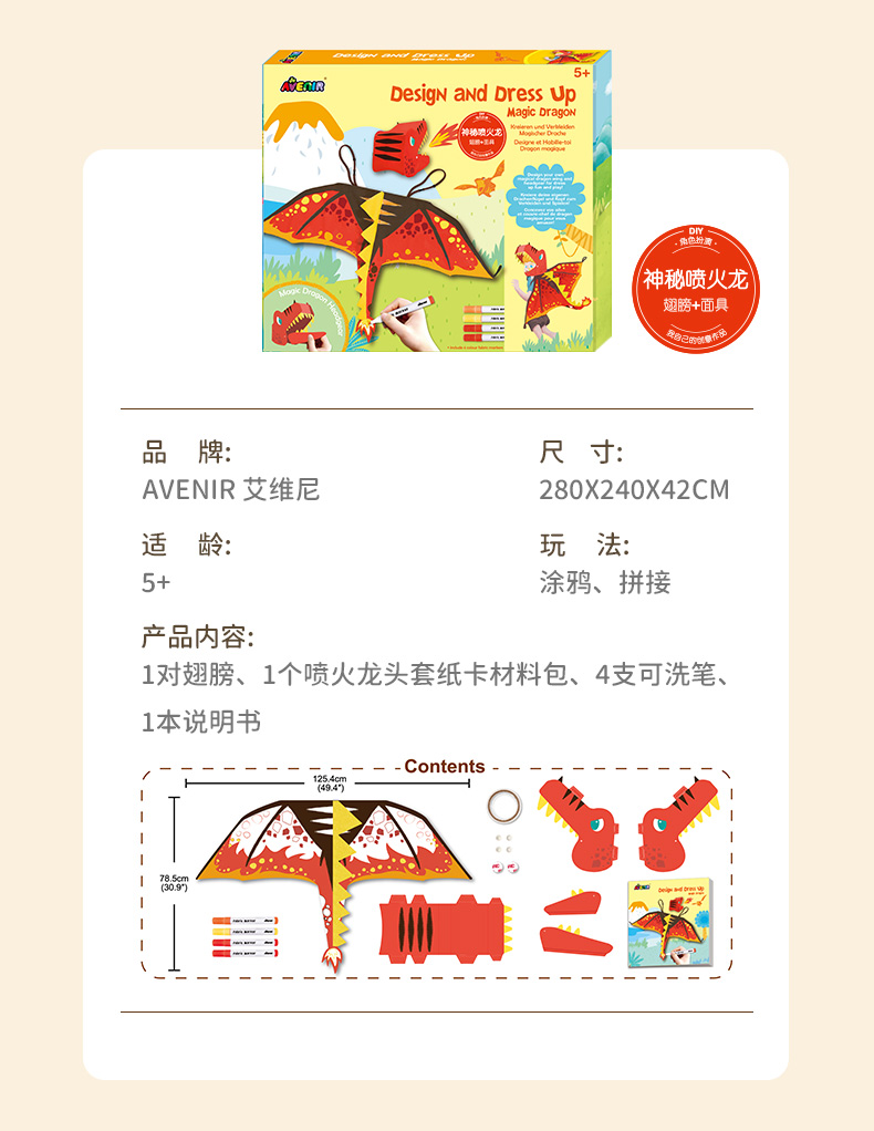 德国avenir儿童diy手工涂鸦制作材料包生日装扮派对男孩女孩5-6岁10月25号发货