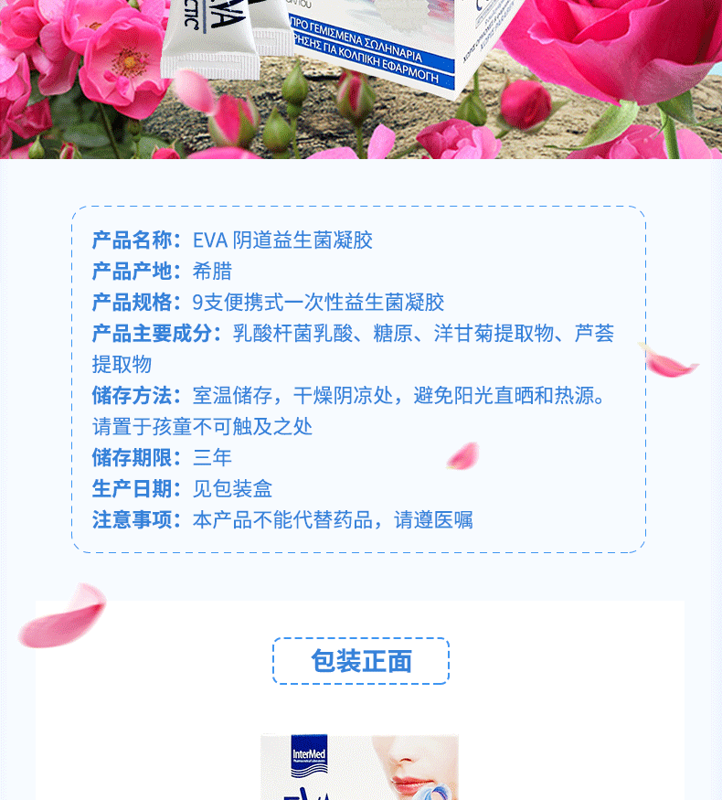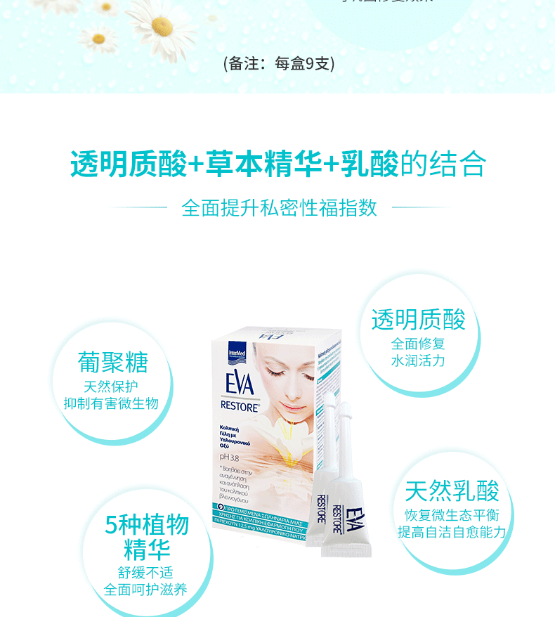 【大眼睛买买买专属】希腊EVA青春修复凝胶/益生菌凝胶 女性私处护理保养清洁 滋润补水 独立小包装 5g*9支/盒