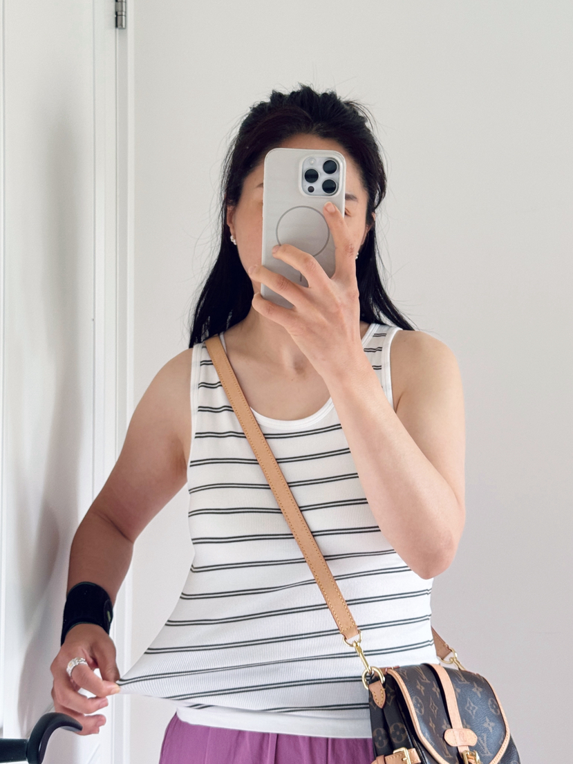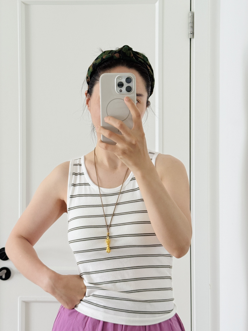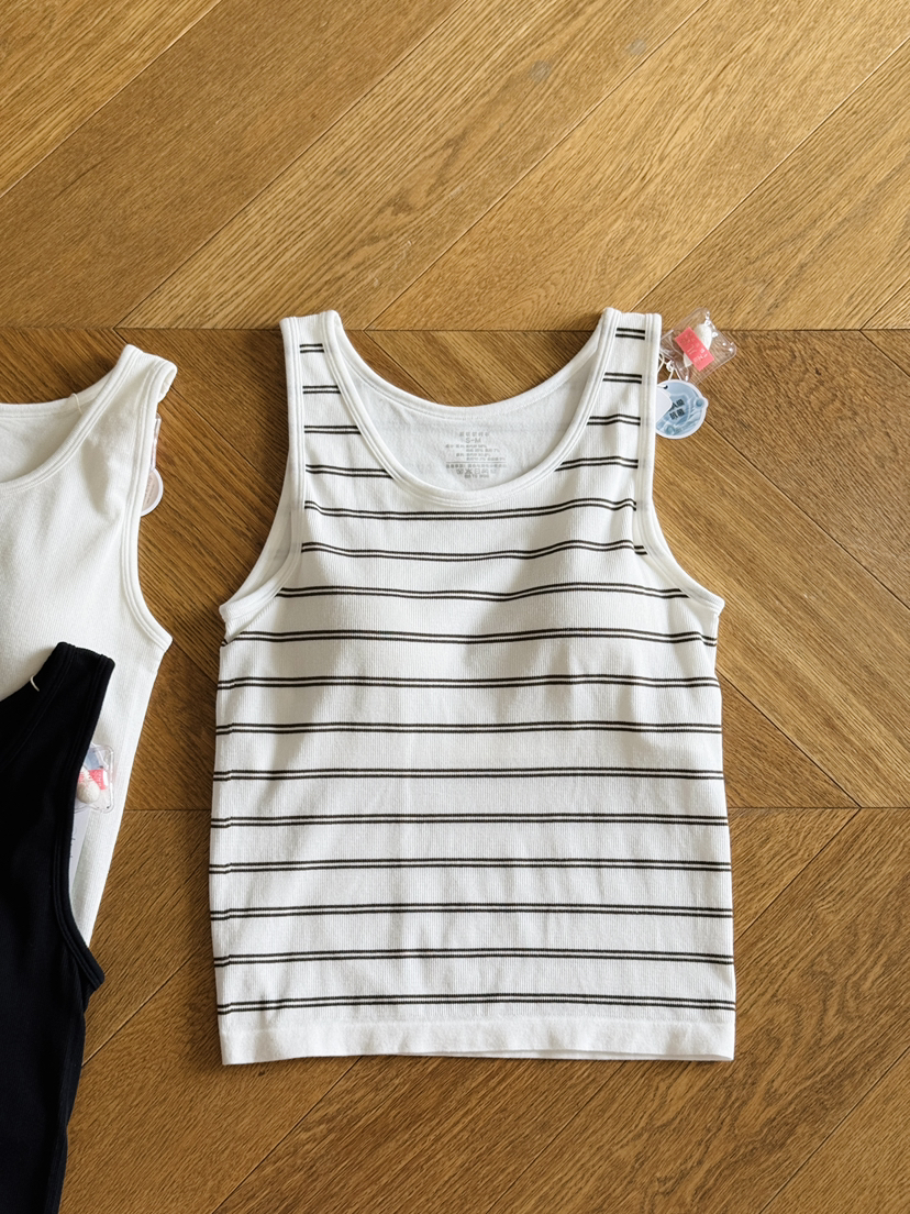 5A蚕丝抗菌养护背心这款强烈推荐给大家,一件集合各种舒适要素 ,重新设计基础款,虽然是简单的一件背心,但领口和袖口、包括条纹的宽度和比例经过专业的调试工艺,最后给大家呈现出来的版型和面料对身材的包容度很赞,无缝一体工艺,无感bra 十背心=一体式背心,真是太爱了。