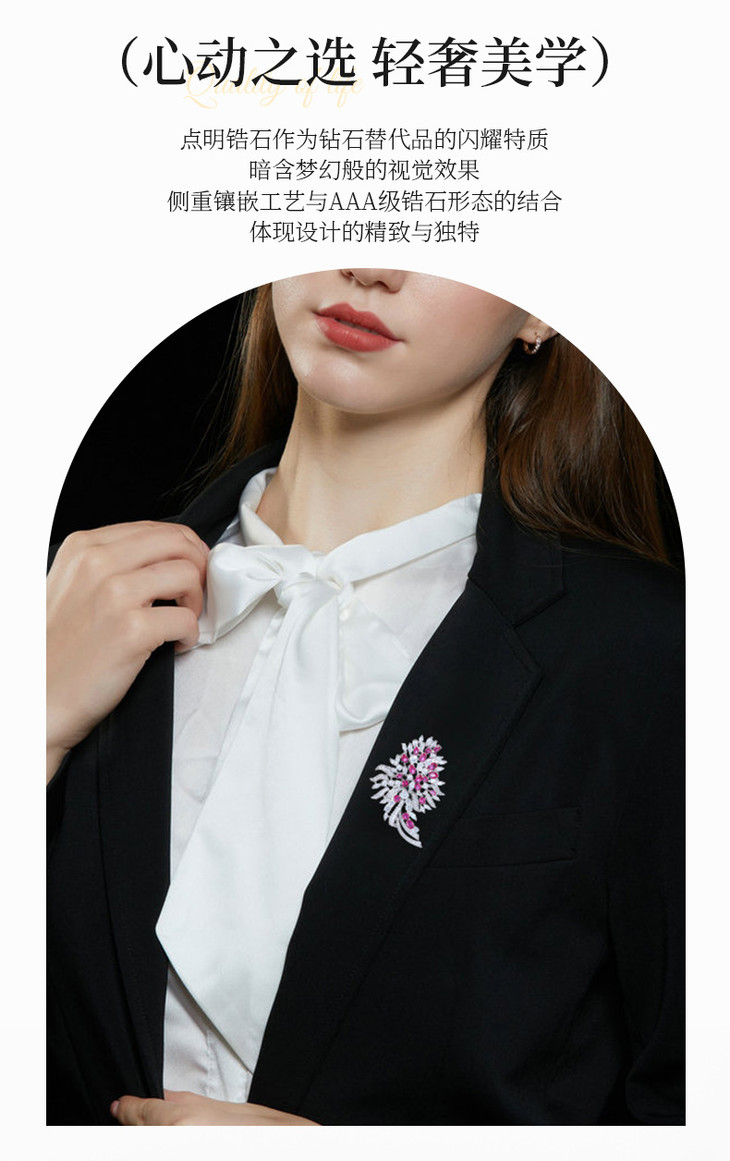 高端轻奢红刚玉锆石紫荆花胸针,奢华大气珠宝款西装外套配饰胸花LY-M-350