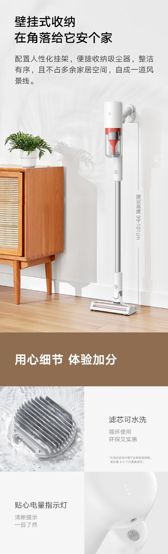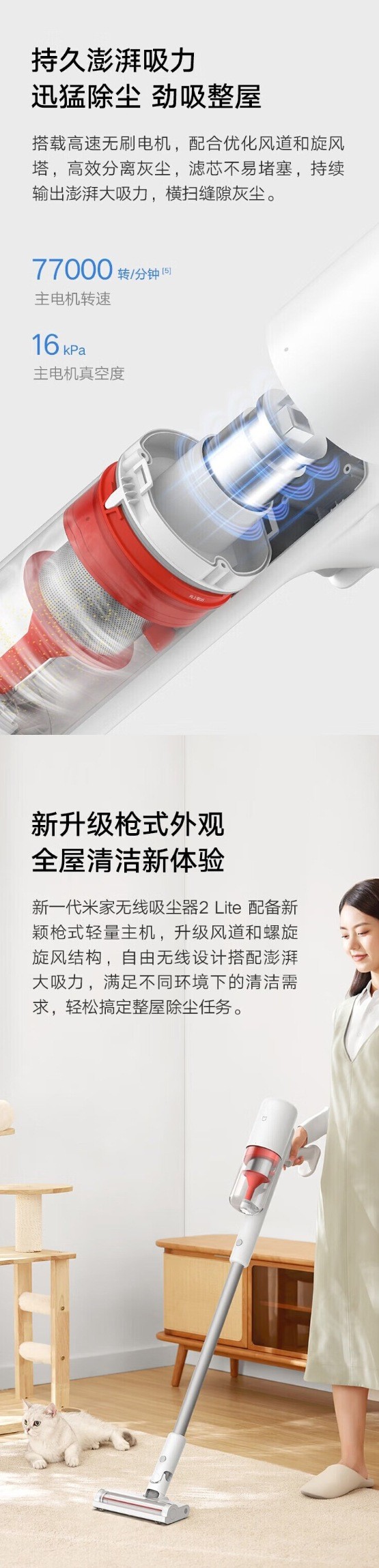 【小米米家无线吸尘器2 Lite】家用升级旋风到大吸力清洁除尘持久澎湃