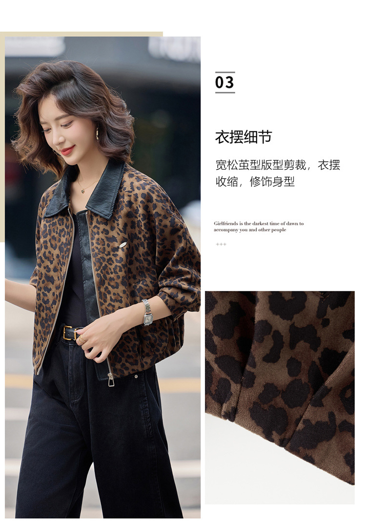雀说美式复古豹纹翻领撞色外套女新款设计感小个子休闲夹克AL9070 商品图3