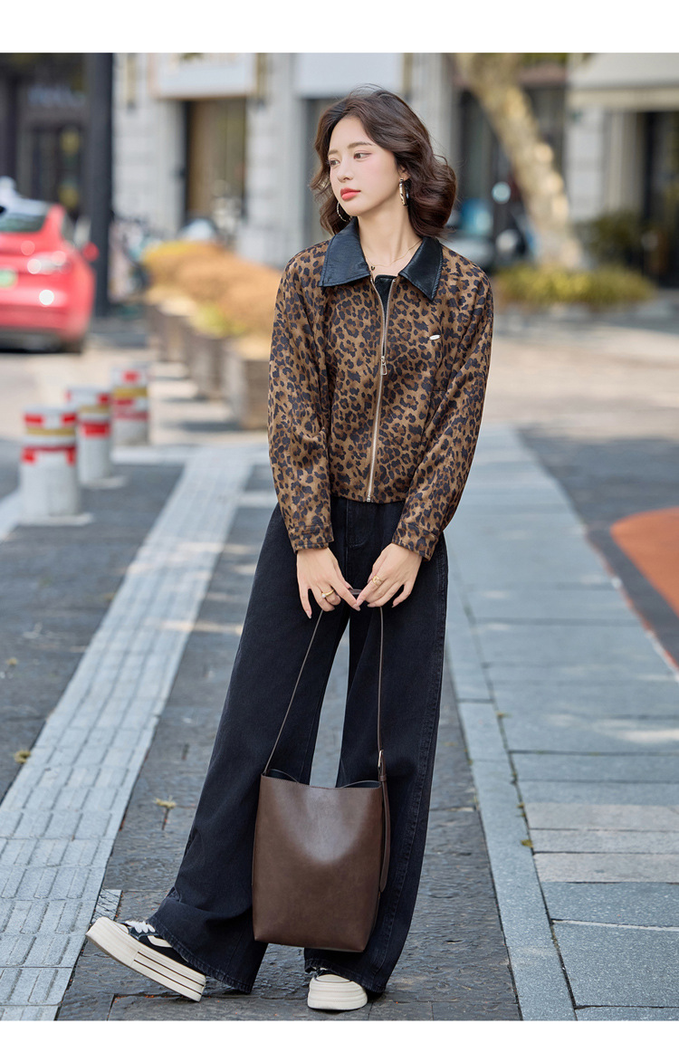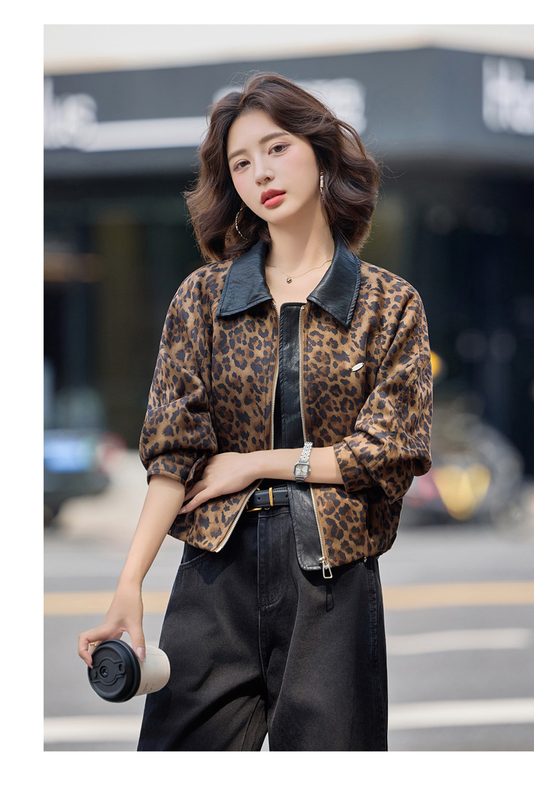 雀说美式复古豹纹翻领撞色外套女新款设计感小个子休闲夹克AL9070 商品图0