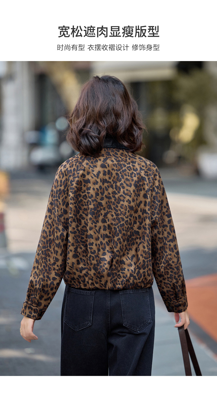 雀说美式复古豹纹翻领撞色外套女新款设计感小个子休闲夹克AL9070 商品图4