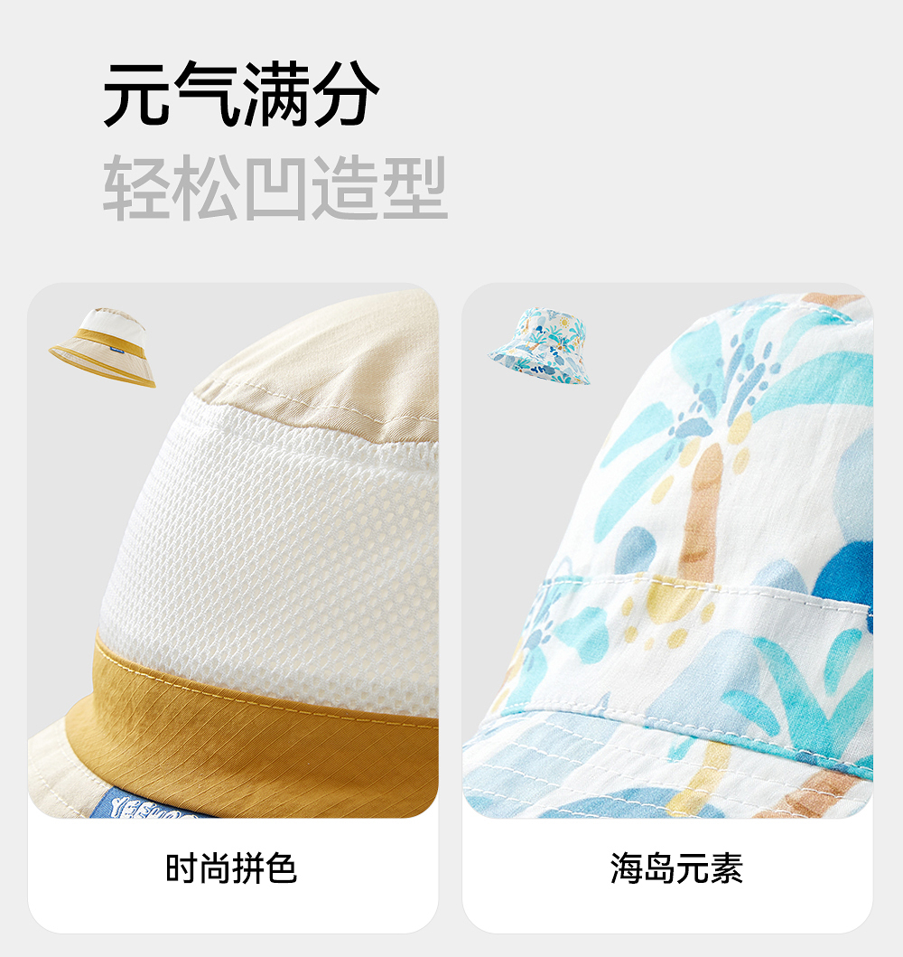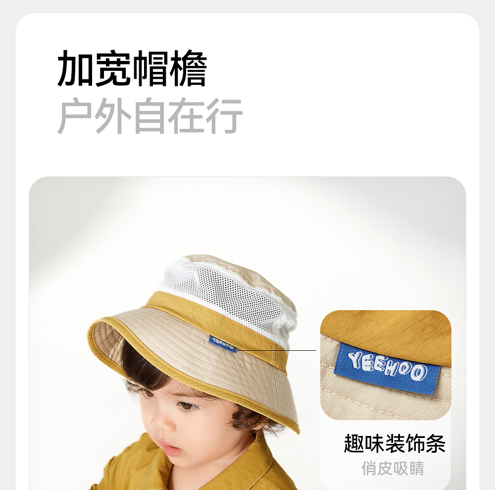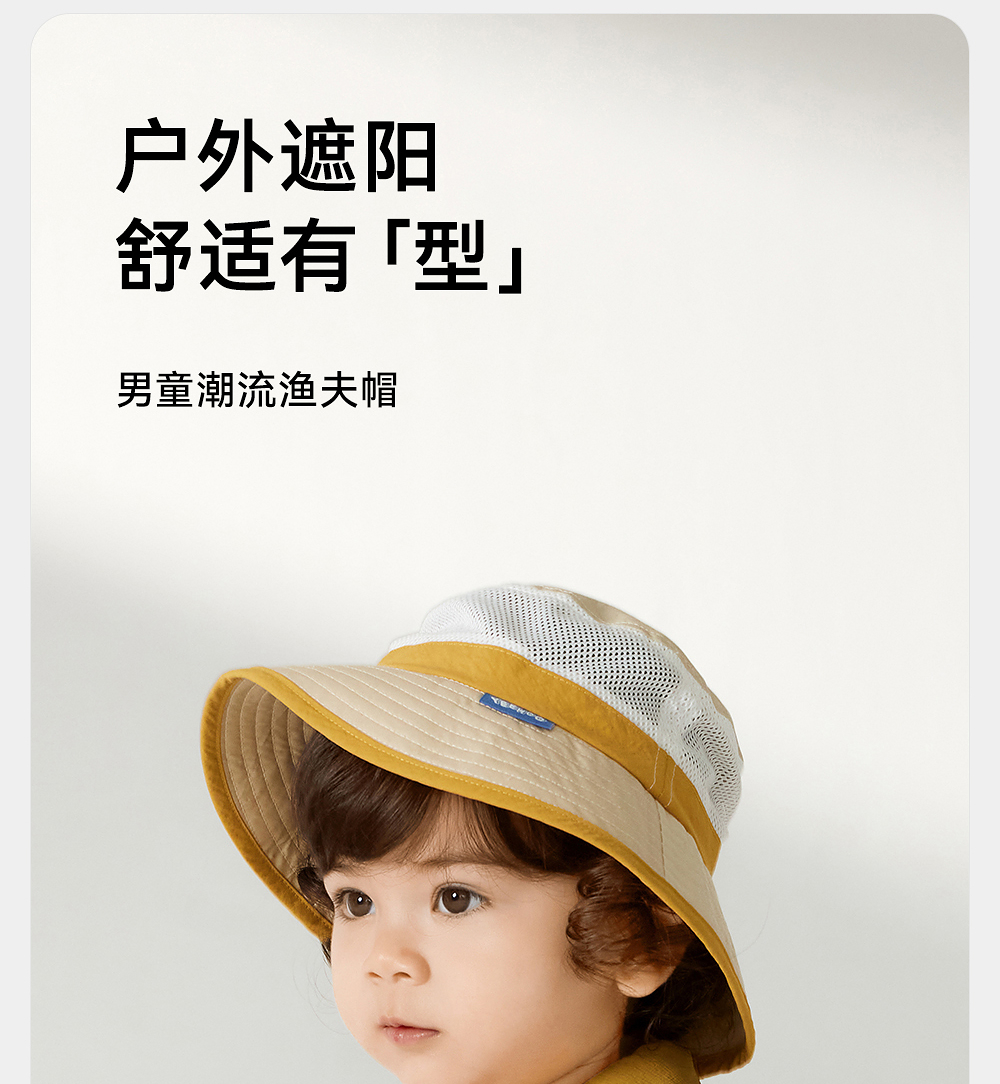 英氏婴儿帽子春夏季透气不闷男童帽子2025新款男宝渔夫帽休闲百搭
