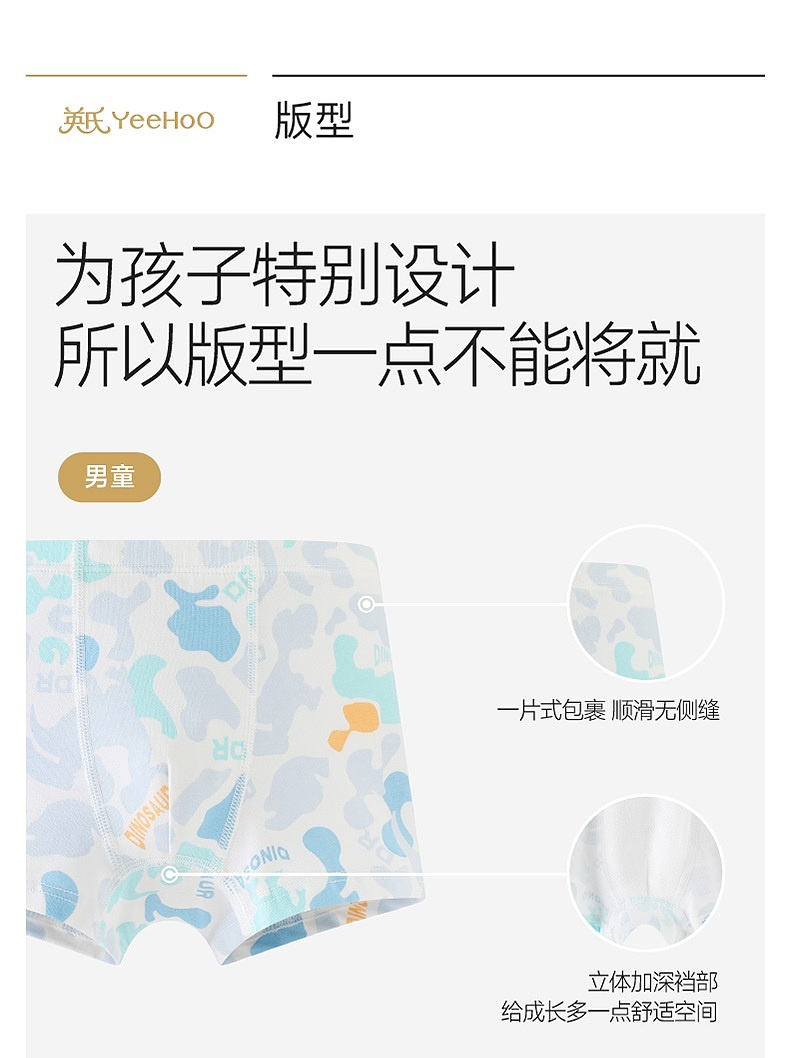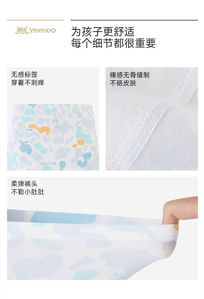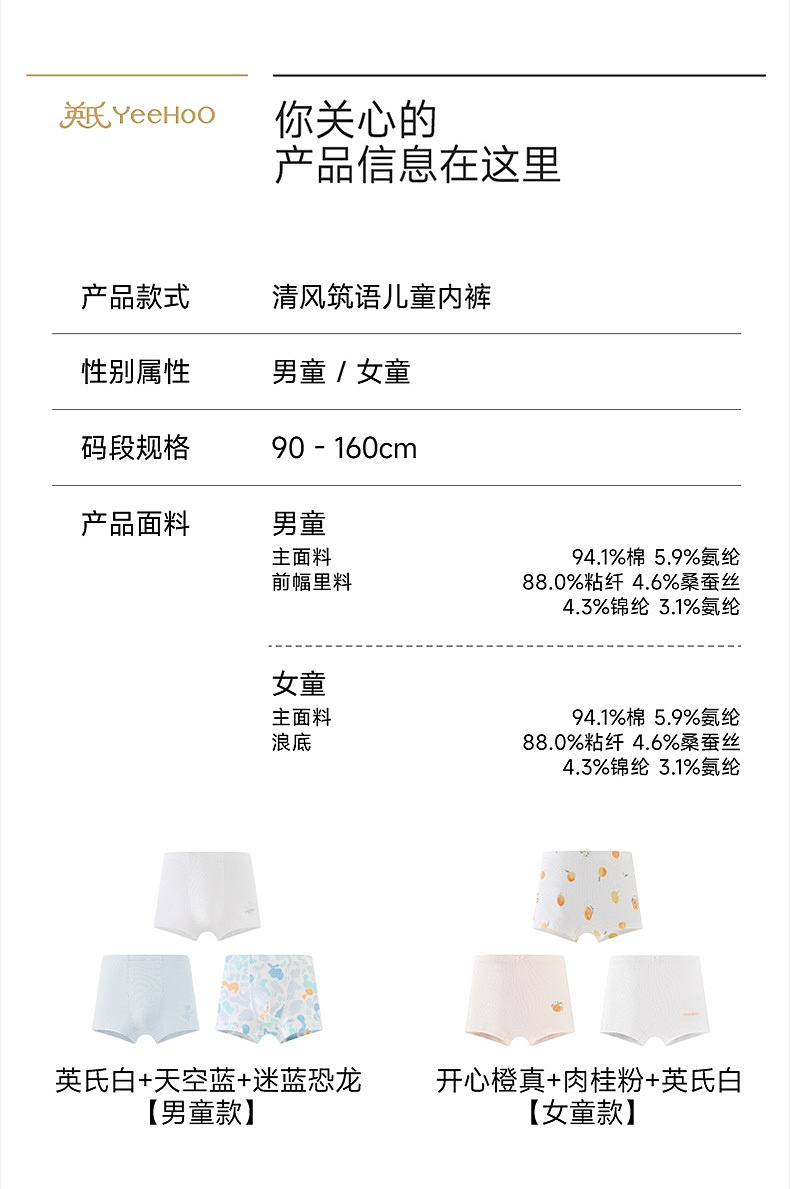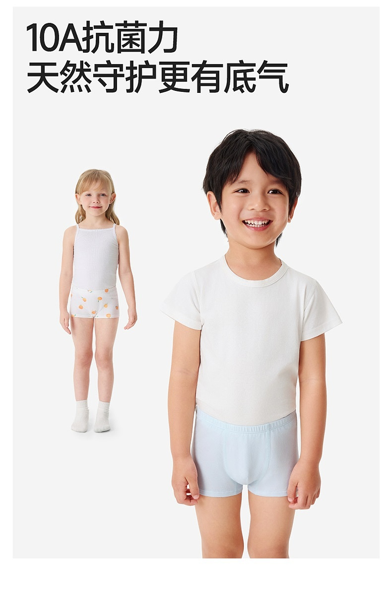 英氏儿童内裤女童男童平角内裤四季款抗菌四角裤内裤中大童3件装