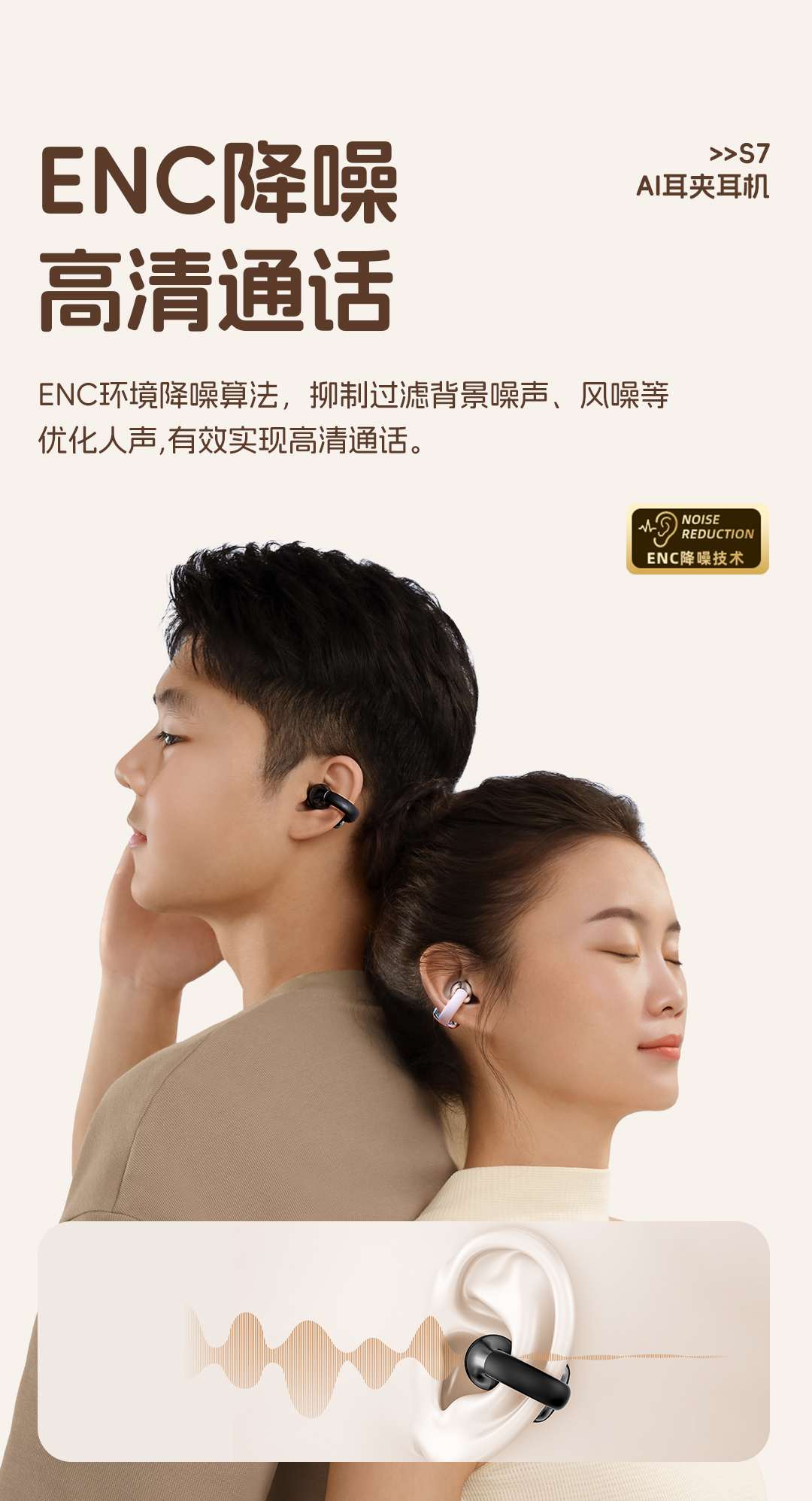 【玫瑰金预售4.18发货】Newmine纽曼 S7 AI耳夹耳机,30年国货品牌纽曼音质保证,耳夹设计不入耳,摇晃不掉,可扫码验真伪【一年质保】