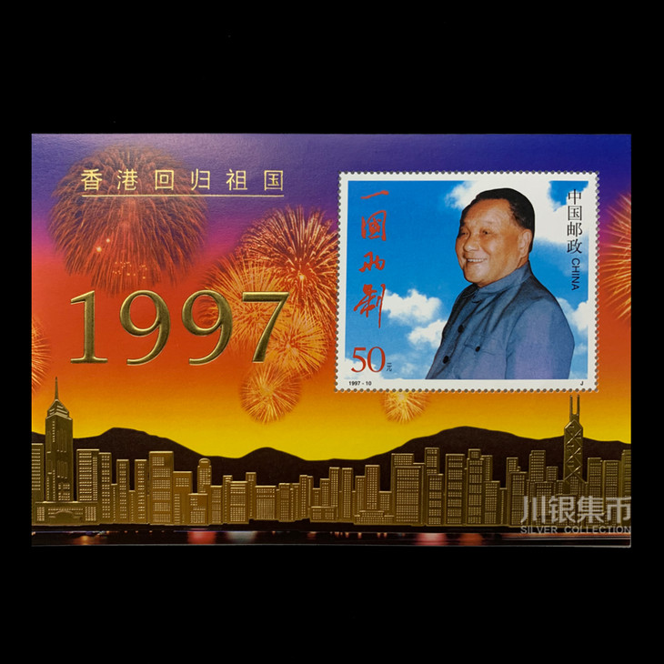 1997年7月1日,为了纪念香港回归祖国,洗雪了百年屈辱,中国邮政发行了《香港回归祖国》纪念邮票,金箔小型张1枚。