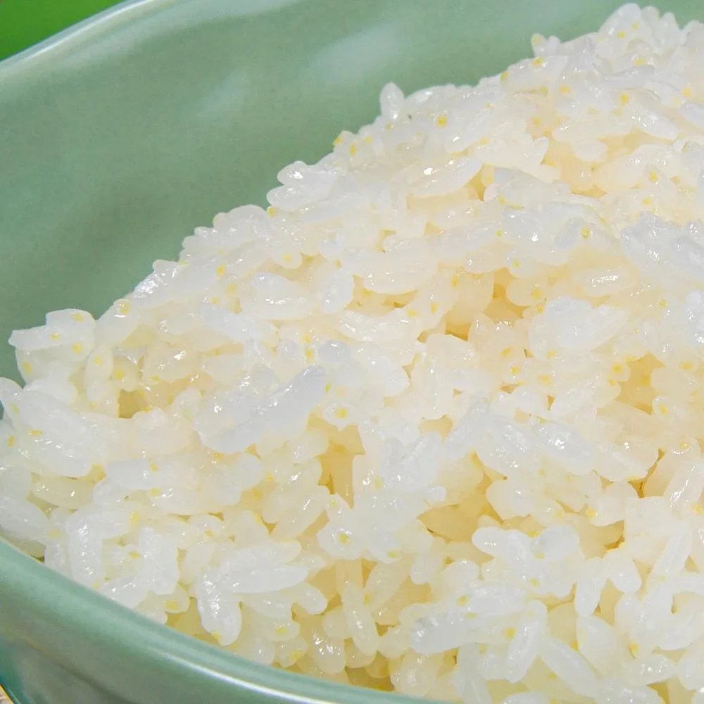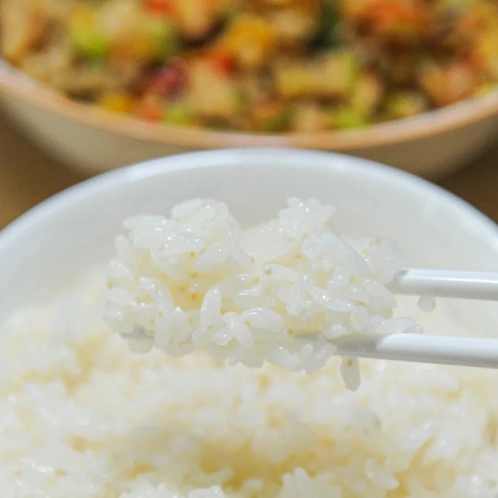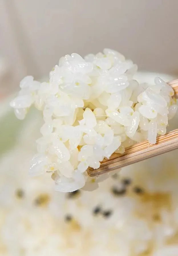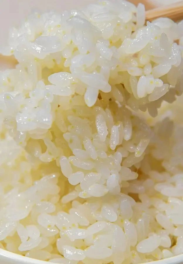 熟米有油光,因保留了90%以上大米胚芽,有淡黄色,软硬适中有弹性,嚼有回甘。