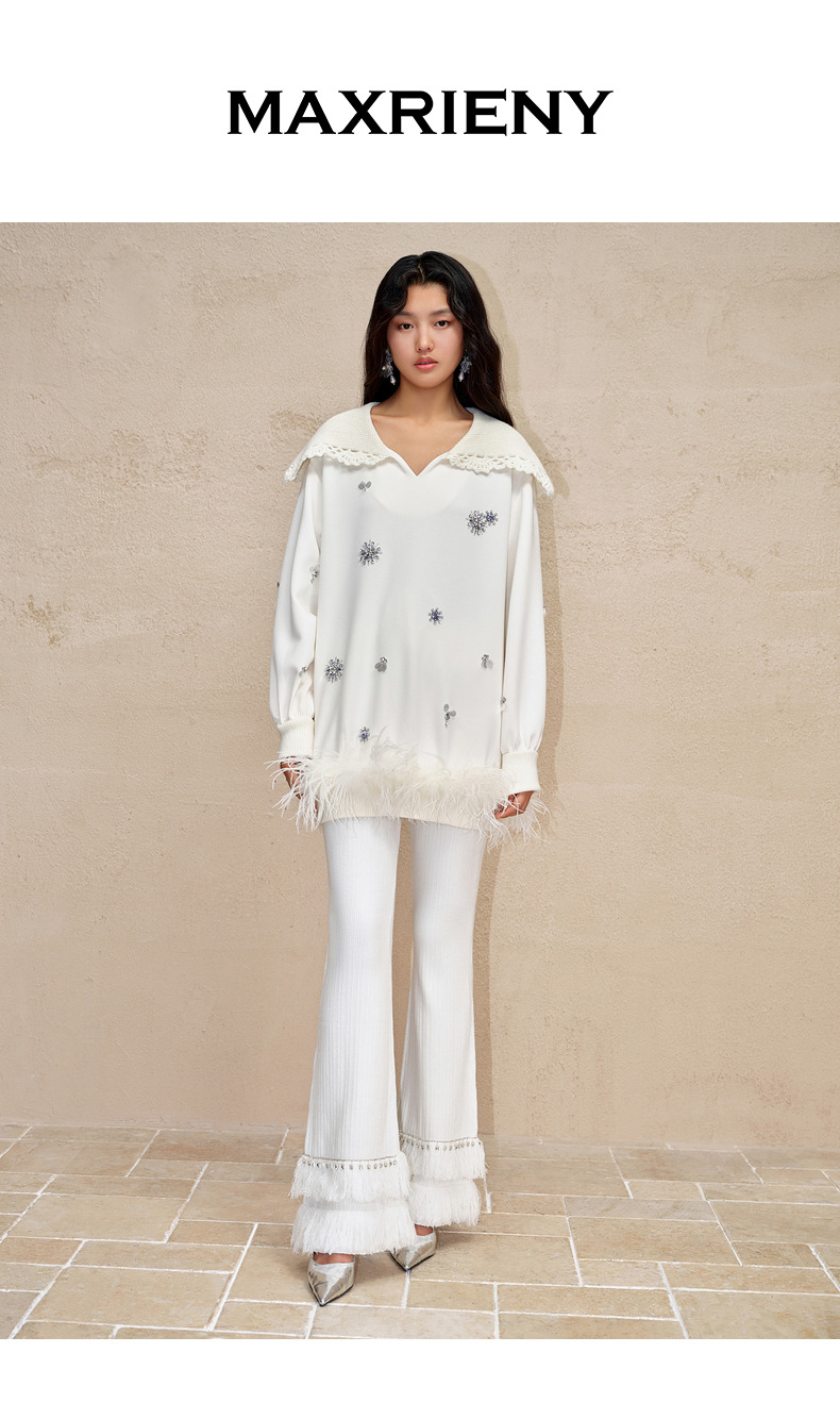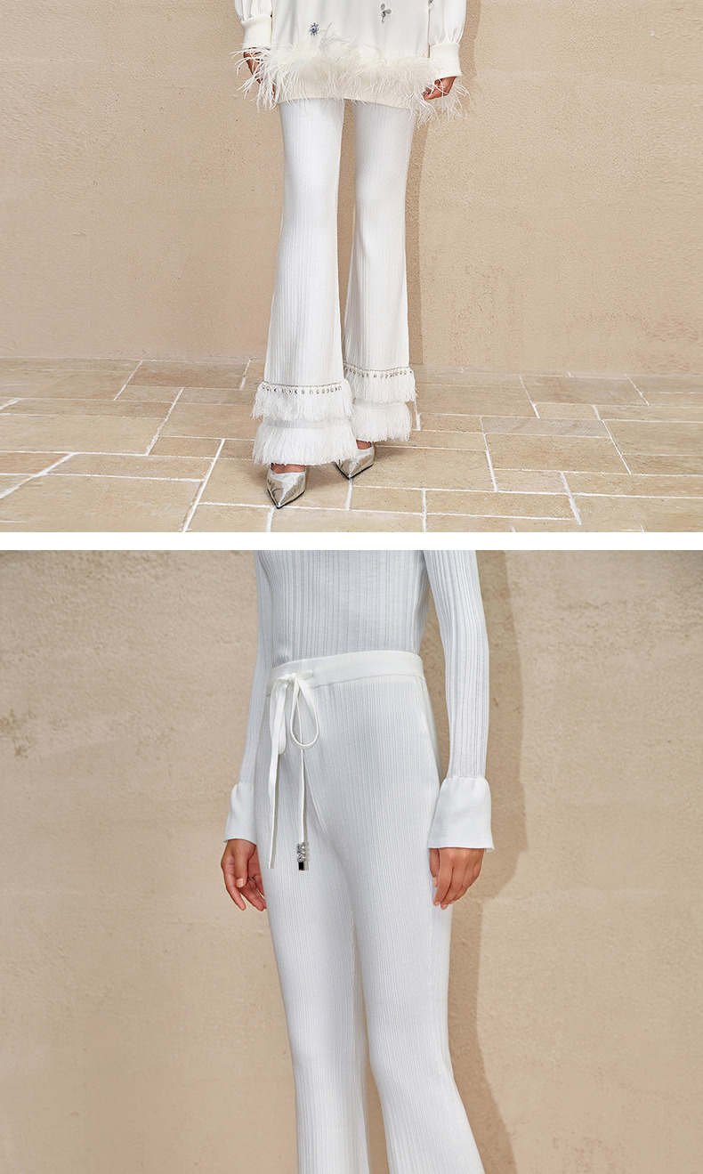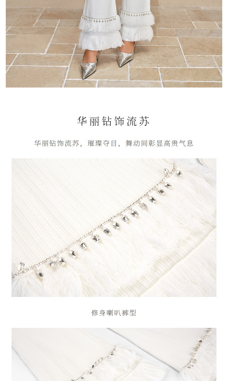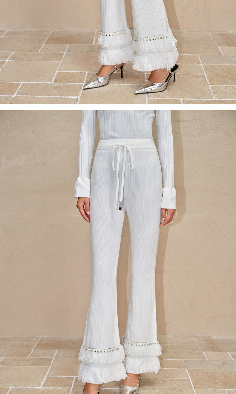 MAXRIENY*华丽钻饰流苏喇叭裤钉珠流苏针织裤(货号:MC88PA775)