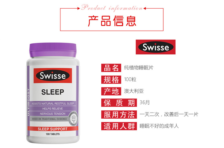 【海外直邮】Swisse 纯植物睡眠片