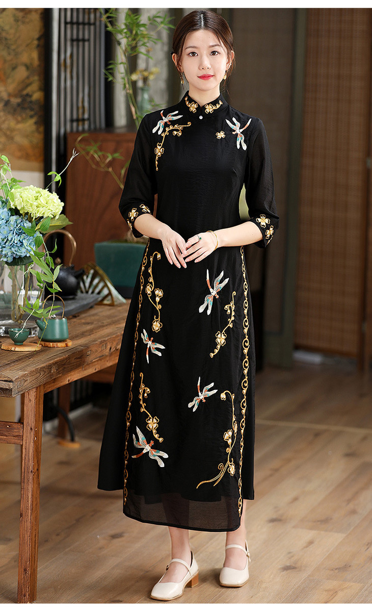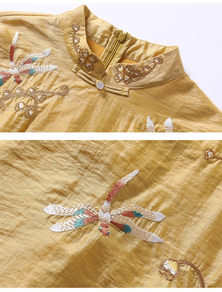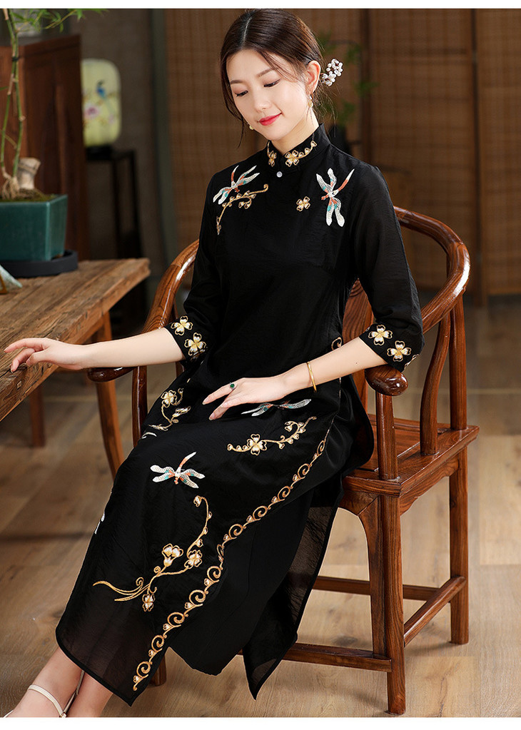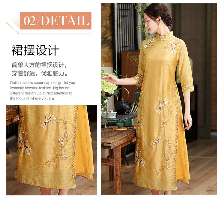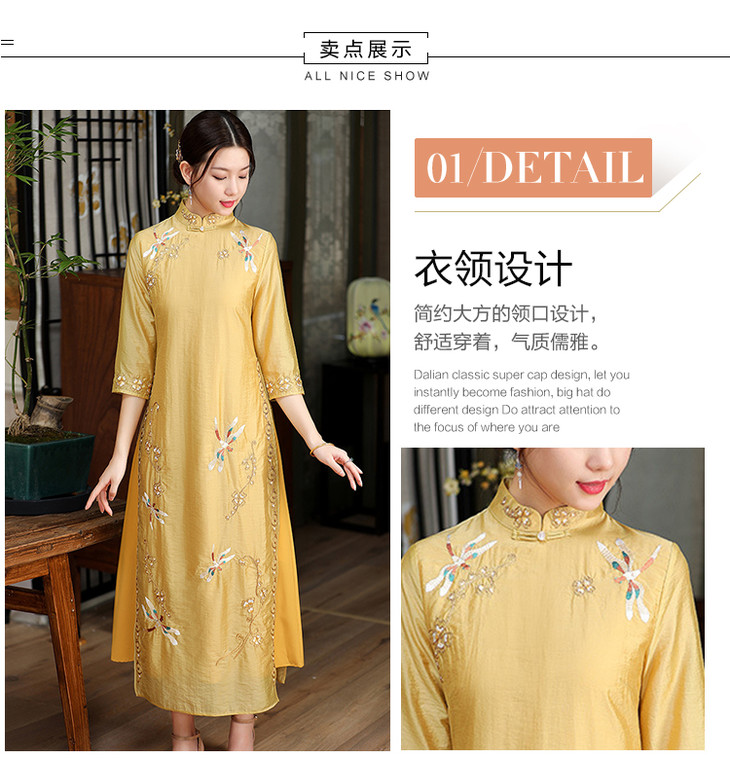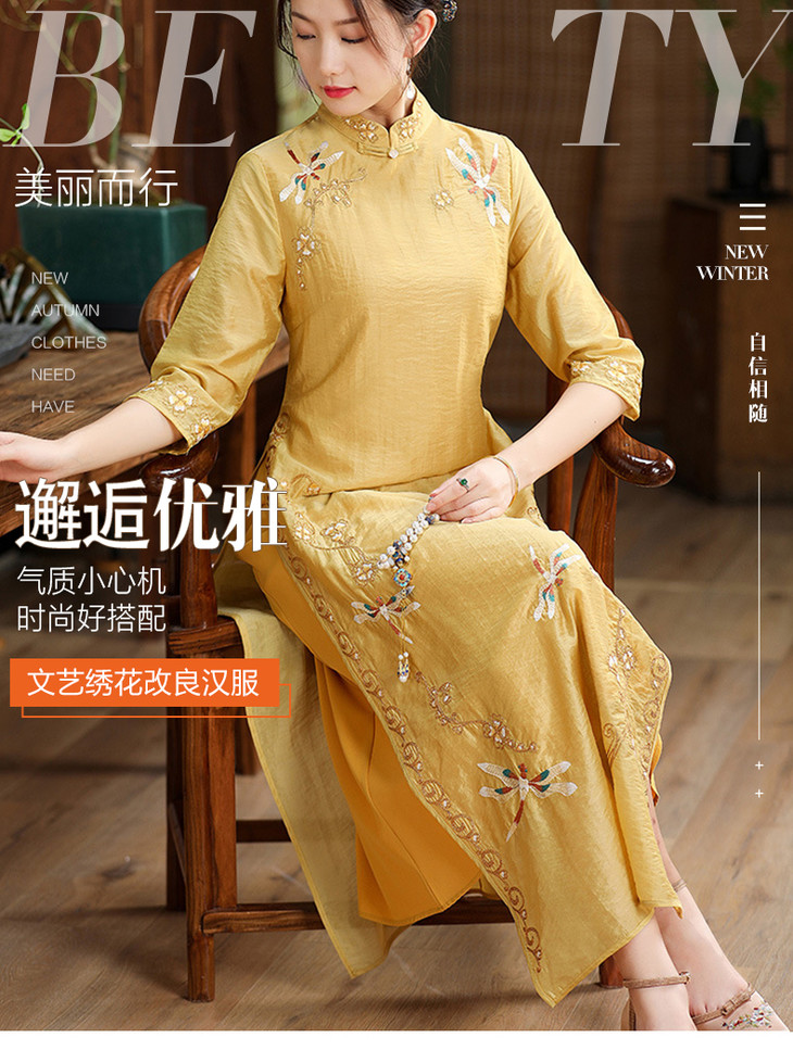 KDS2147 2021夏新款女装文艺绣花禅服茶艺服连衣裙开叉改良汉服