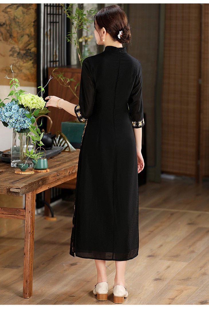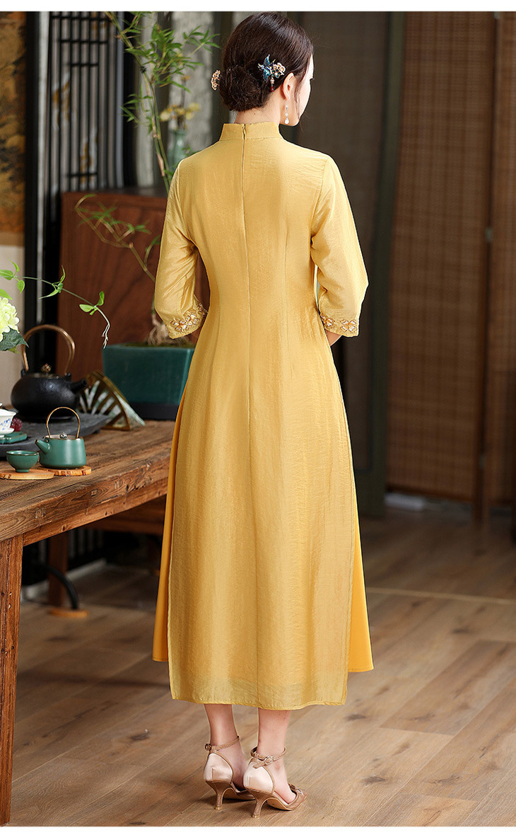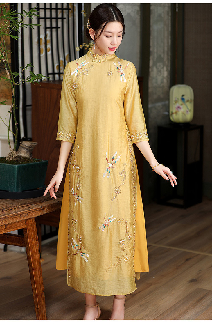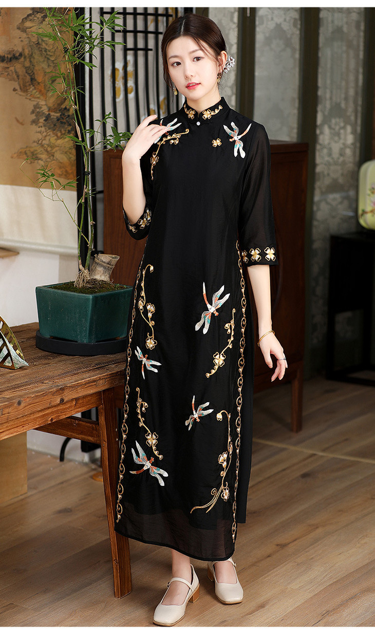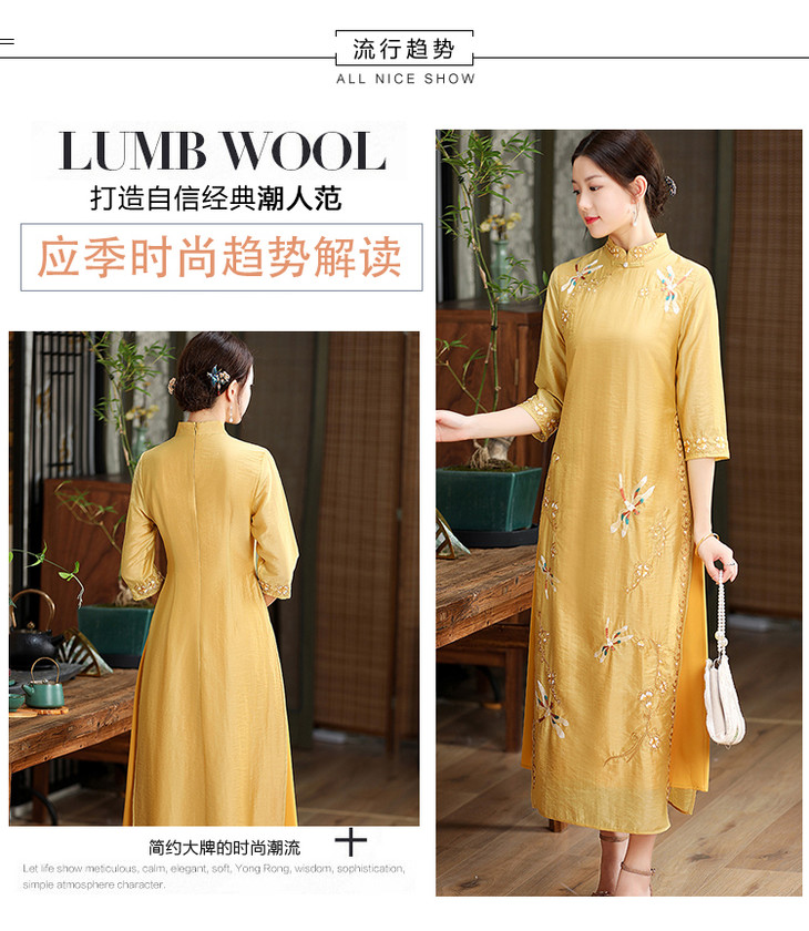 KDS2147 2021夏新款女装文艺绣花禅服茶艺服连衣裙开叉改良汉服