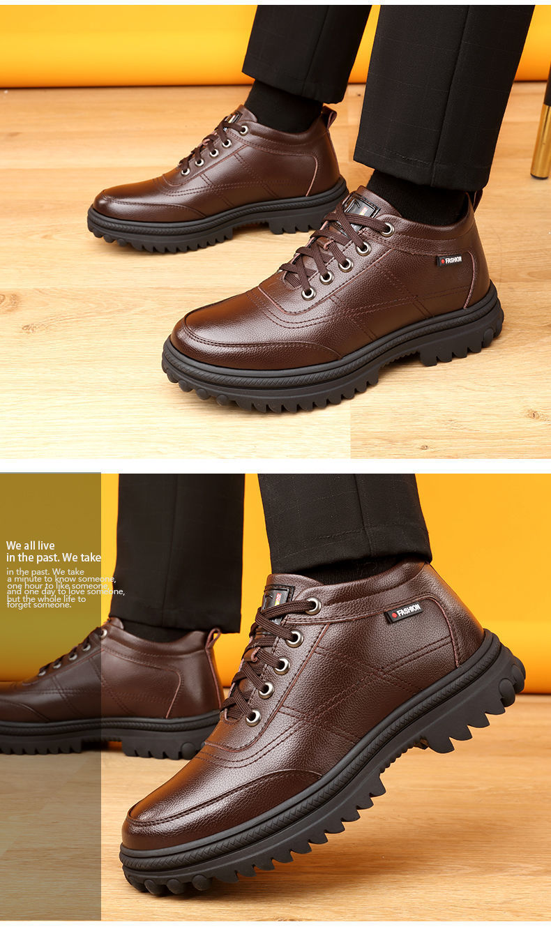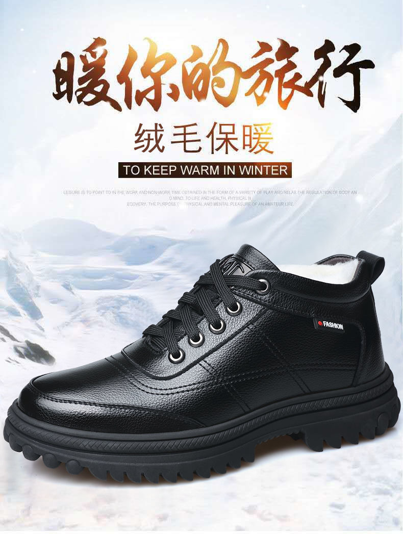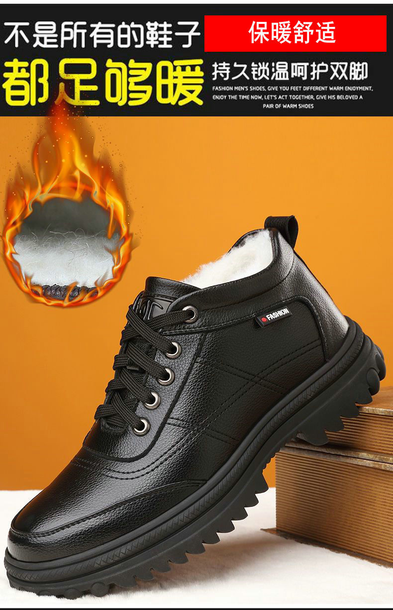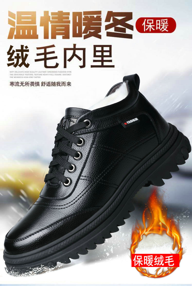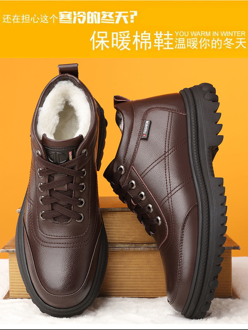 【冬季保暖棉鞋男】加绒加厚套脚男士棉皮鞋 中老年防滑 老人爸爸鞋