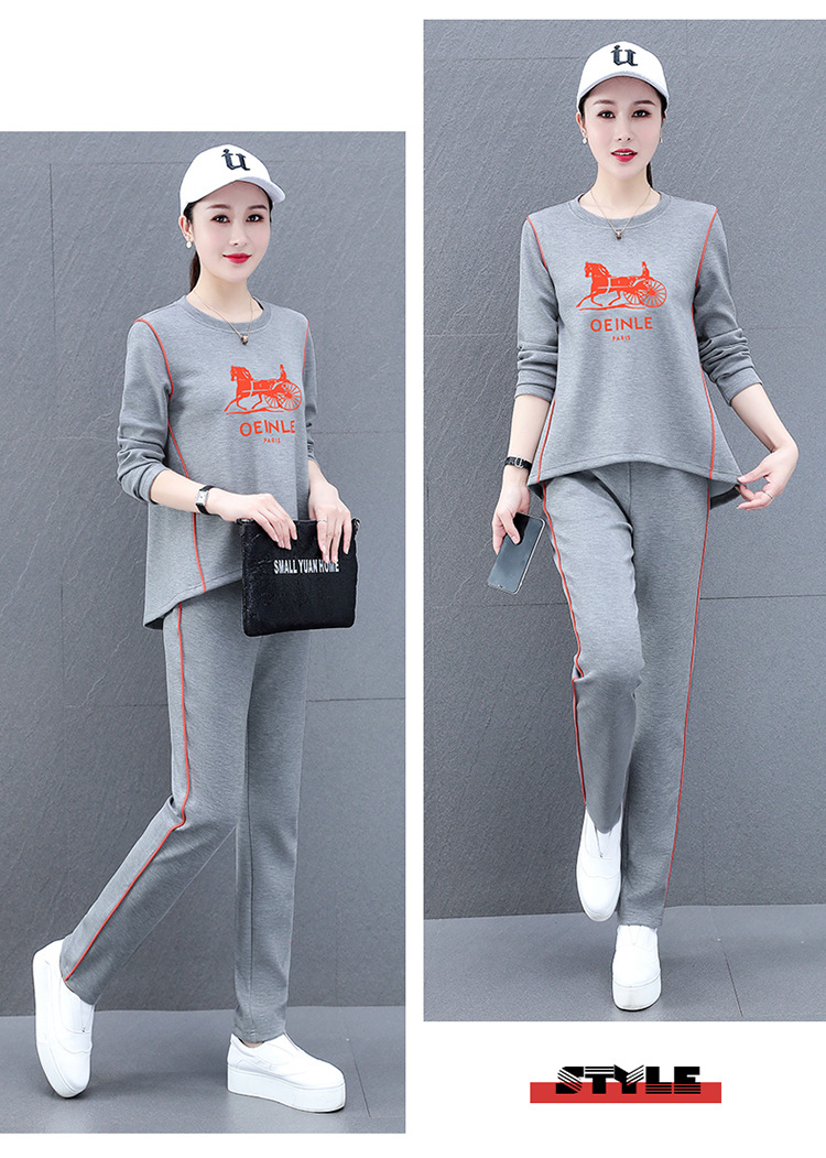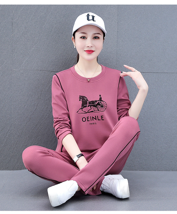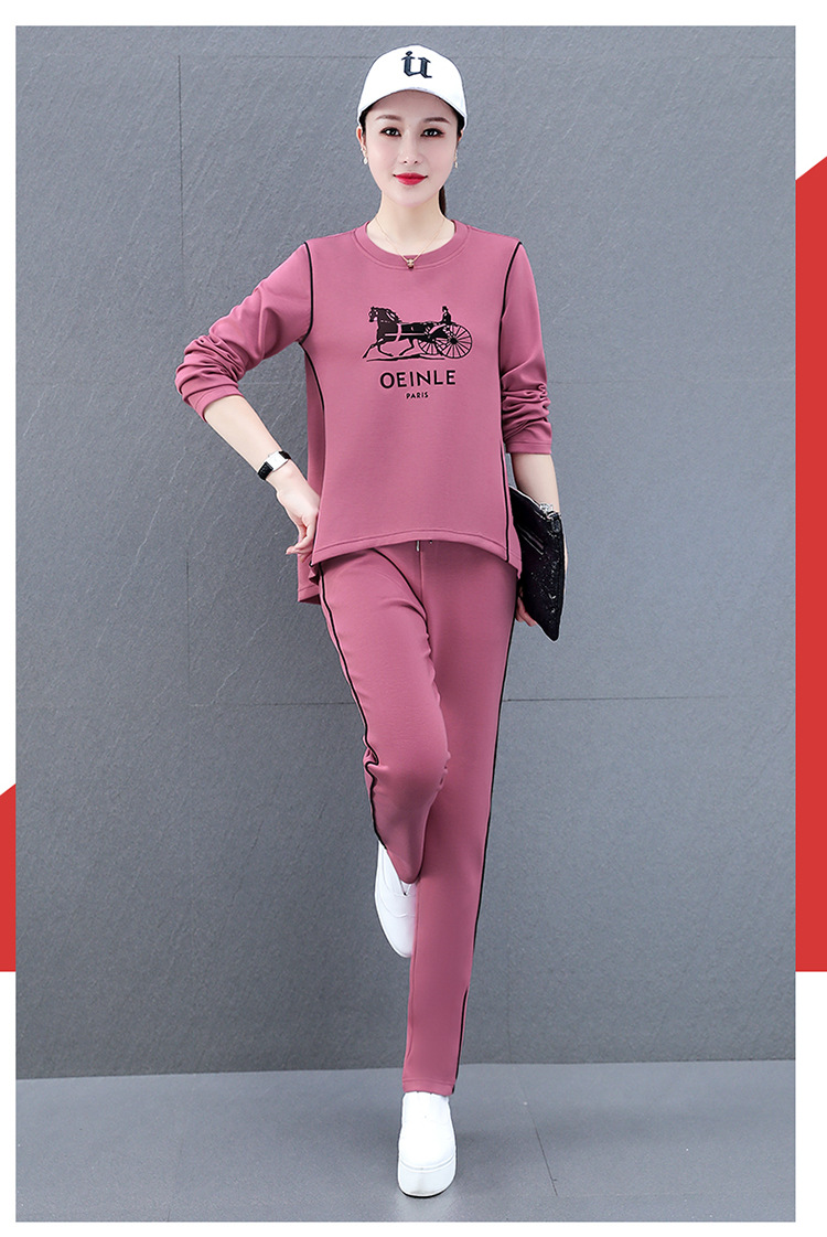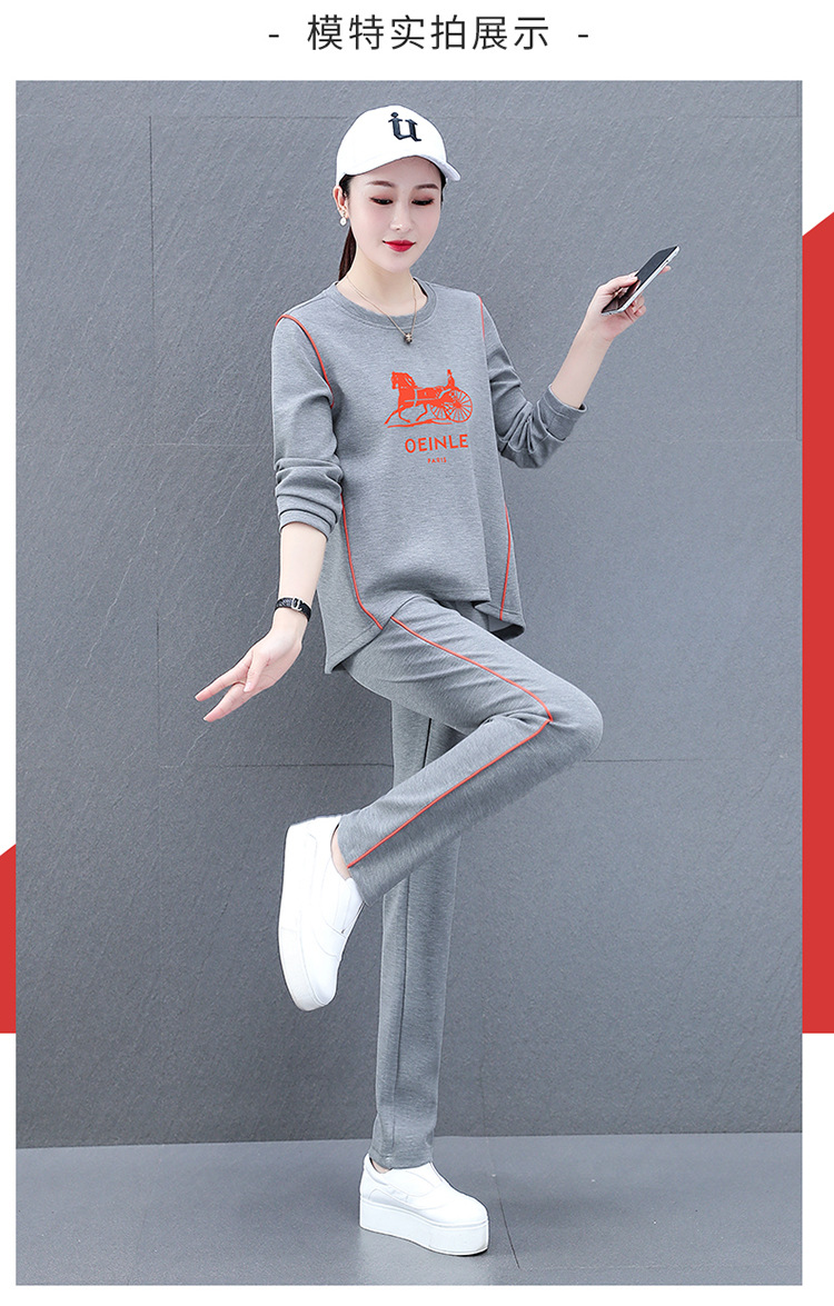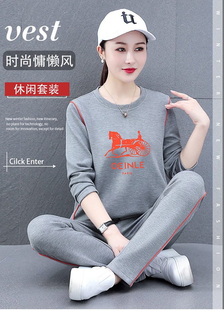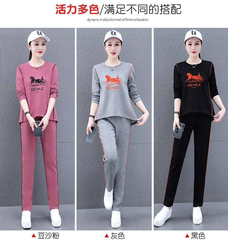 休闲卫衣套装女春秋2021新款韩版宽松大码洋气减龄妈妈运动两件套 TR-XX2365