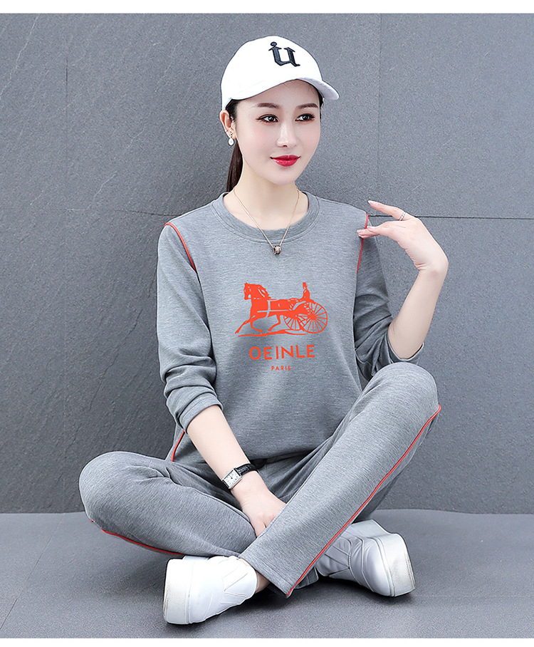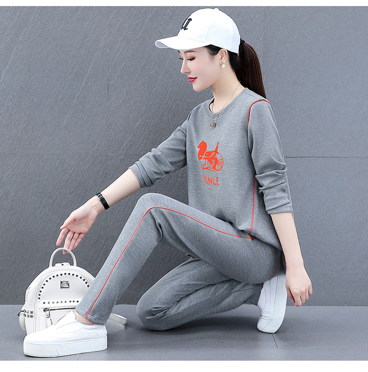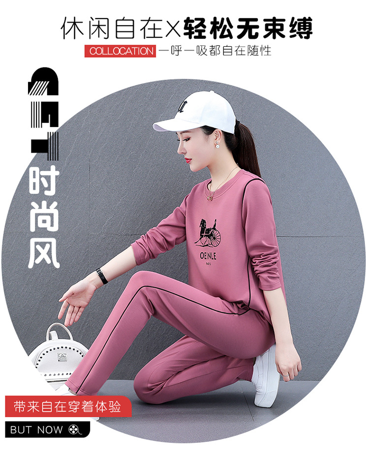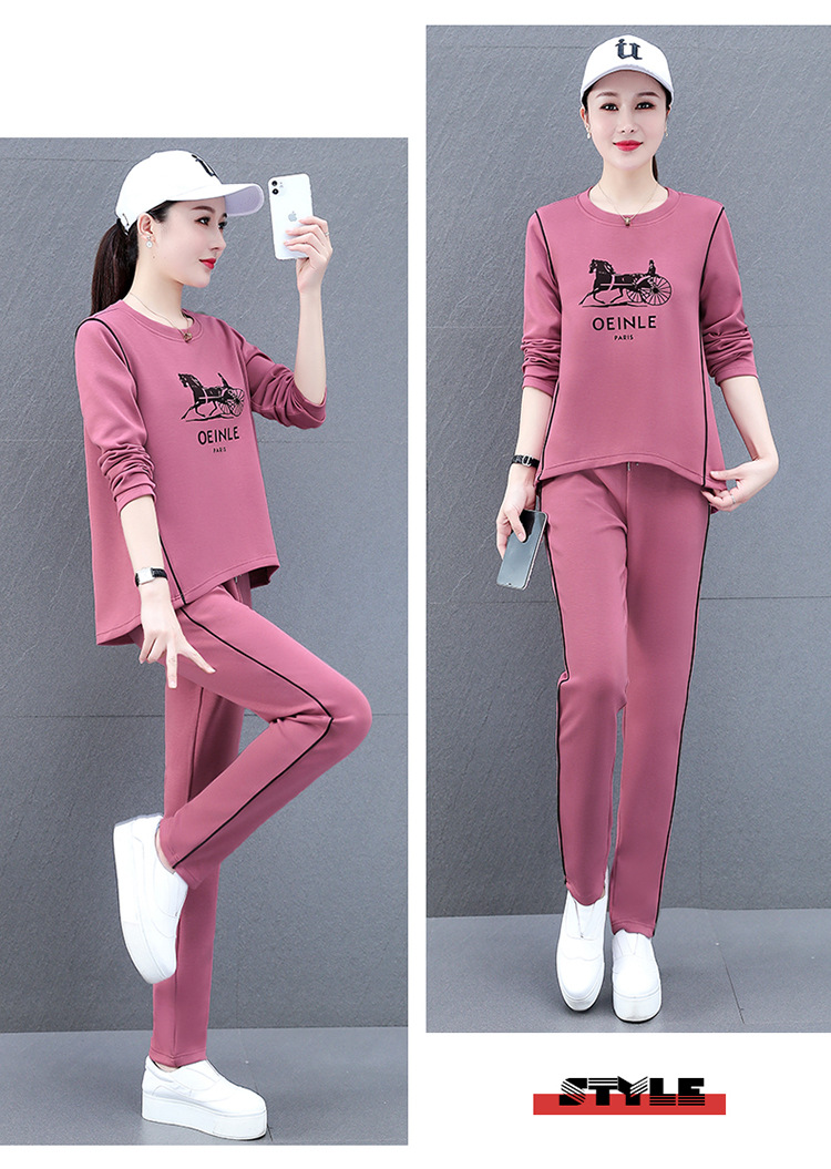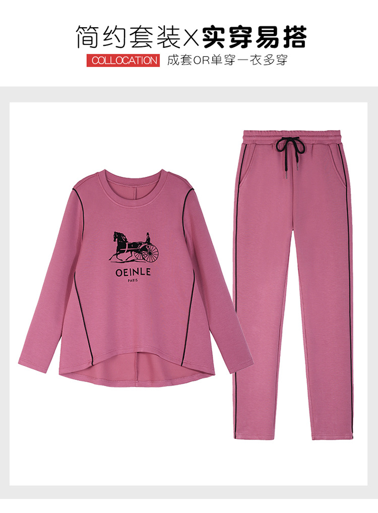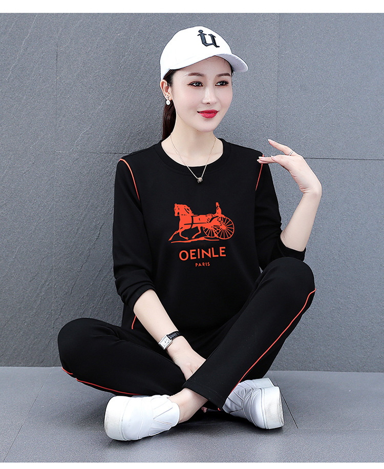 休闲卫衣套装女春秋2021新款韩版宽松大码洋气减龄妈妈运动两件套 TR-XX2365
