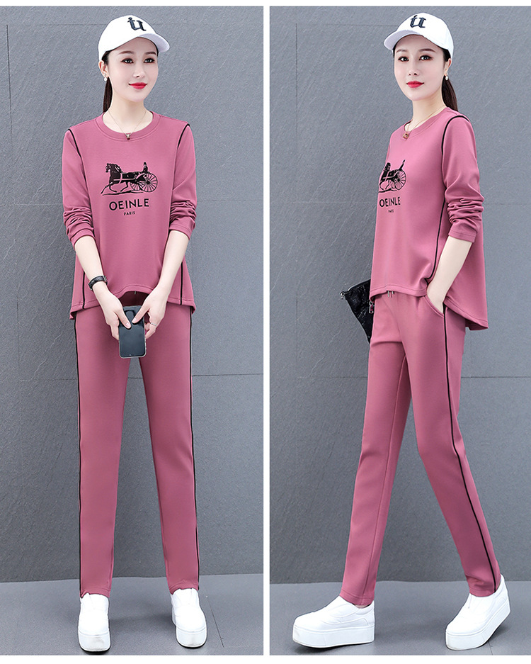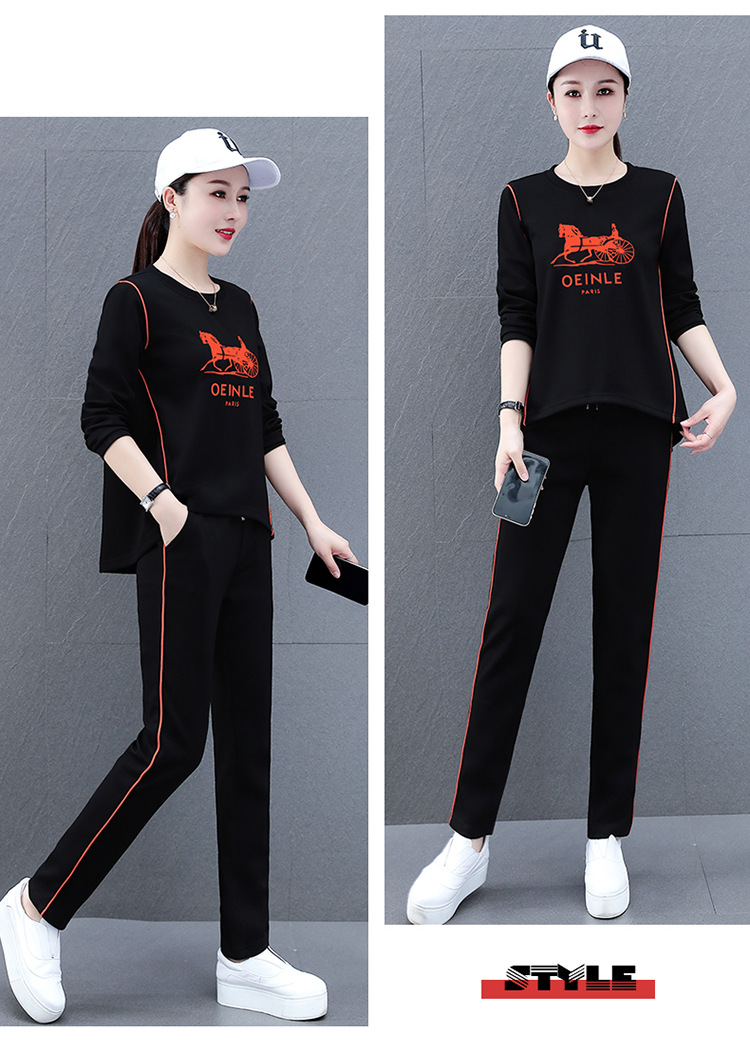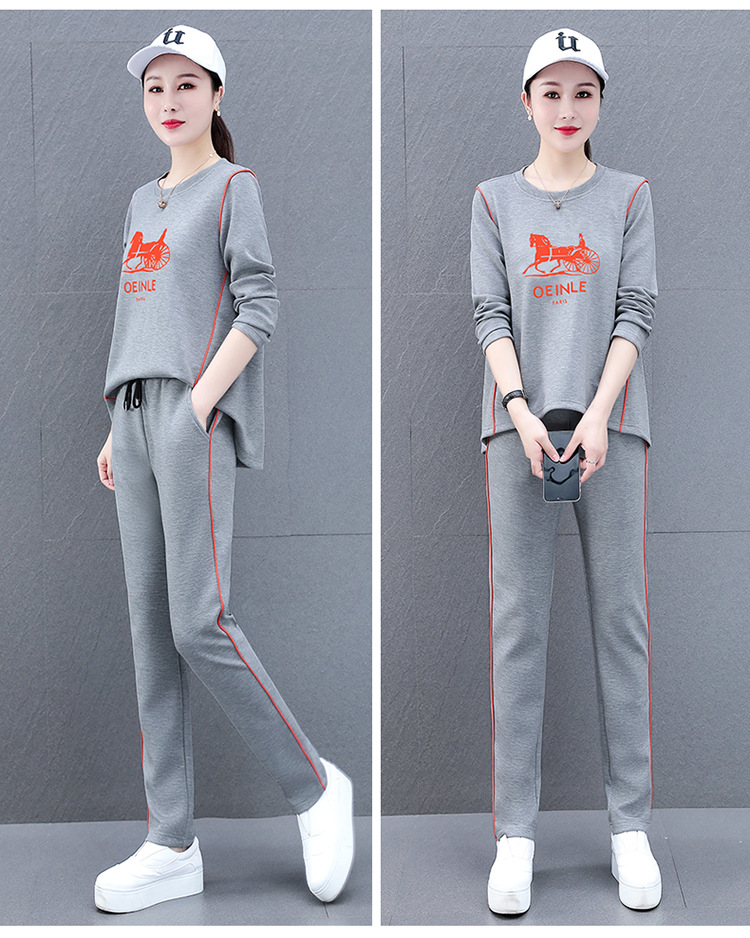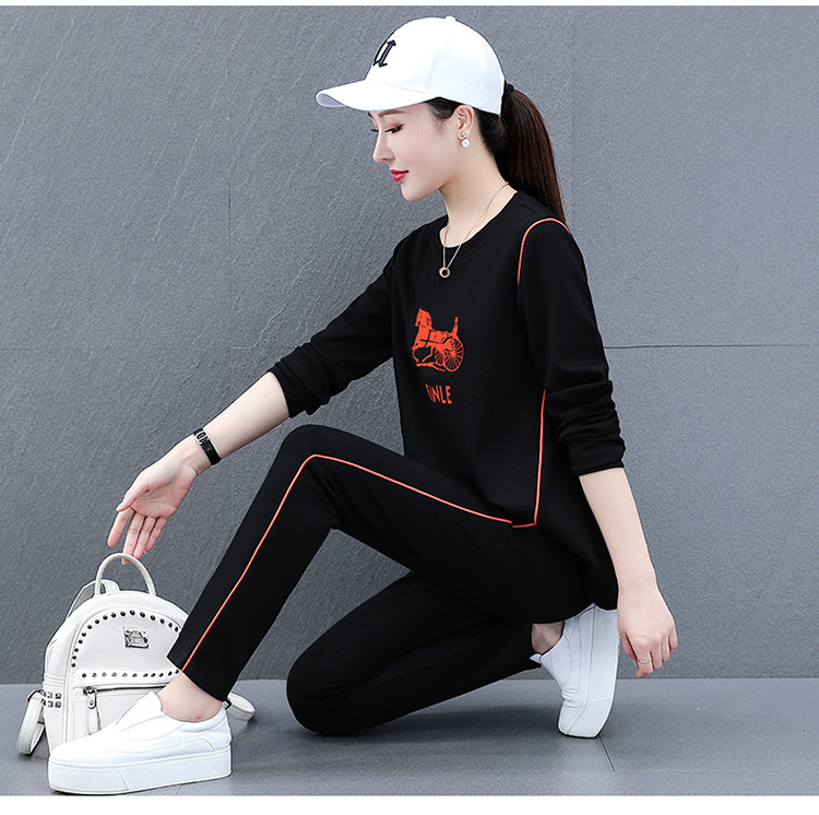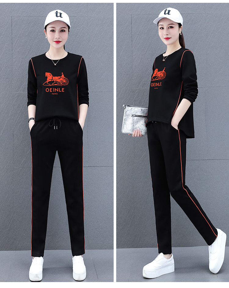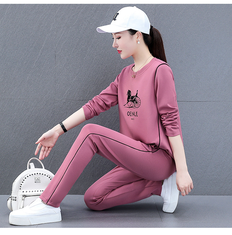 休闲卫衣套装女春秋2021新款韩版宽松大码洋气减龄妈妈运动两件套 TR-XX2365