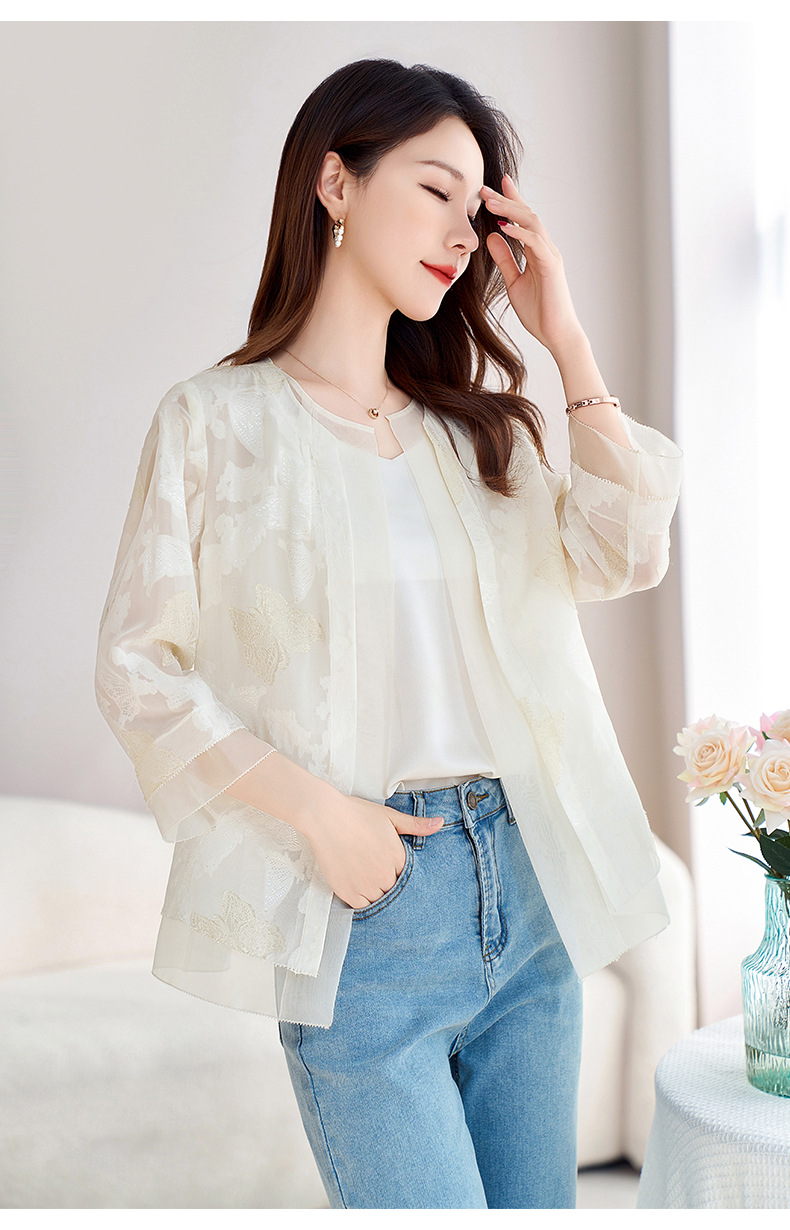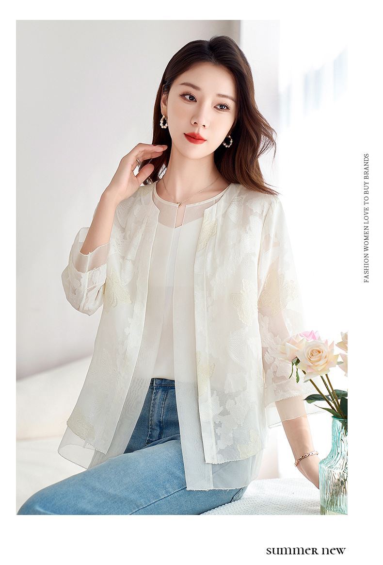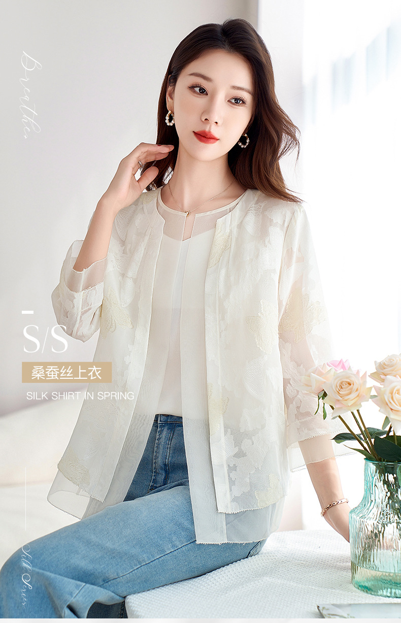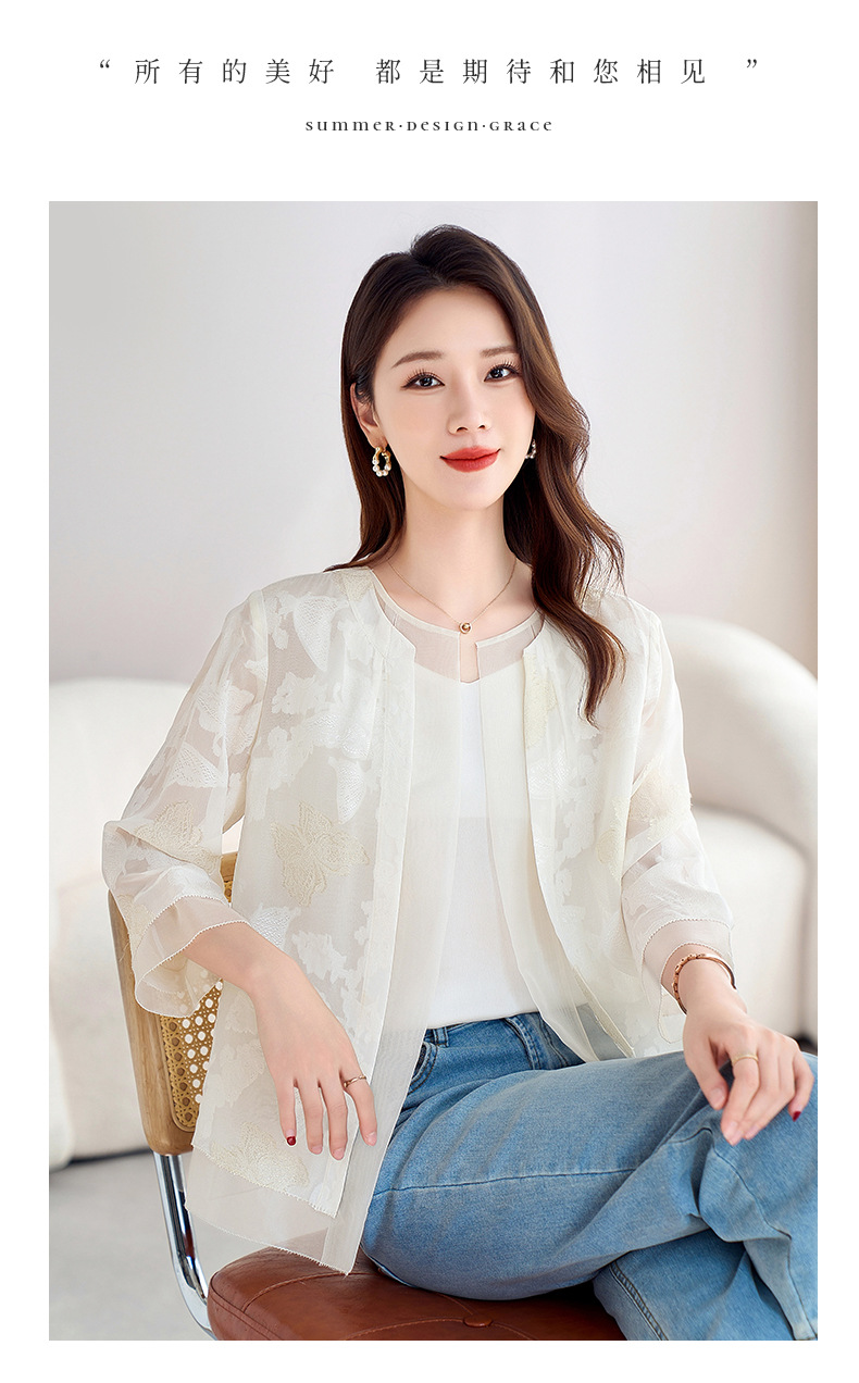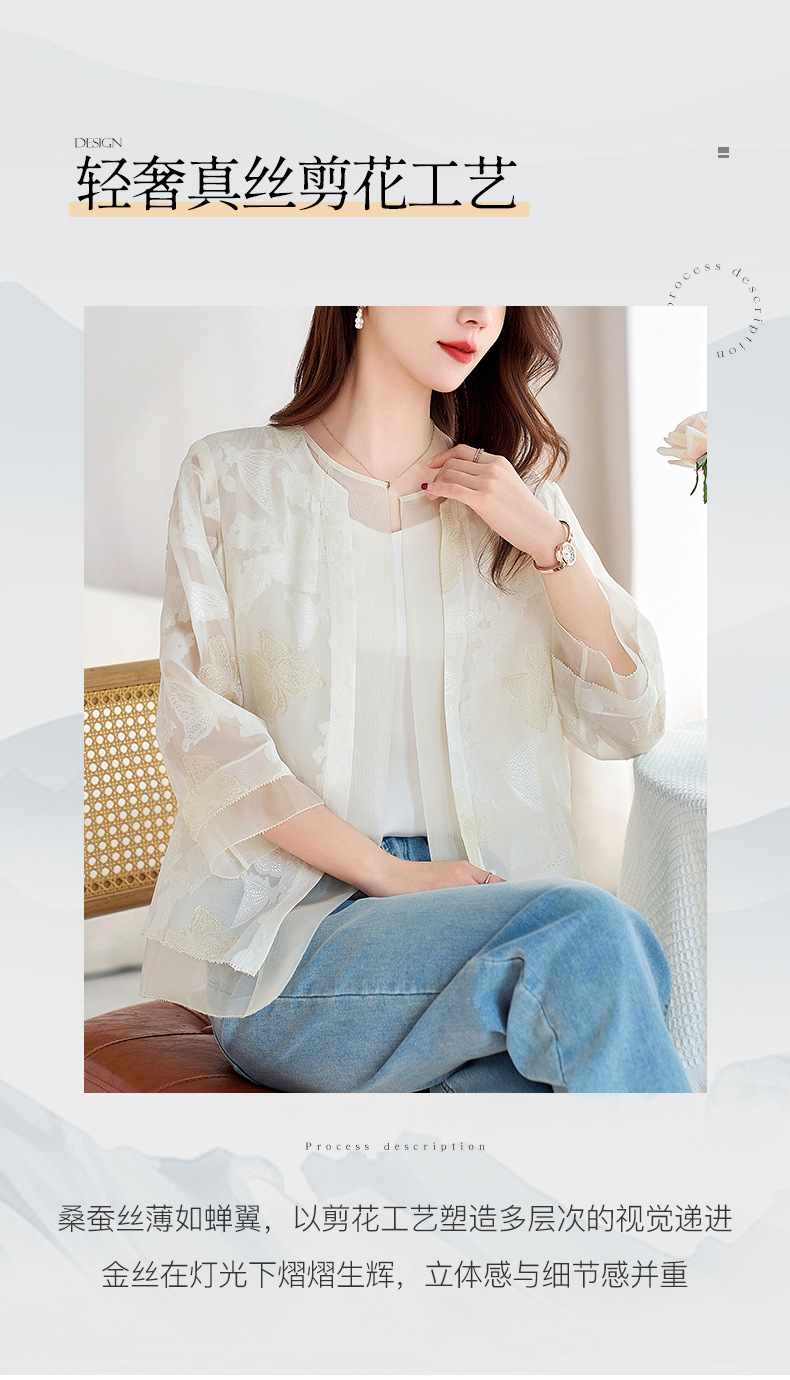 丁摩 非遗原创轻奢真丝乔其剪花开衫女夏轻薄防晒桑蚕丝休闲外套女5ZF-8912