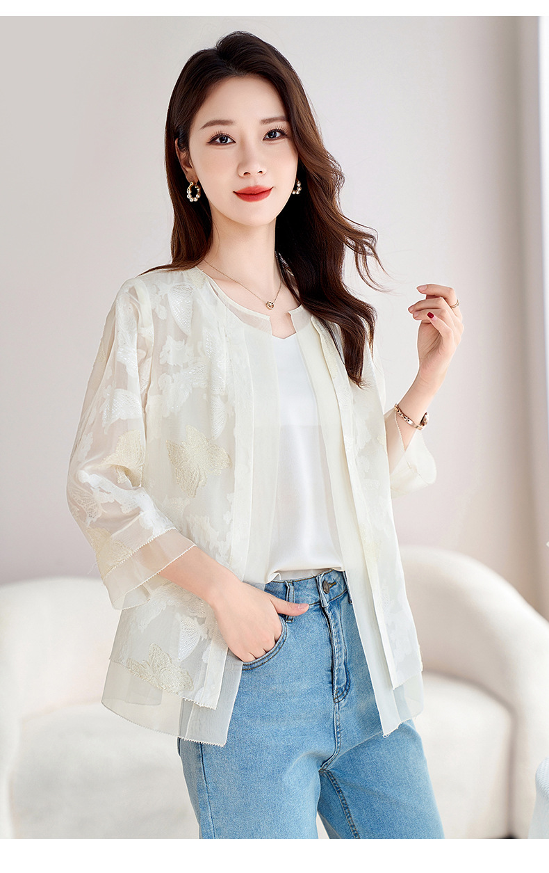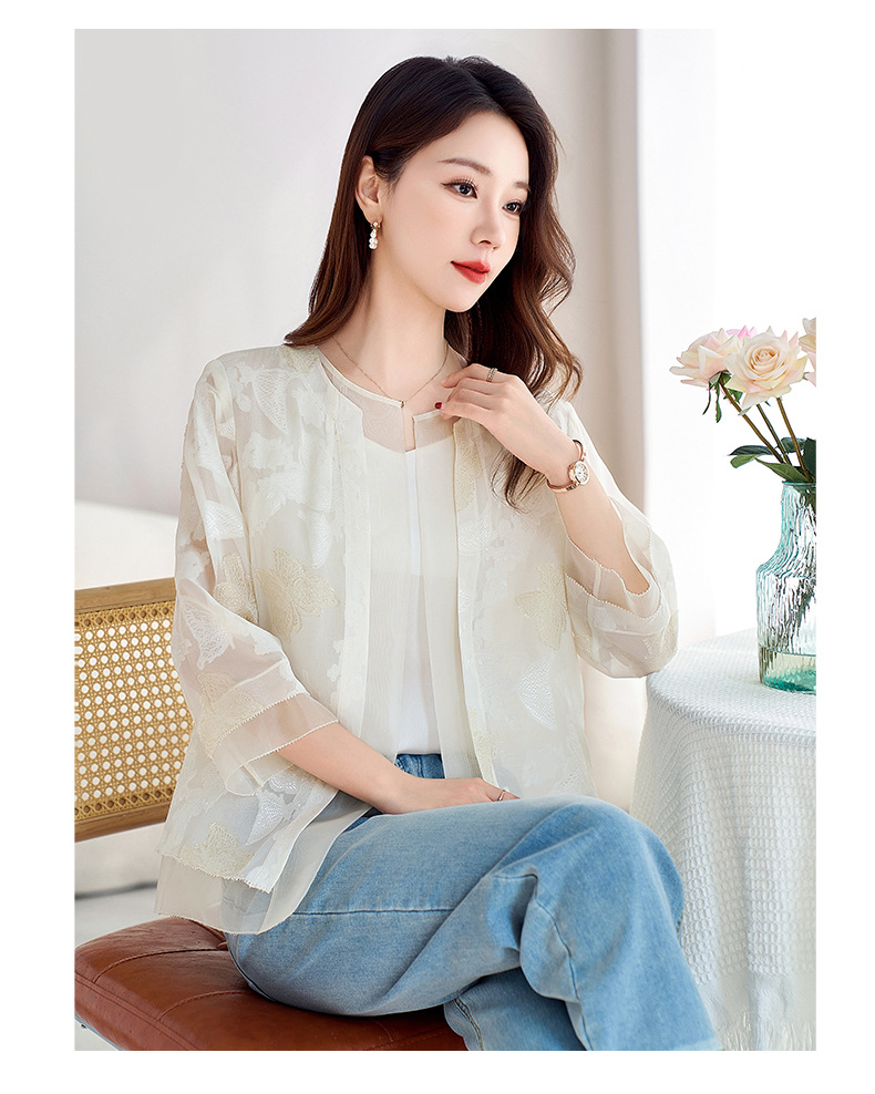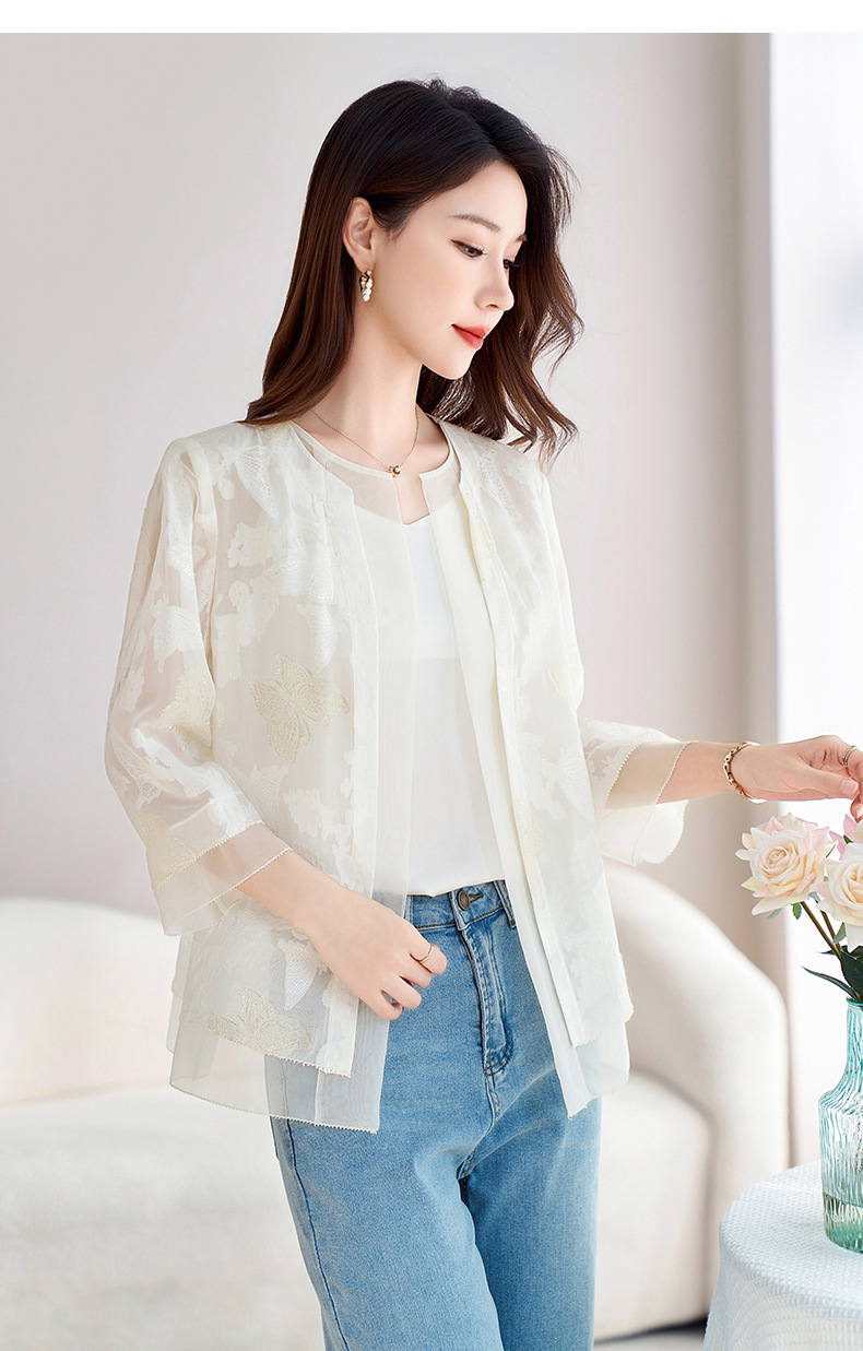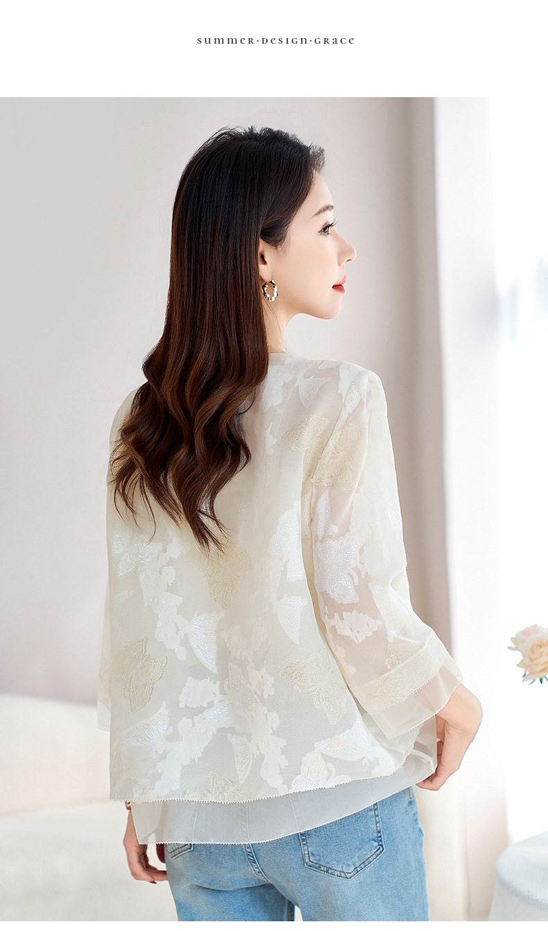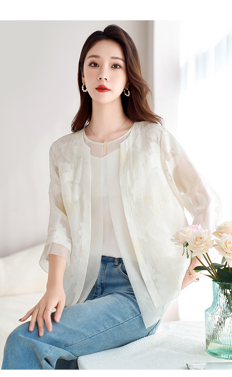丁摩 非遗原创轻奢真丝乔其剪花开衫女夏轻薄防晒桑蚕丝休闲外套女5ZF-8912