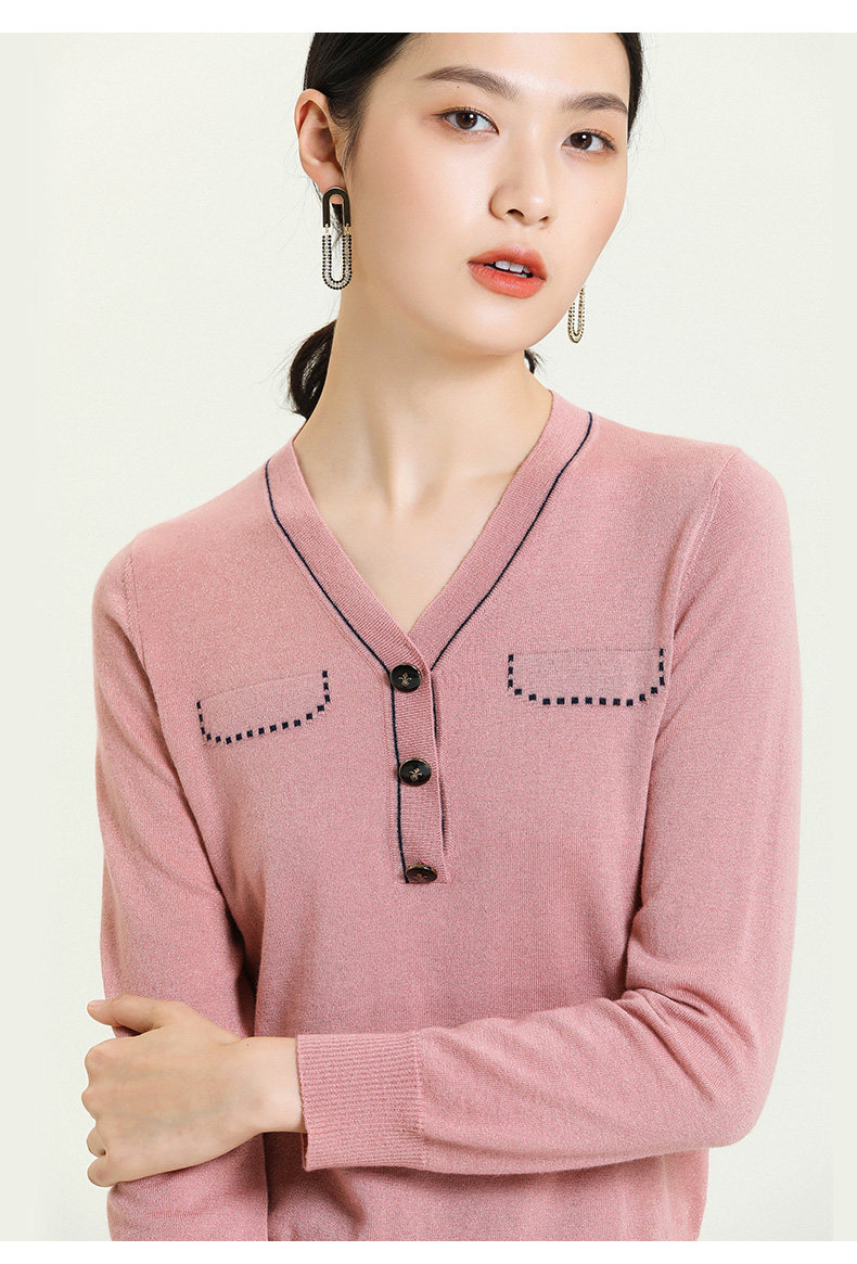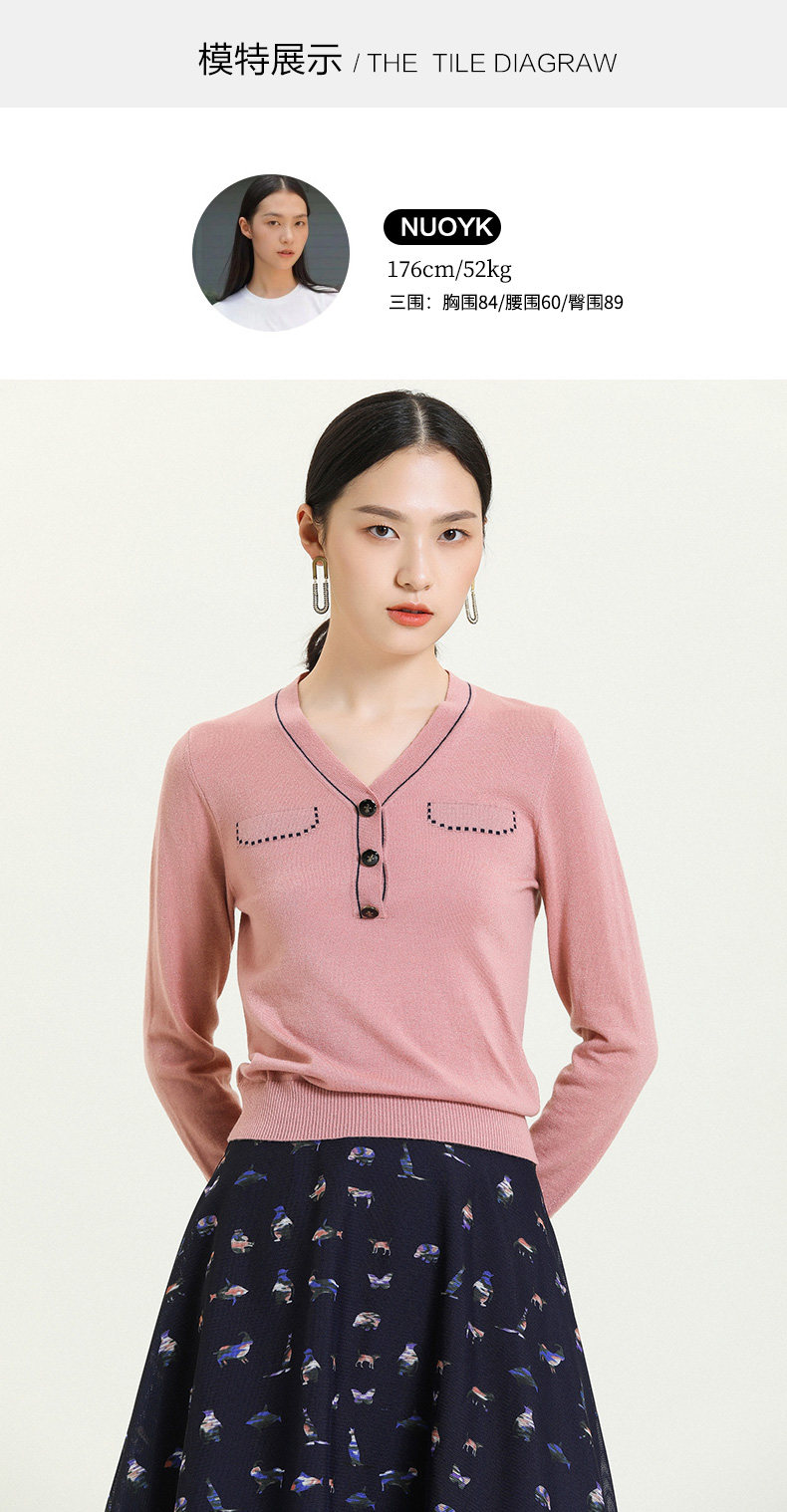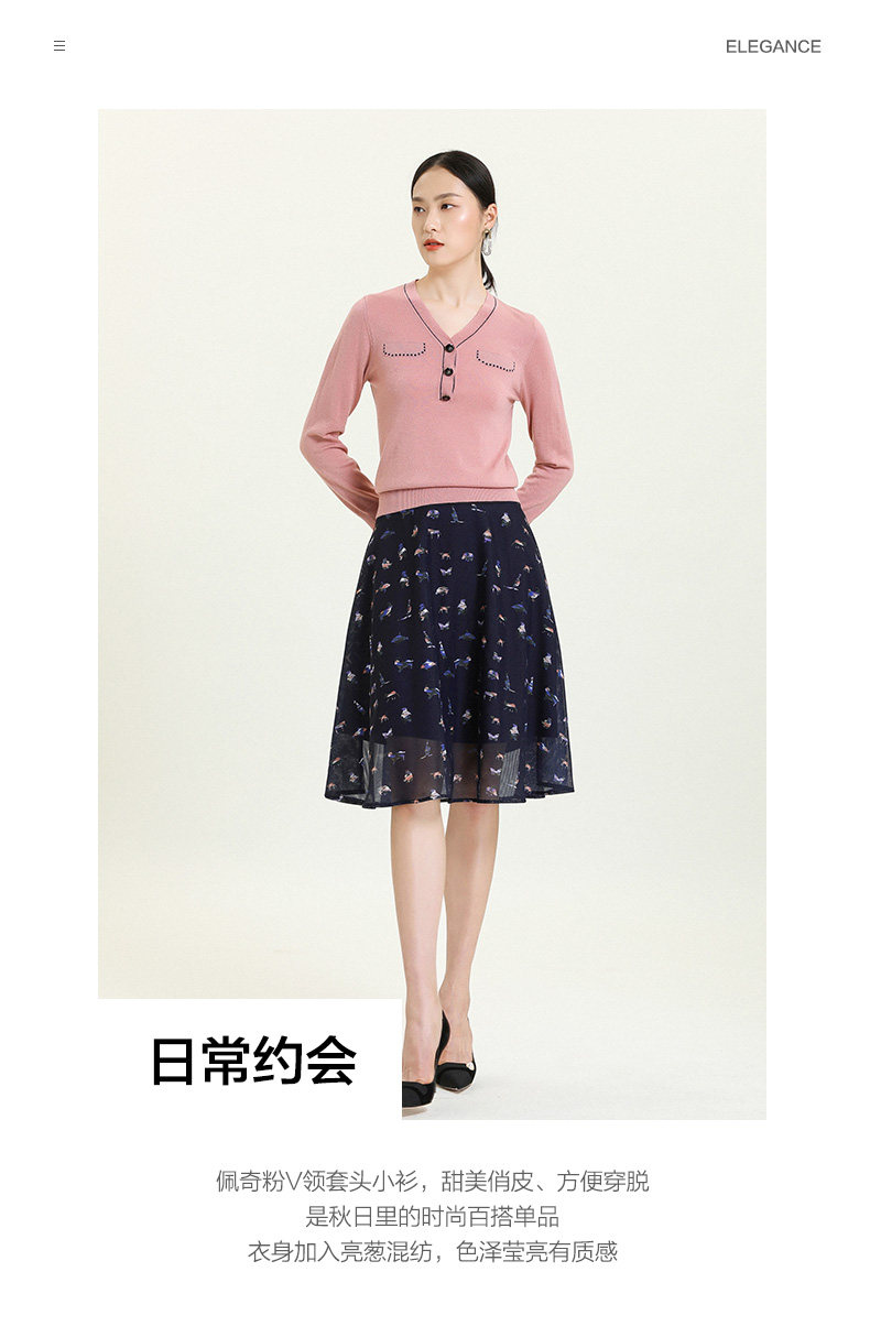 乔万尼秋新款针织V领显瘦小衫百搭舒适休闲气质优雅套头上衣ES3M603
