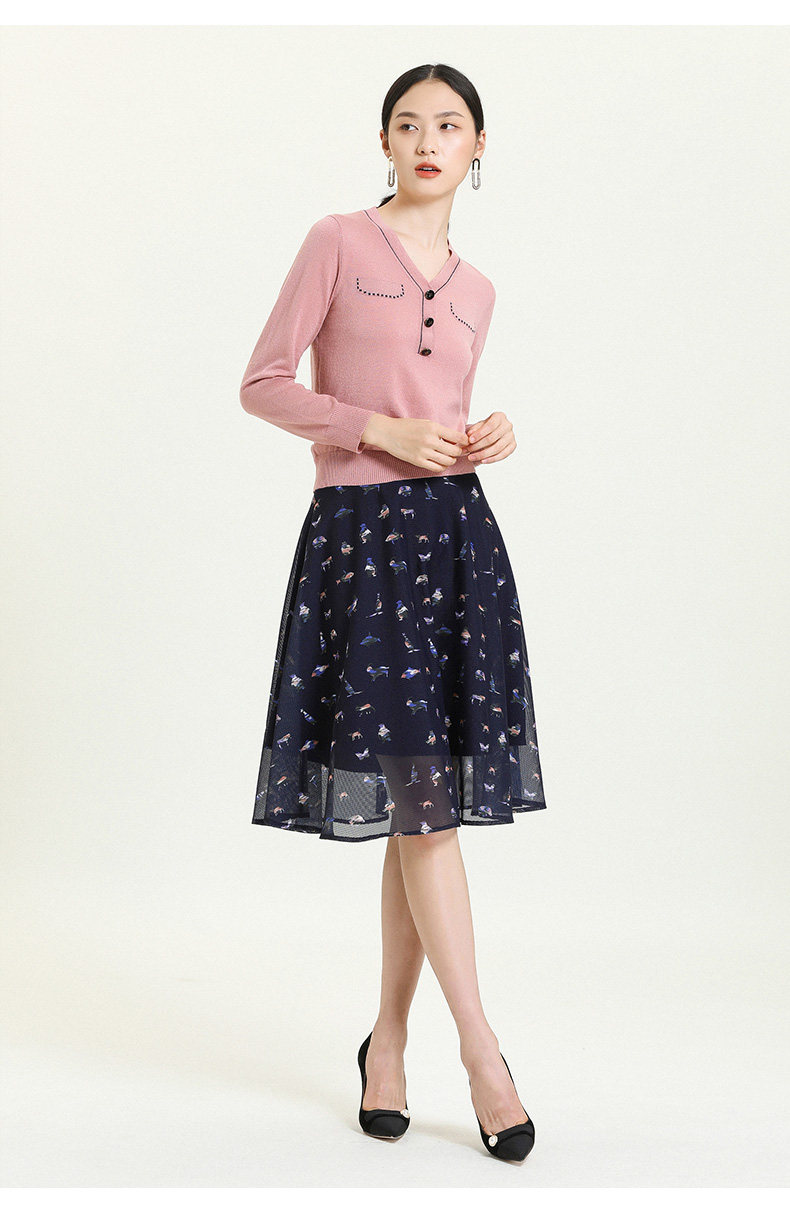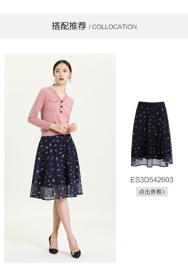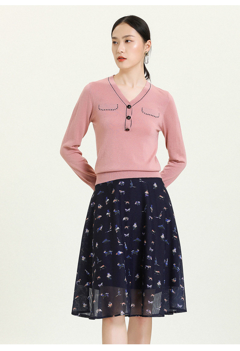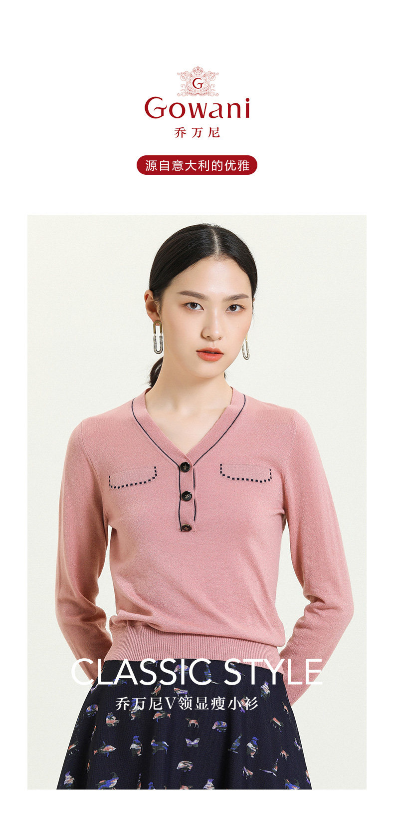 乔万尼秋新款针织V领显瘦小衫百搭舒适休闲气质优雅套头上衣ES3M603