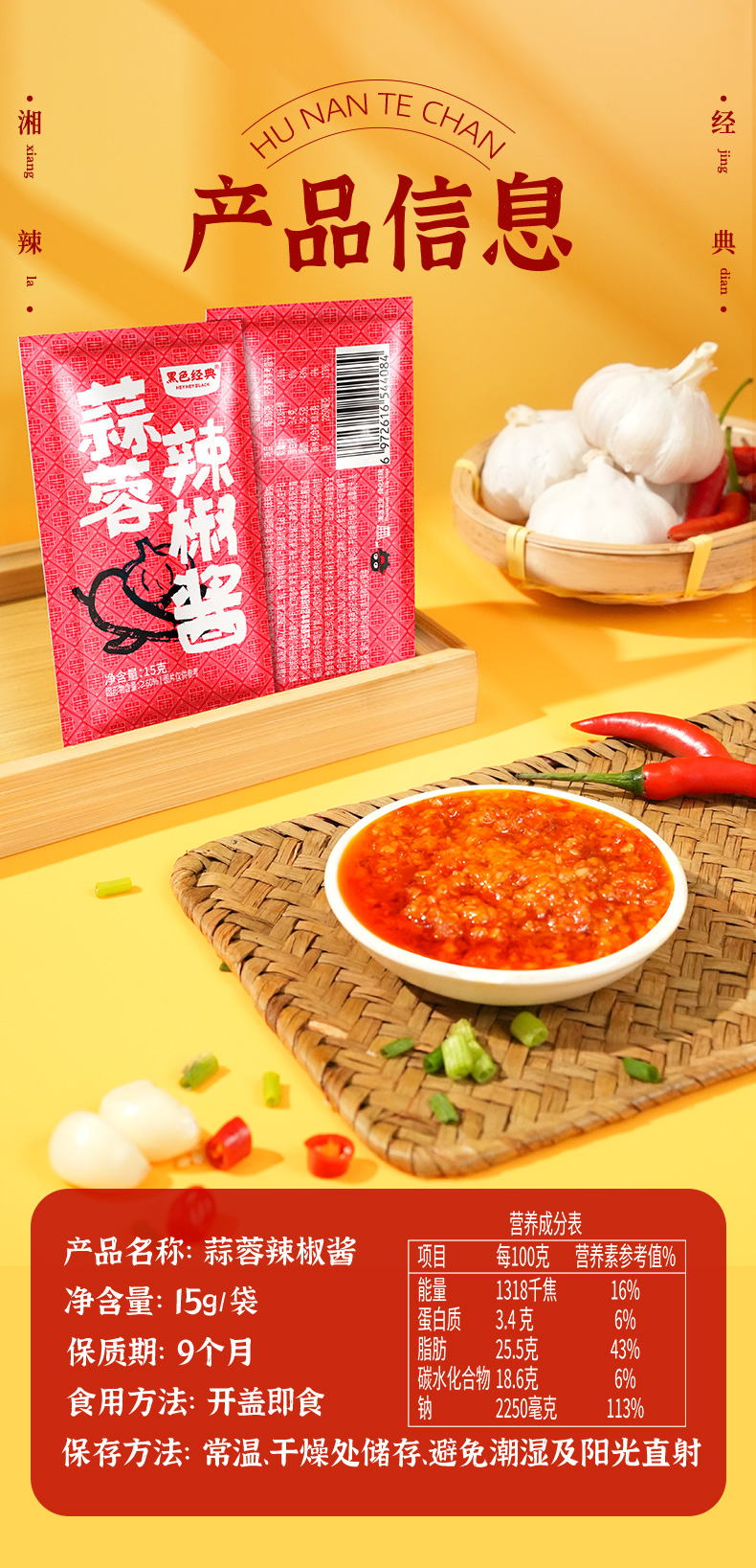 【0元积分兑换】10包 黑色经典蒜蓉辣椒酱15g/包