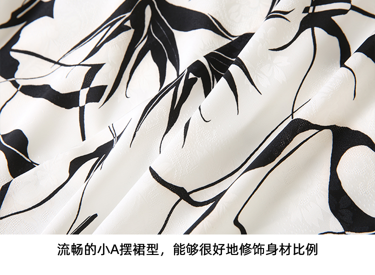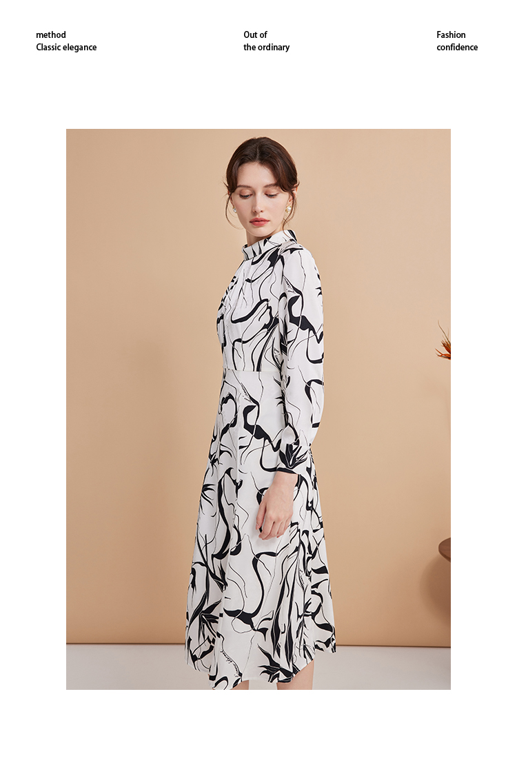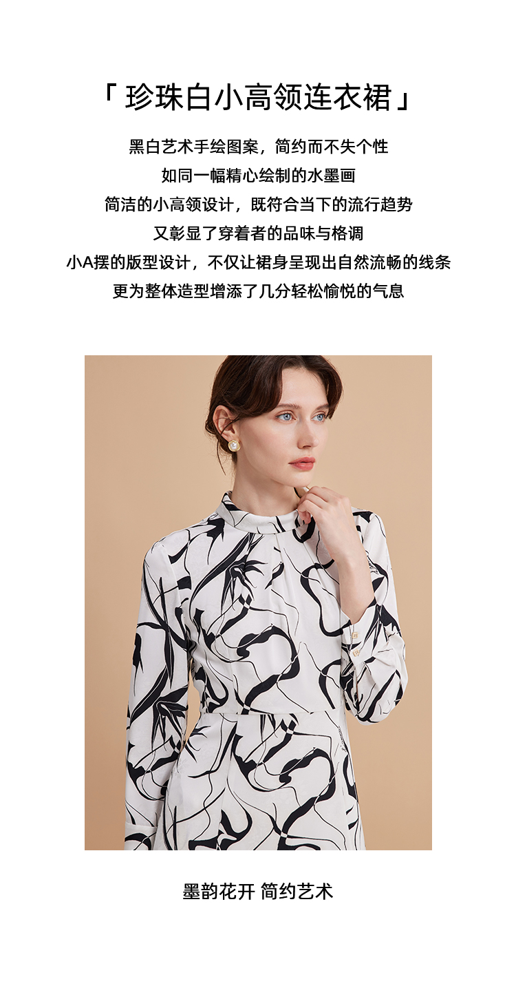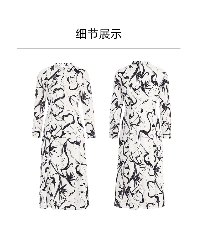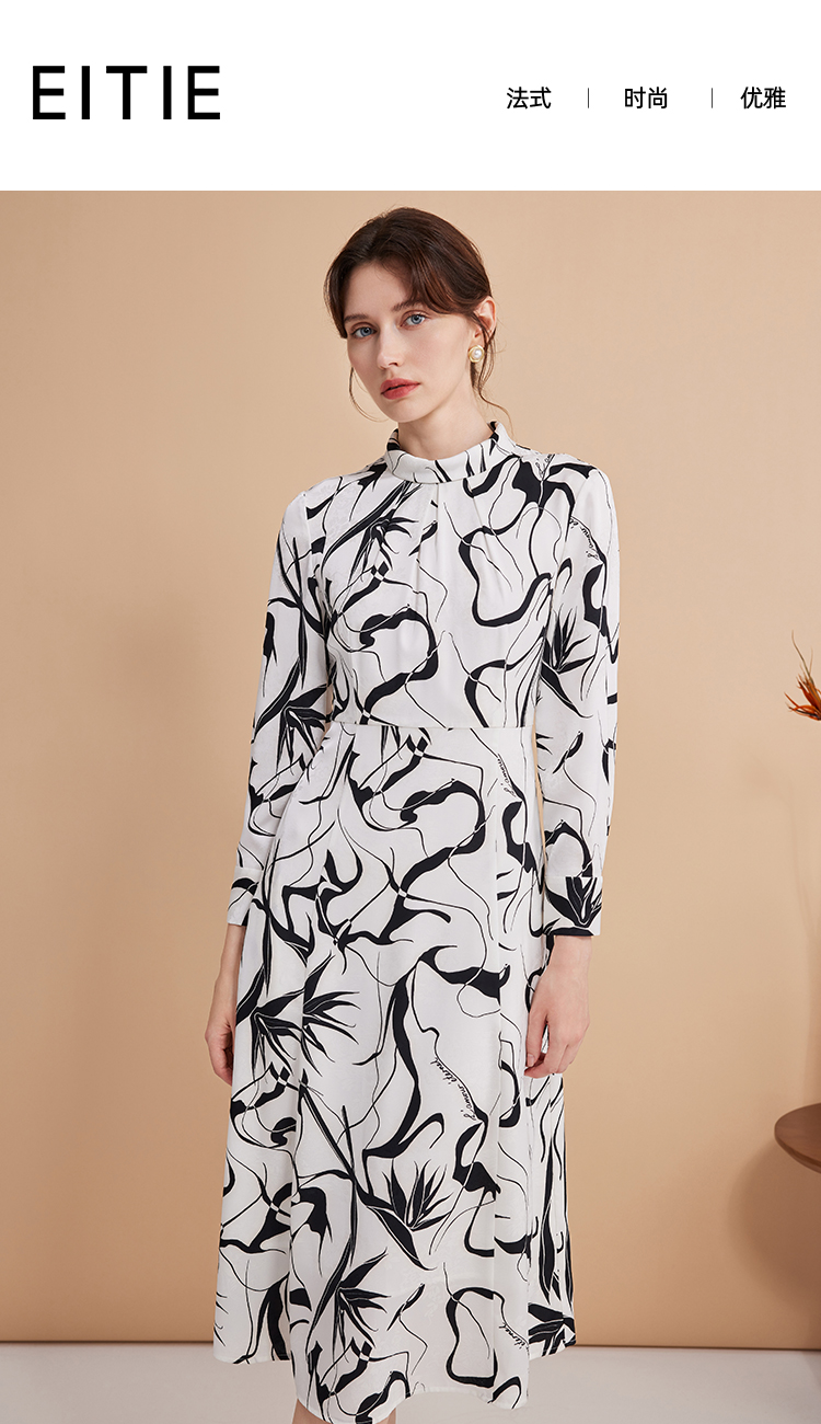 EITIE爱特爱秋款新品显瘦高腰舒适印花复古连衣裙7507216
