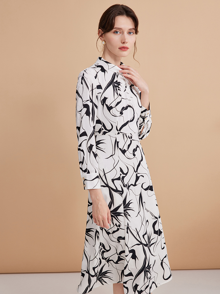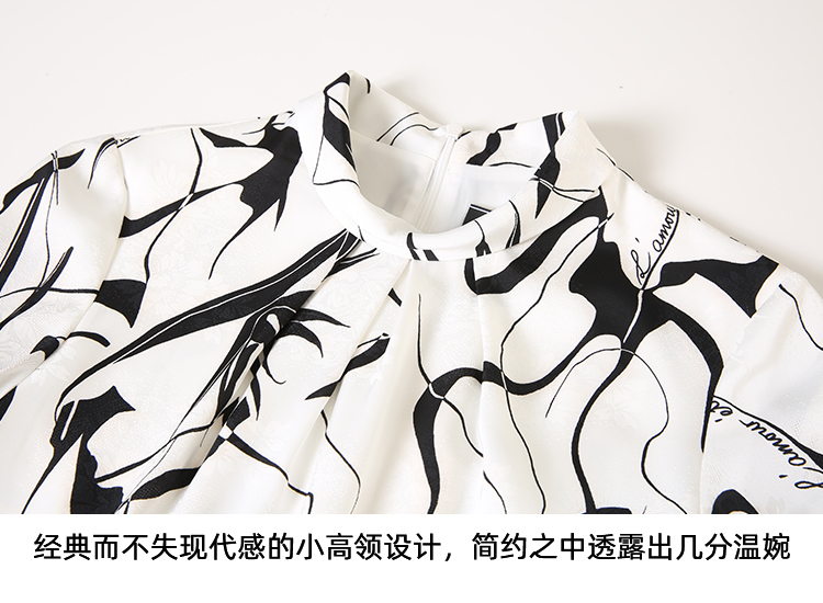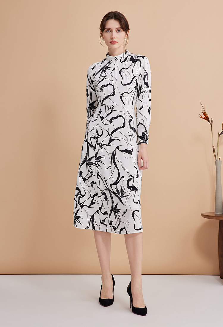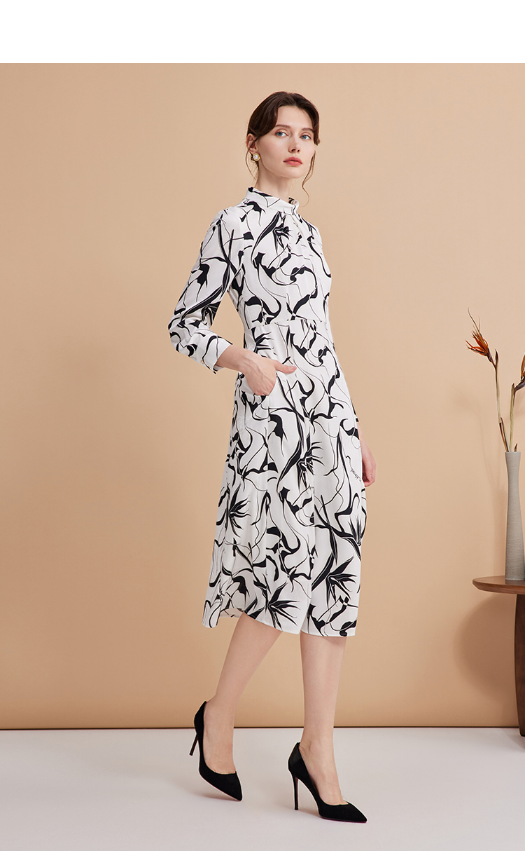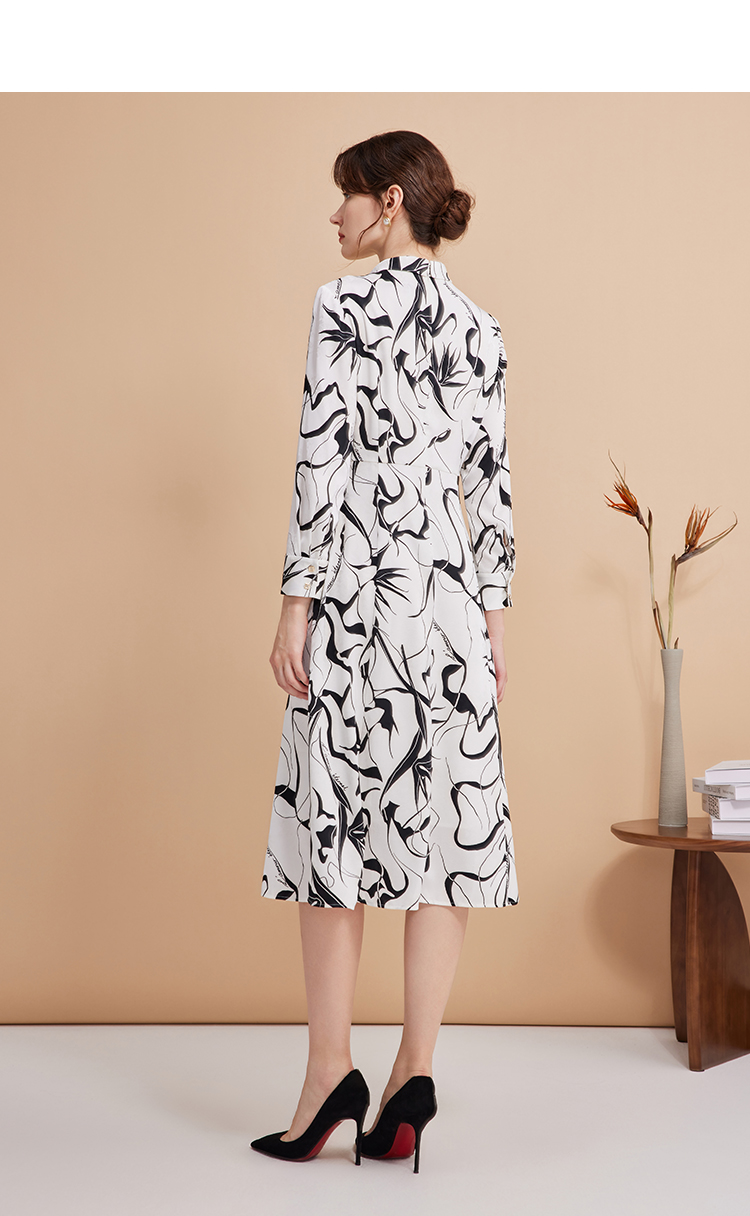 EITIE爱特爱秋款新品显瘦高腰舒适印花复古连衣裙7507216
