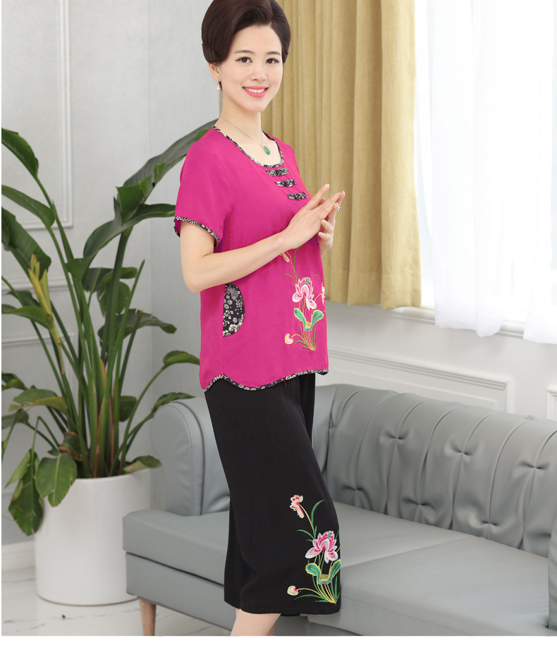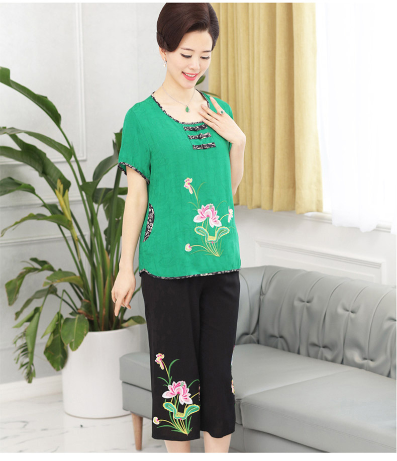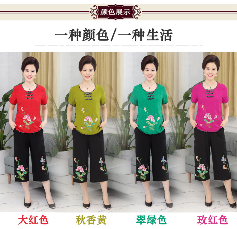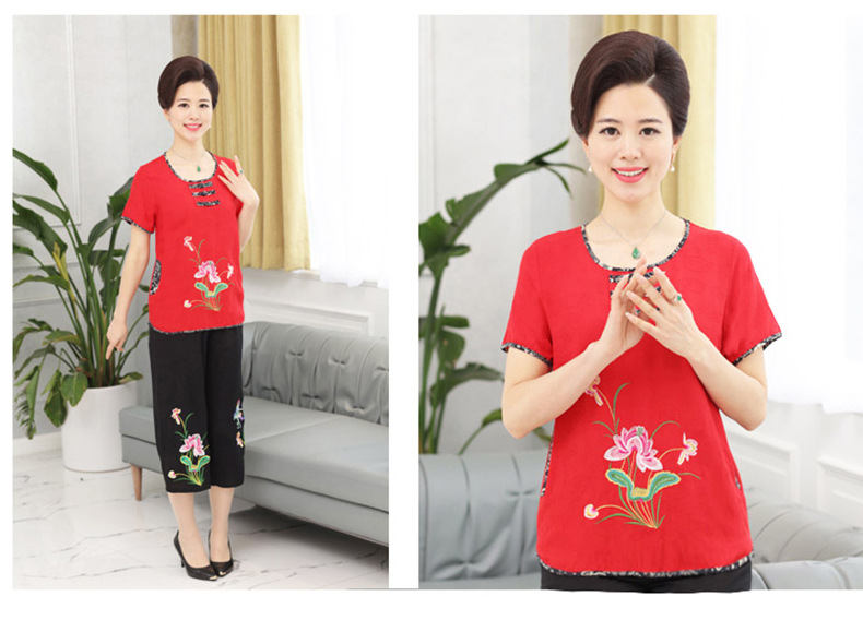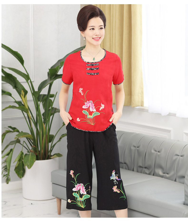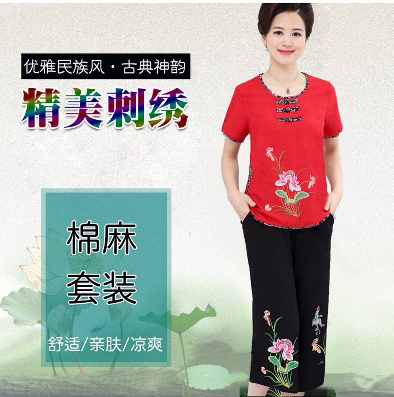 MQ-XN1802夏装新款民族风棉麻绣花短袖套装YY